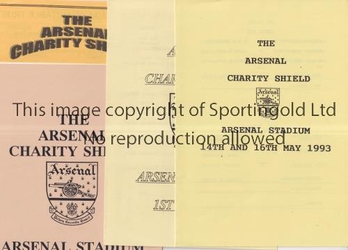 ARSENAL CHARITY SHIELD MATCHES AT HIGHBURY Eight programmes for 1993, 1994, 1995, 1996, 1997, 1998, 1999 and 2003. Good