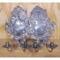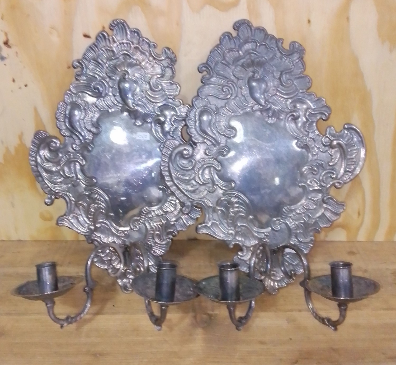 A pair of silver plated Rococo style candle sconces, length 42cm.