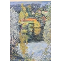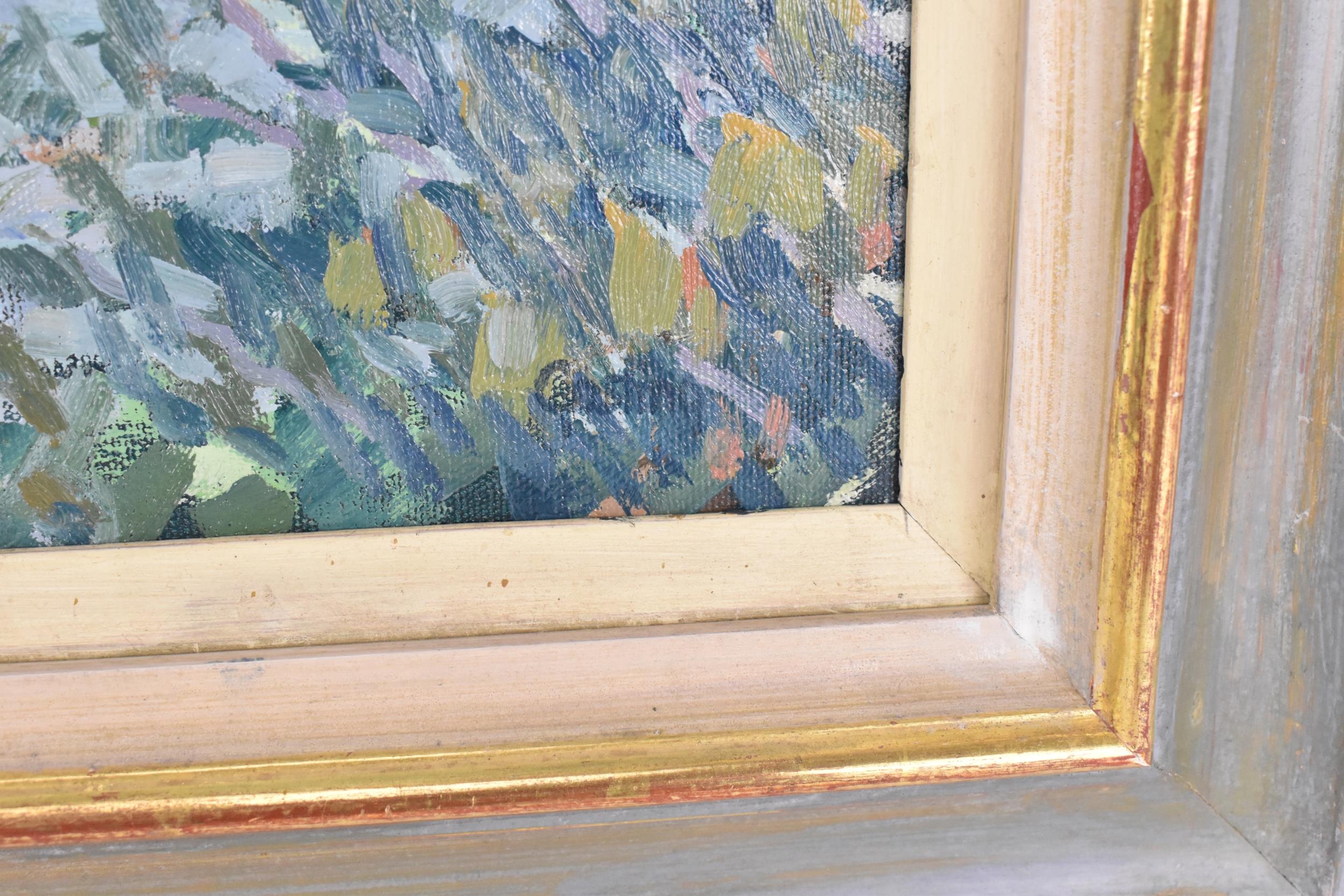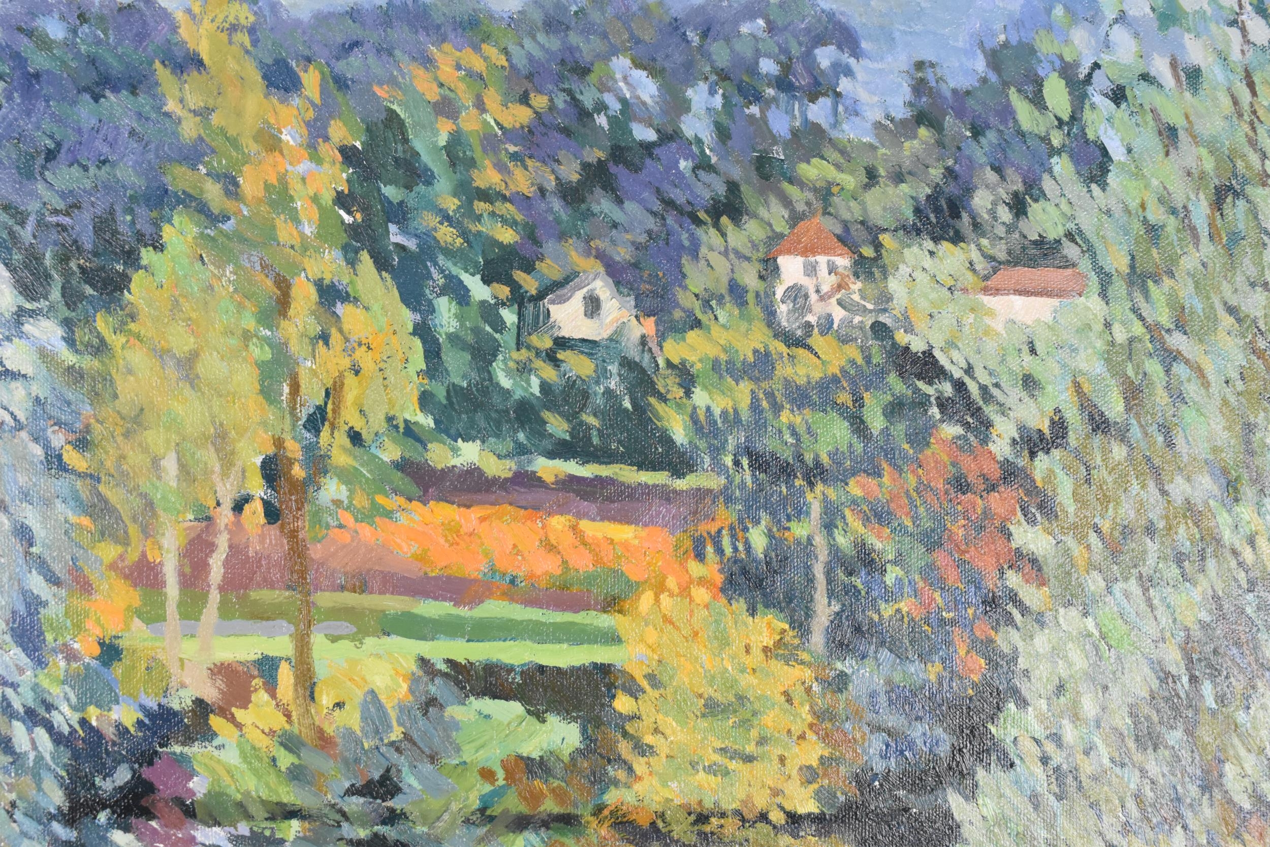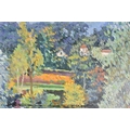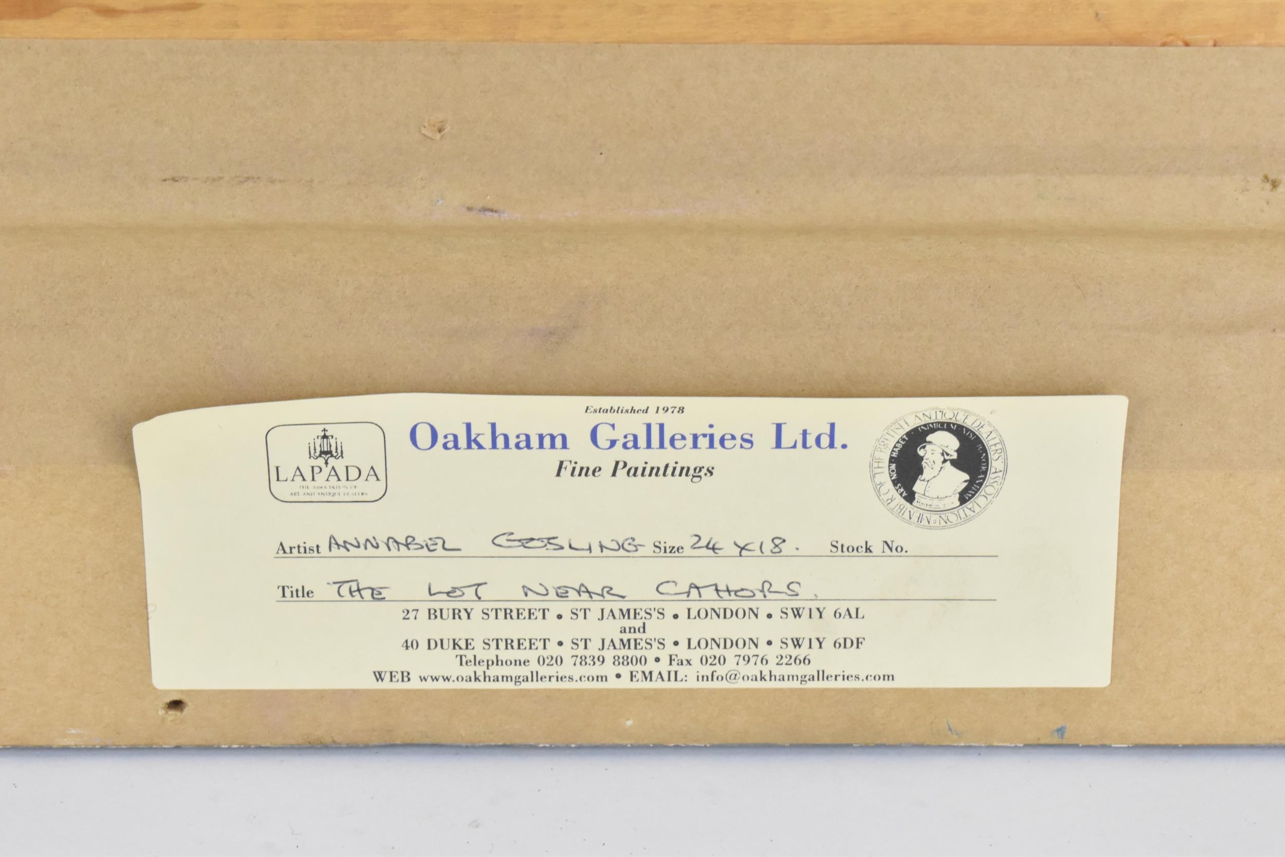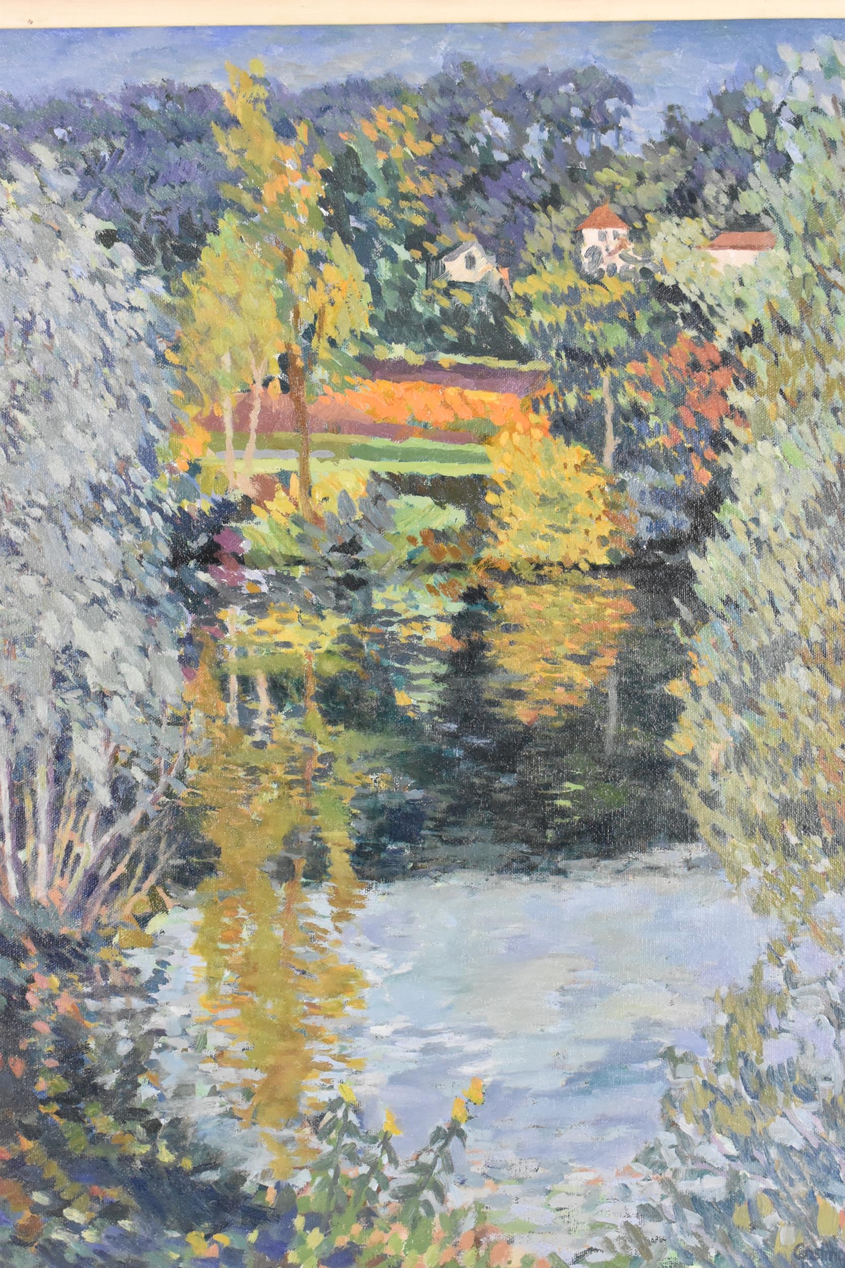'The Lot near Cahors', depicting the French riverside with various shrubs and trees, signed lower right, oil on canvas, 60 cm x 44.5 cm, within a painted frame, the reverse with Oakham Gallery label