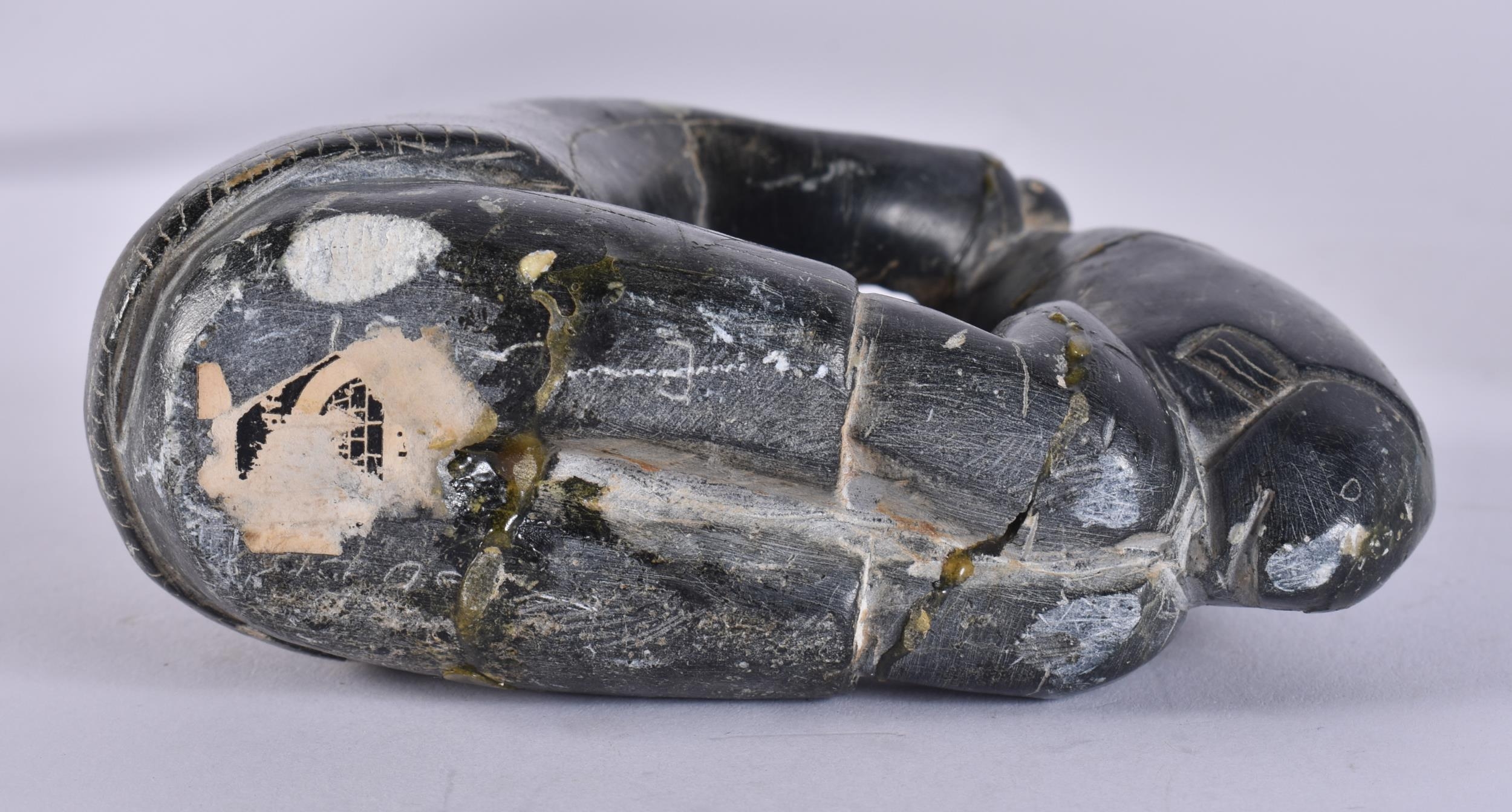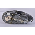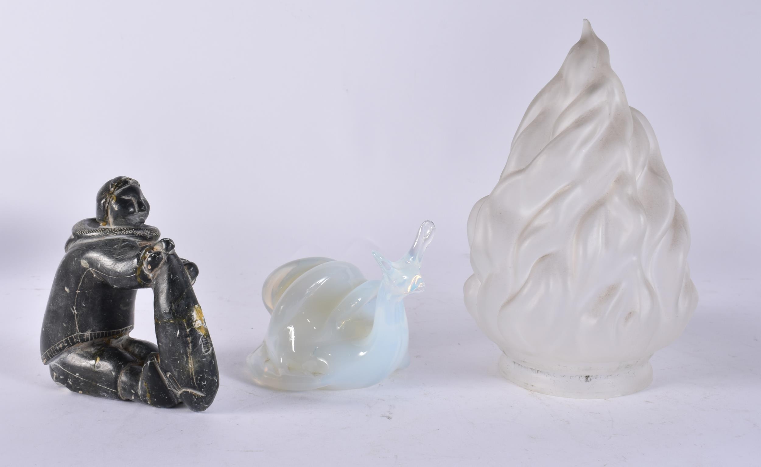 A FRENCH GLASS SNAIL together with an Inuit figure & a frosted glass shade. (3)