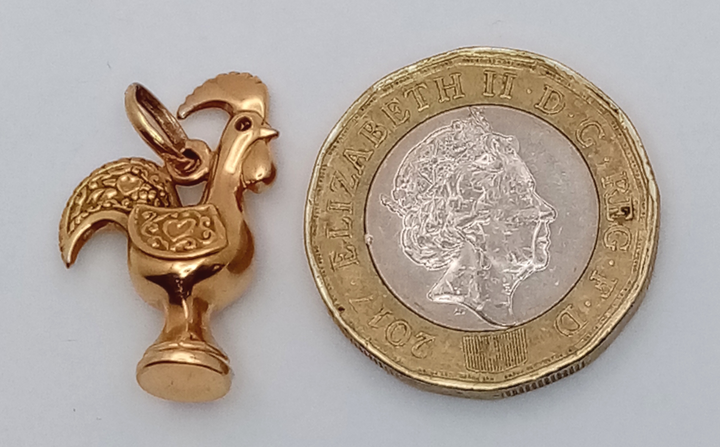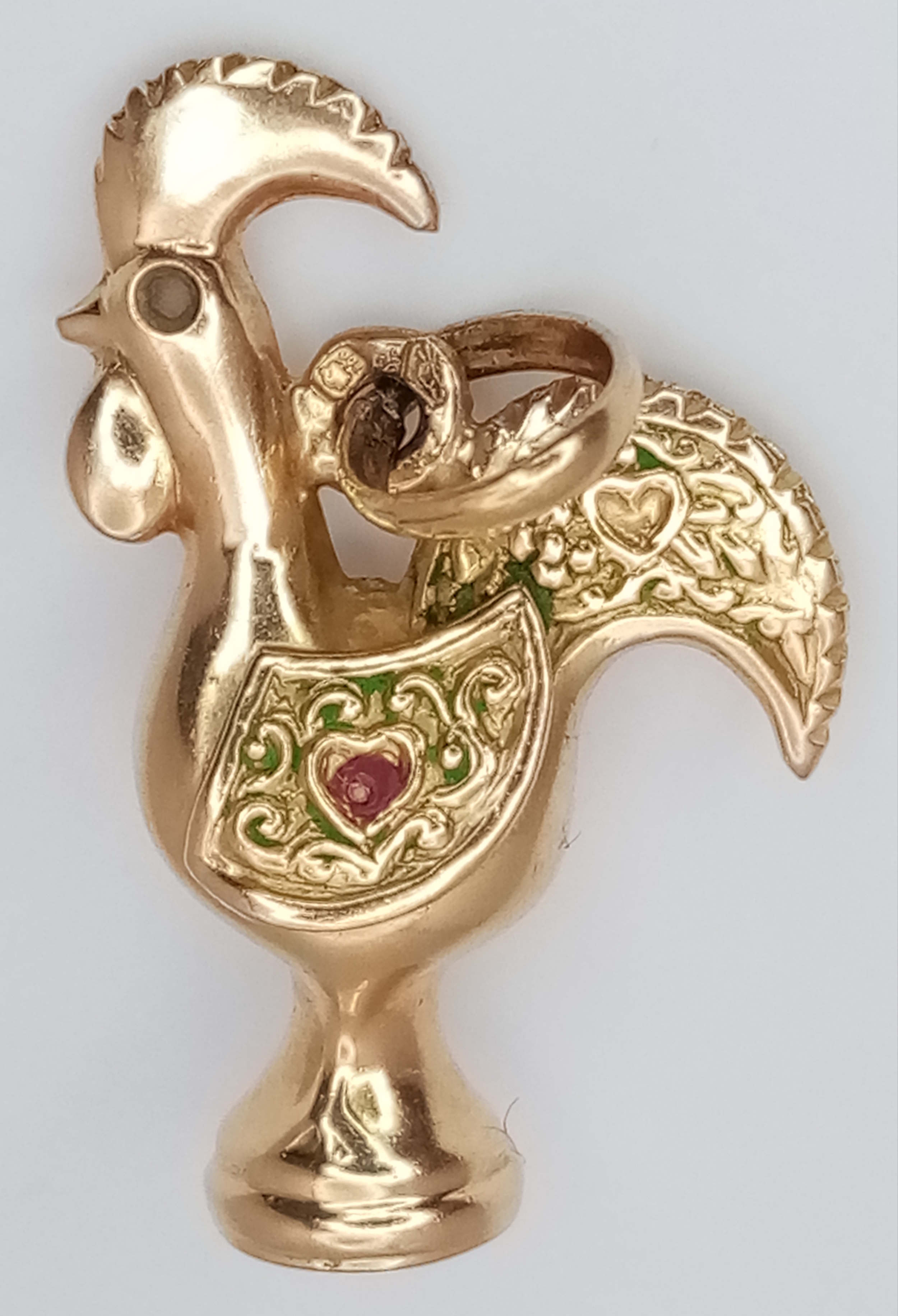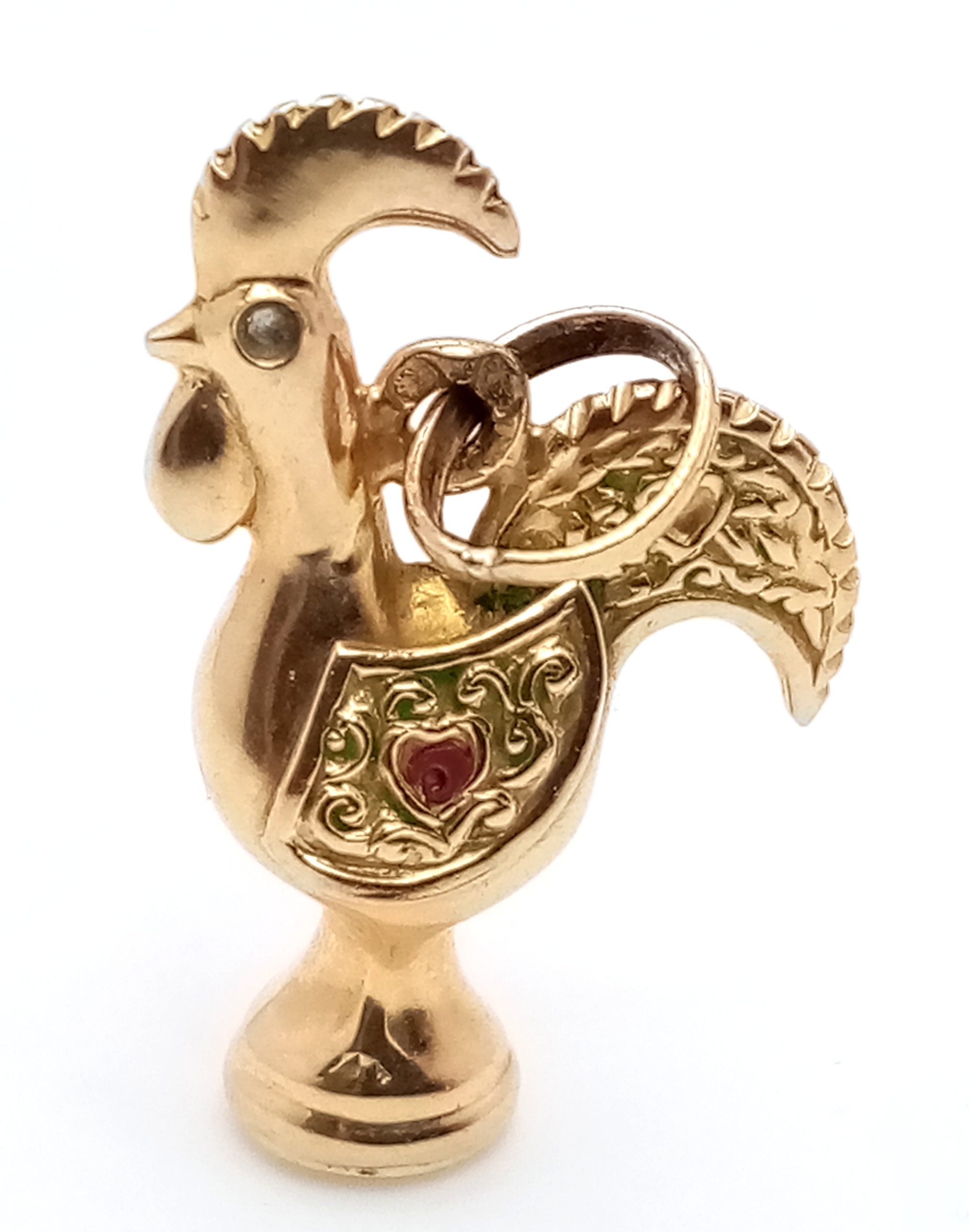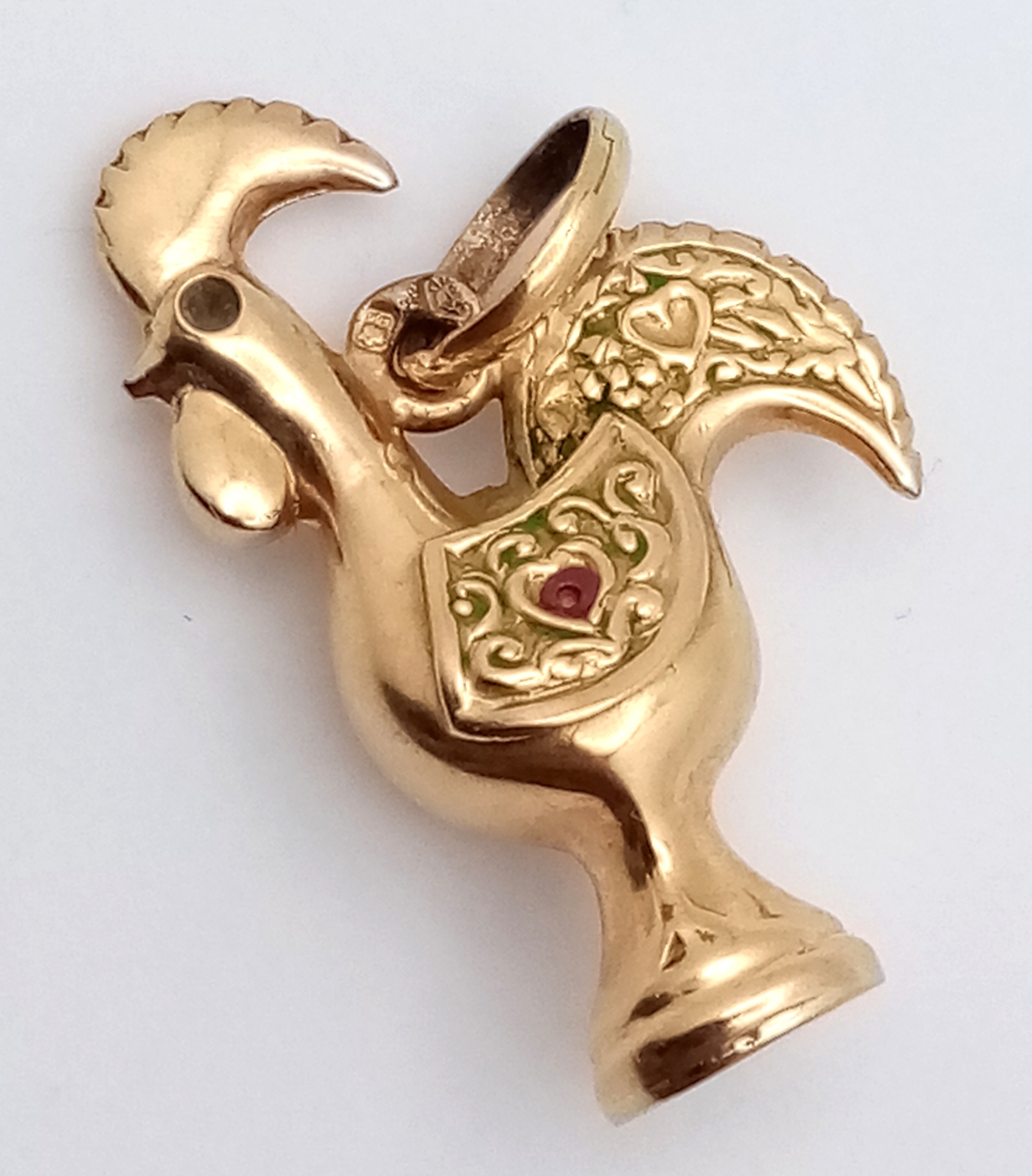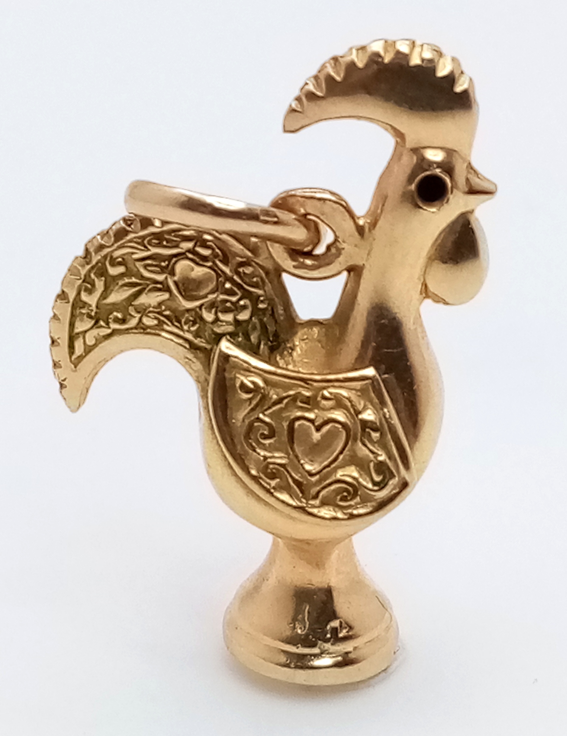 A 9K Yellow Gold, Portuguese, " Galo De Barcelos" Nando's Rooster Charm / Pendant. 1.8G. Tan 6004