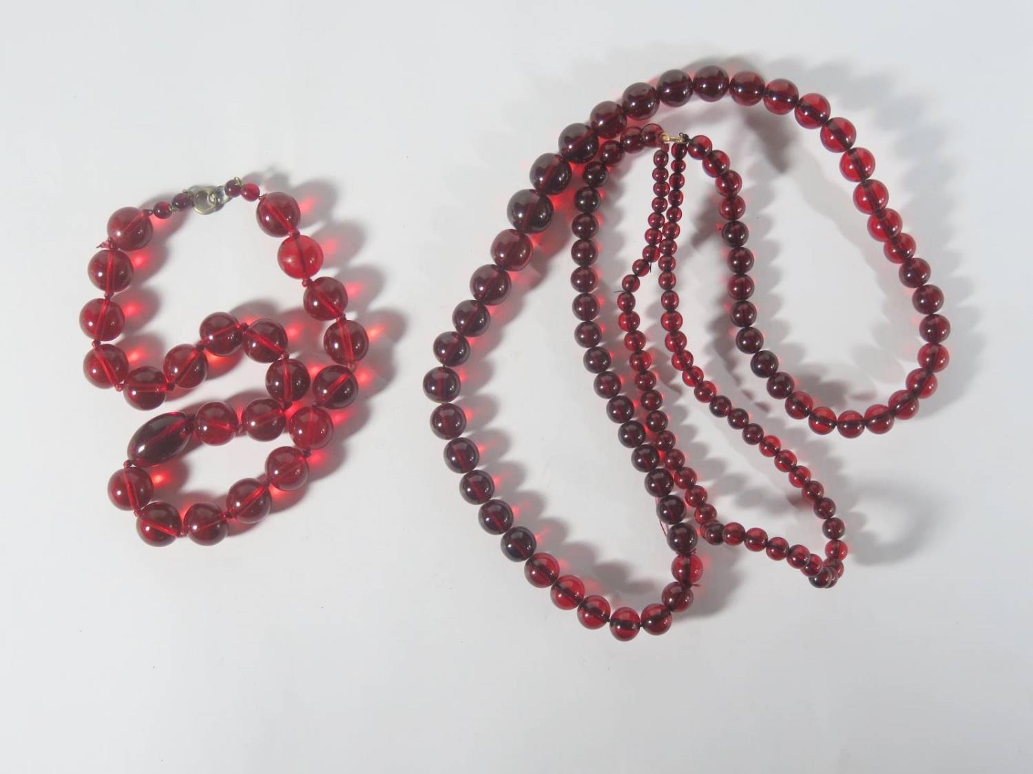 Faux 'Amber' Faceted Bead Necklace 61.9g and glass bead necklace***PHONE BID***