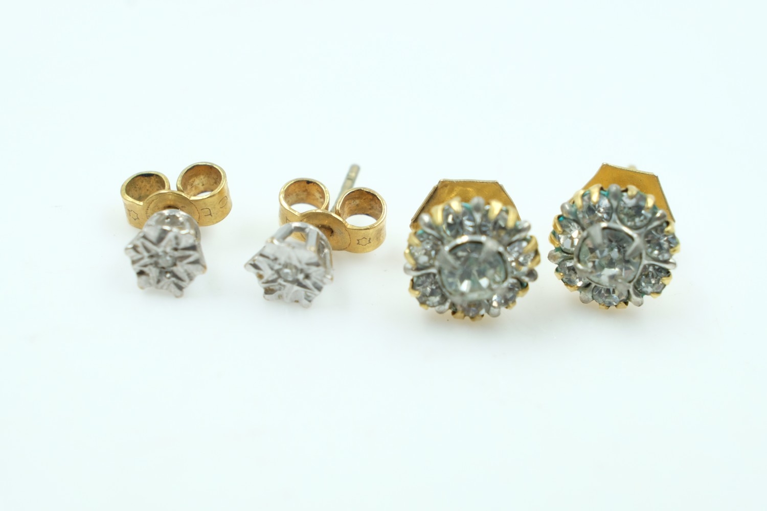 Two pairs of 9ct gold stone-set stud earrings, combined 1.8g. UK P&P Group 0 (£7+VAT for the first lot and £1+VAT for subsequent lots)