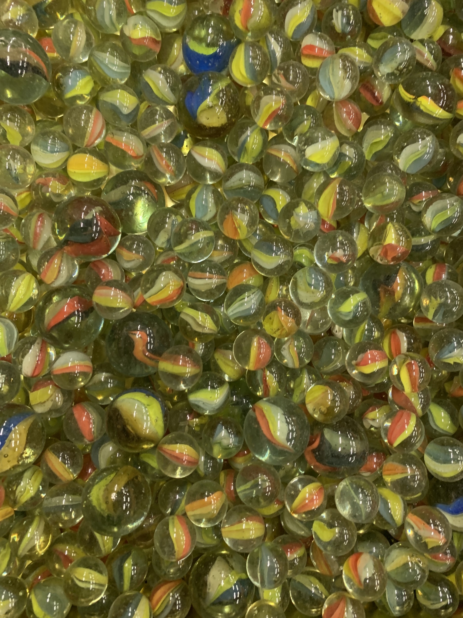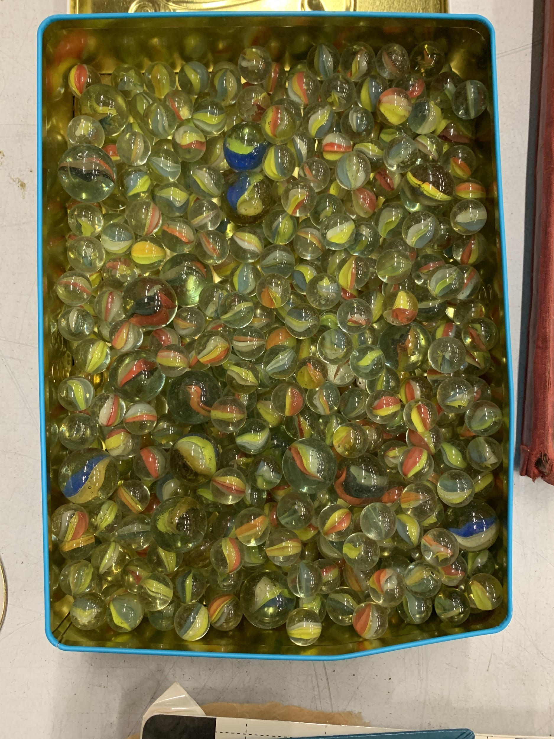A TIN FULL OF VINTAGE MARBLES