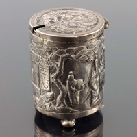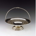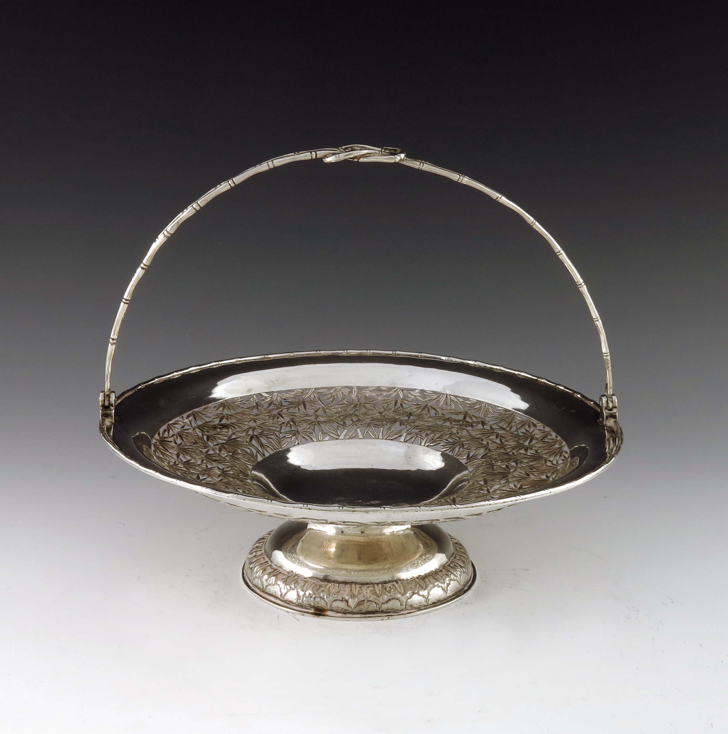 A Chinese export silver reticulated bread basket, Wang Hing, Hong Kong circa 1890, footed shallow ogee form, pierced with a band of leafy bamboo, cast with bamboo swing handle and rim, 26.5cm diameter, 24.49ozt