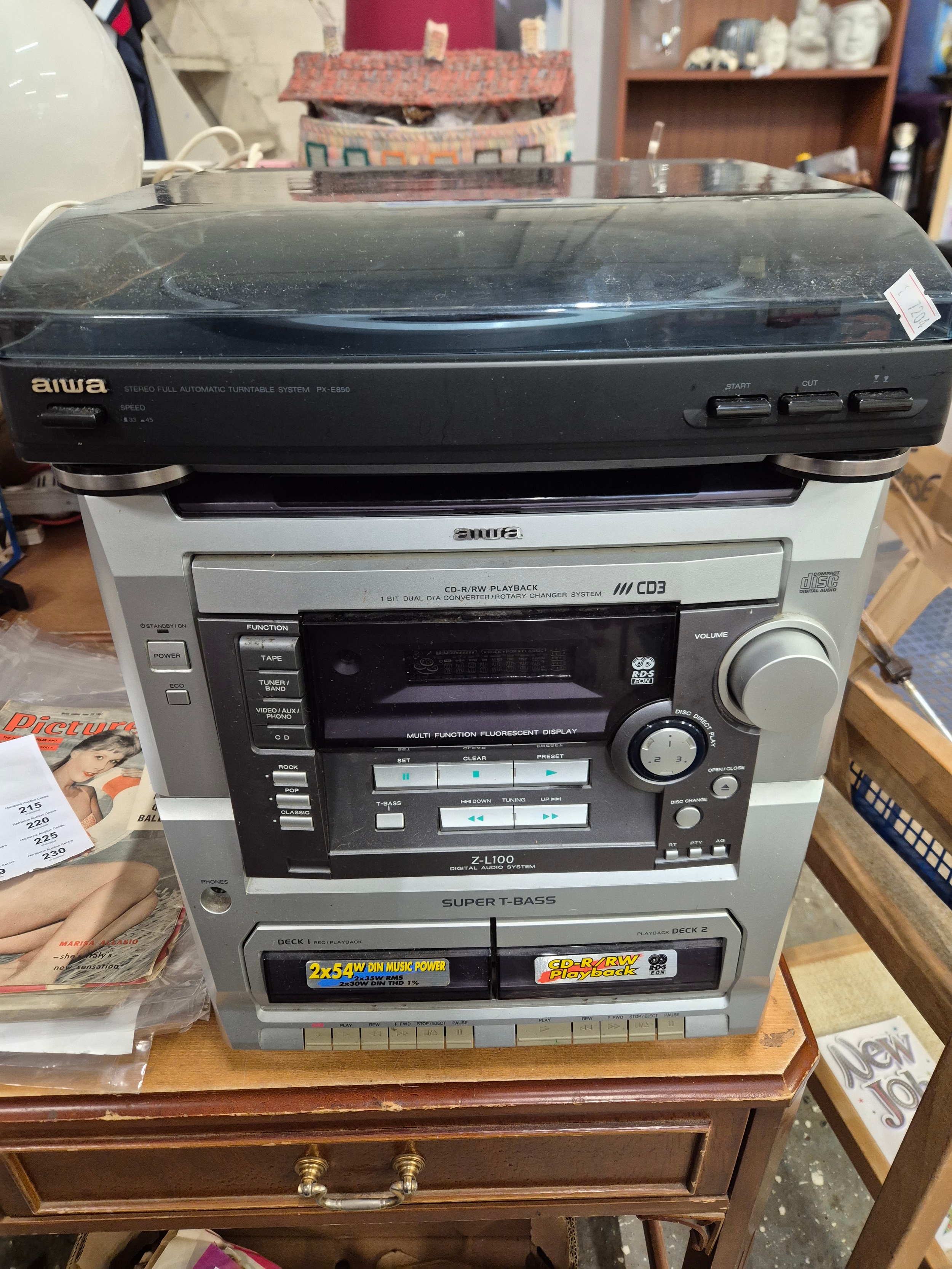 Aiwa Digital Audio System Z-L100 plus stereo full automatic turntable System PX-E850