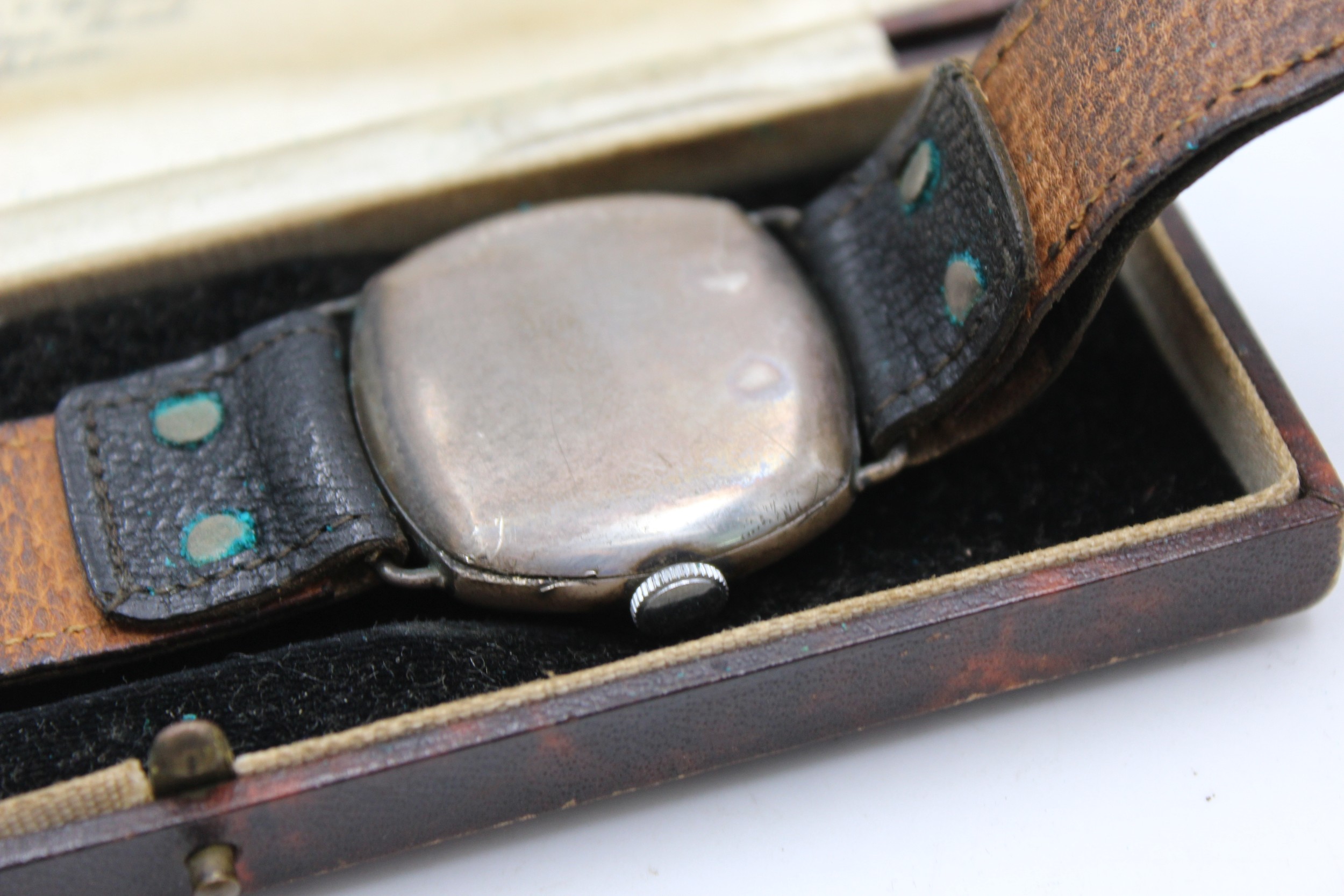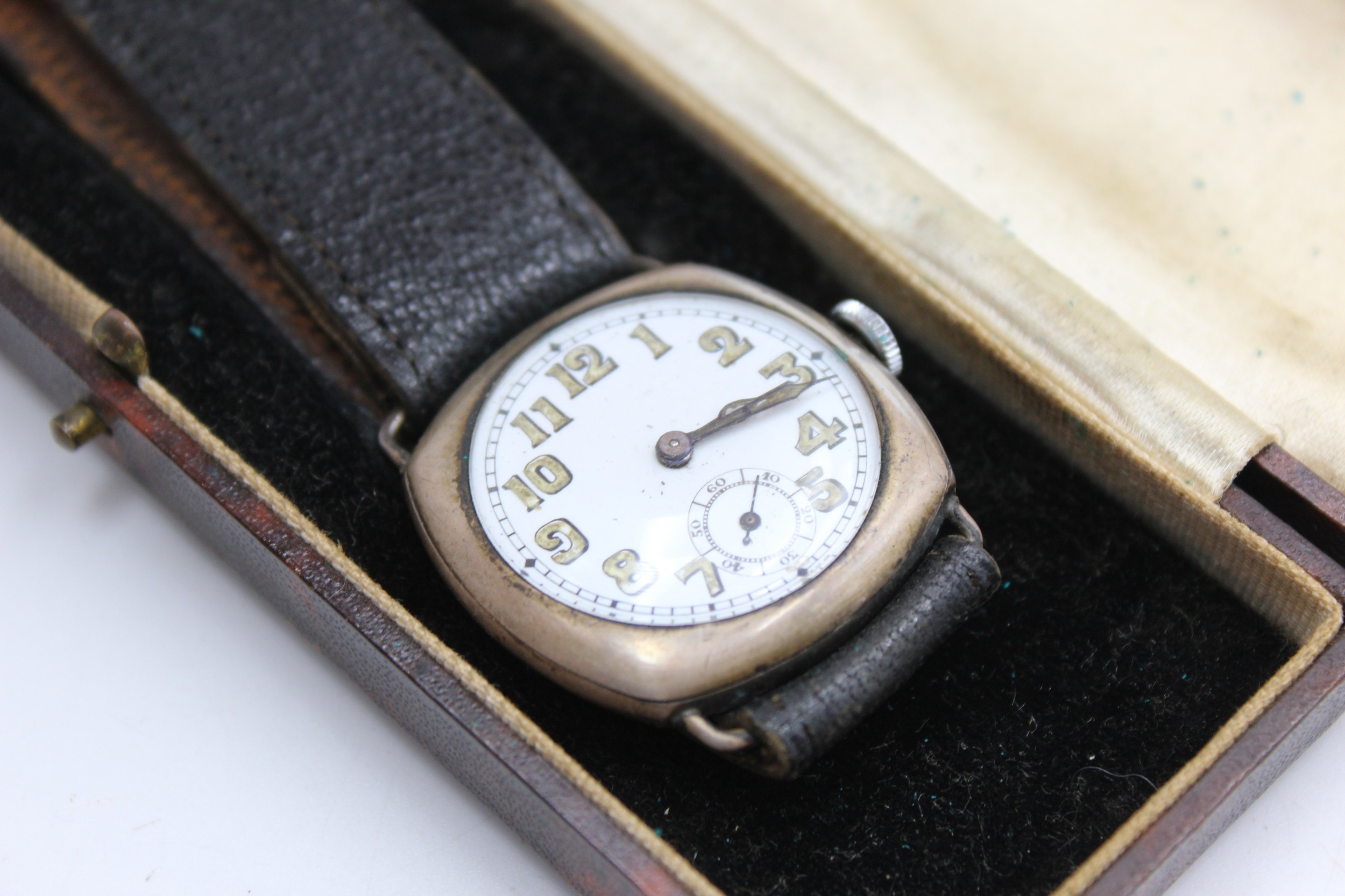 Vintage Gents .925 SILVER Cased Trench Style WRISTWATCH Hand-Wind WORKING