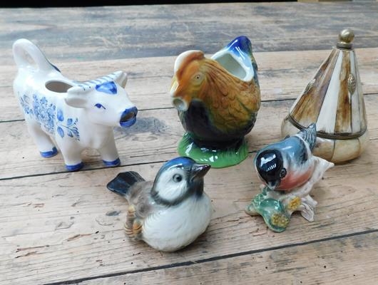 5 x pottery figures - birds etc..., incl. Delph, Tony Wood & Beswick, no damage