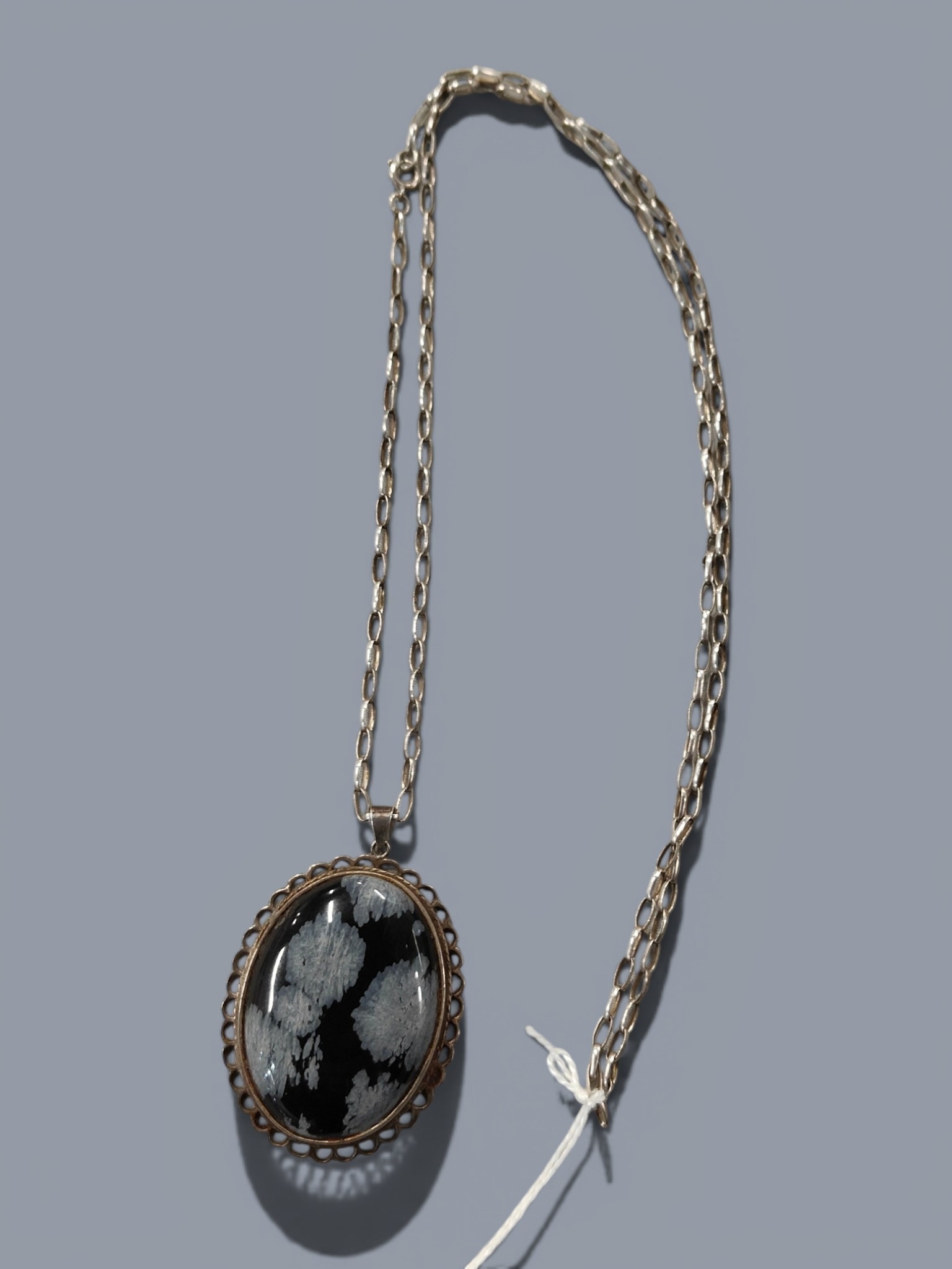SILVER AND AGATE FOB ON SILVER CHAIN