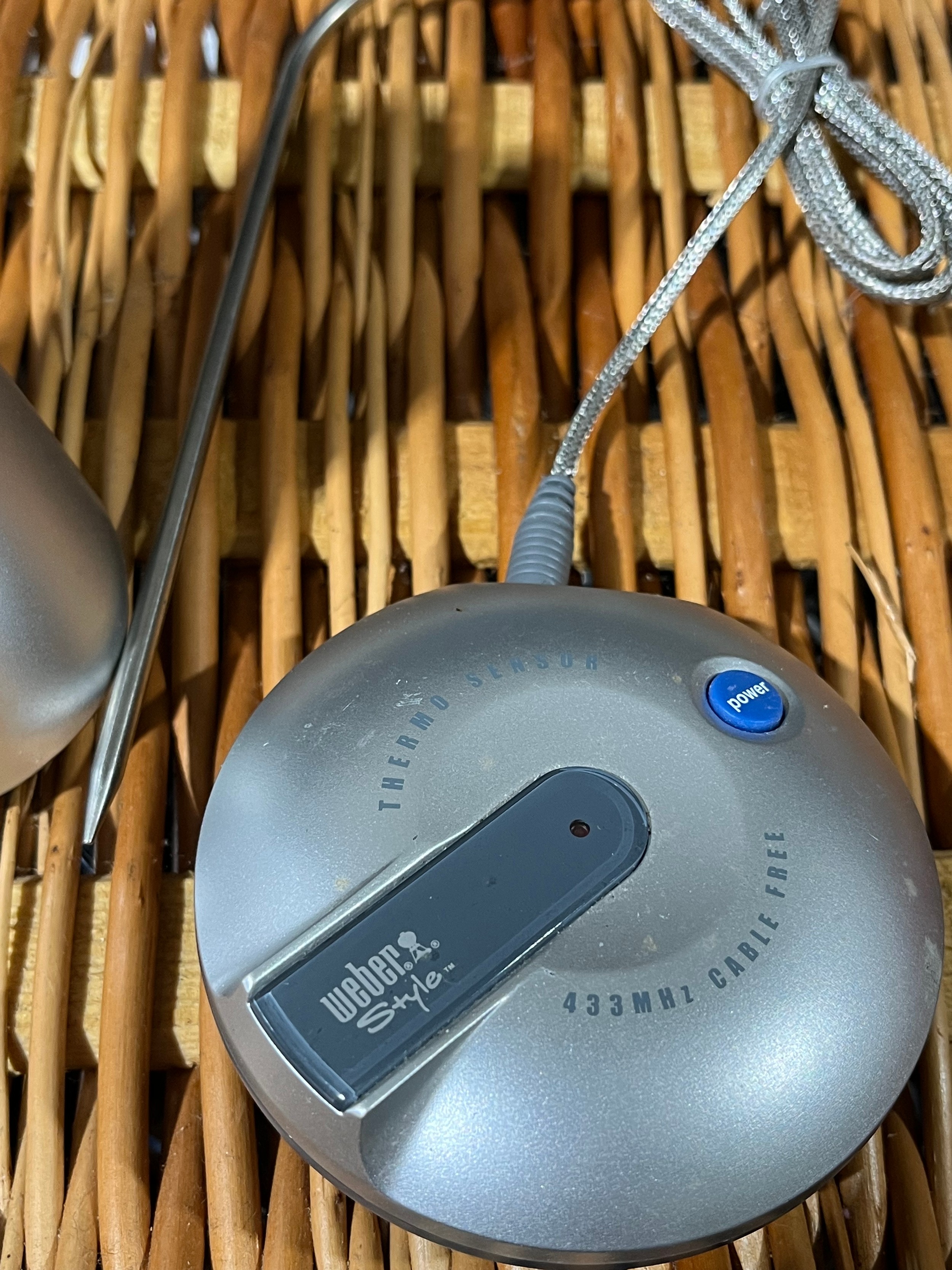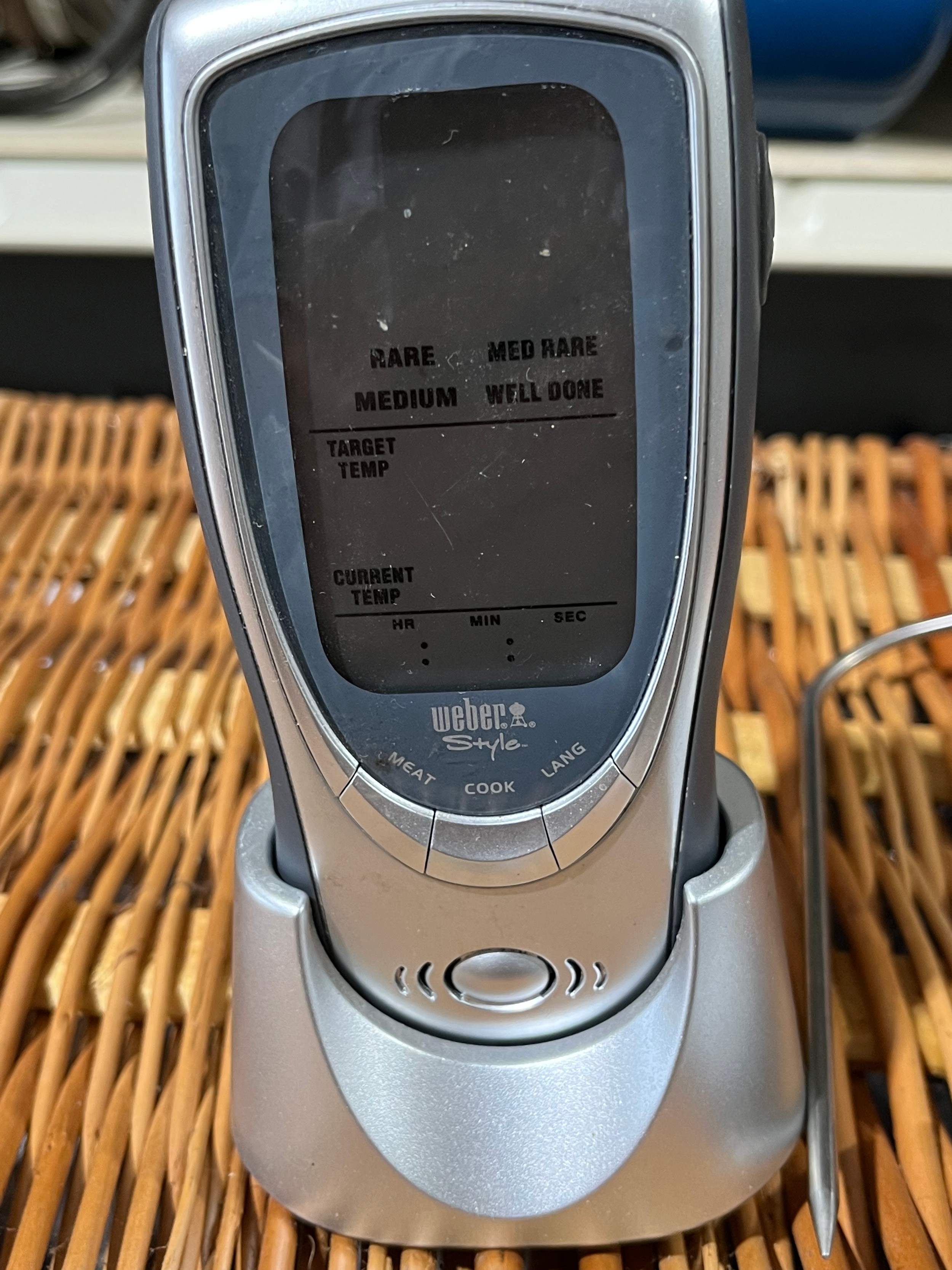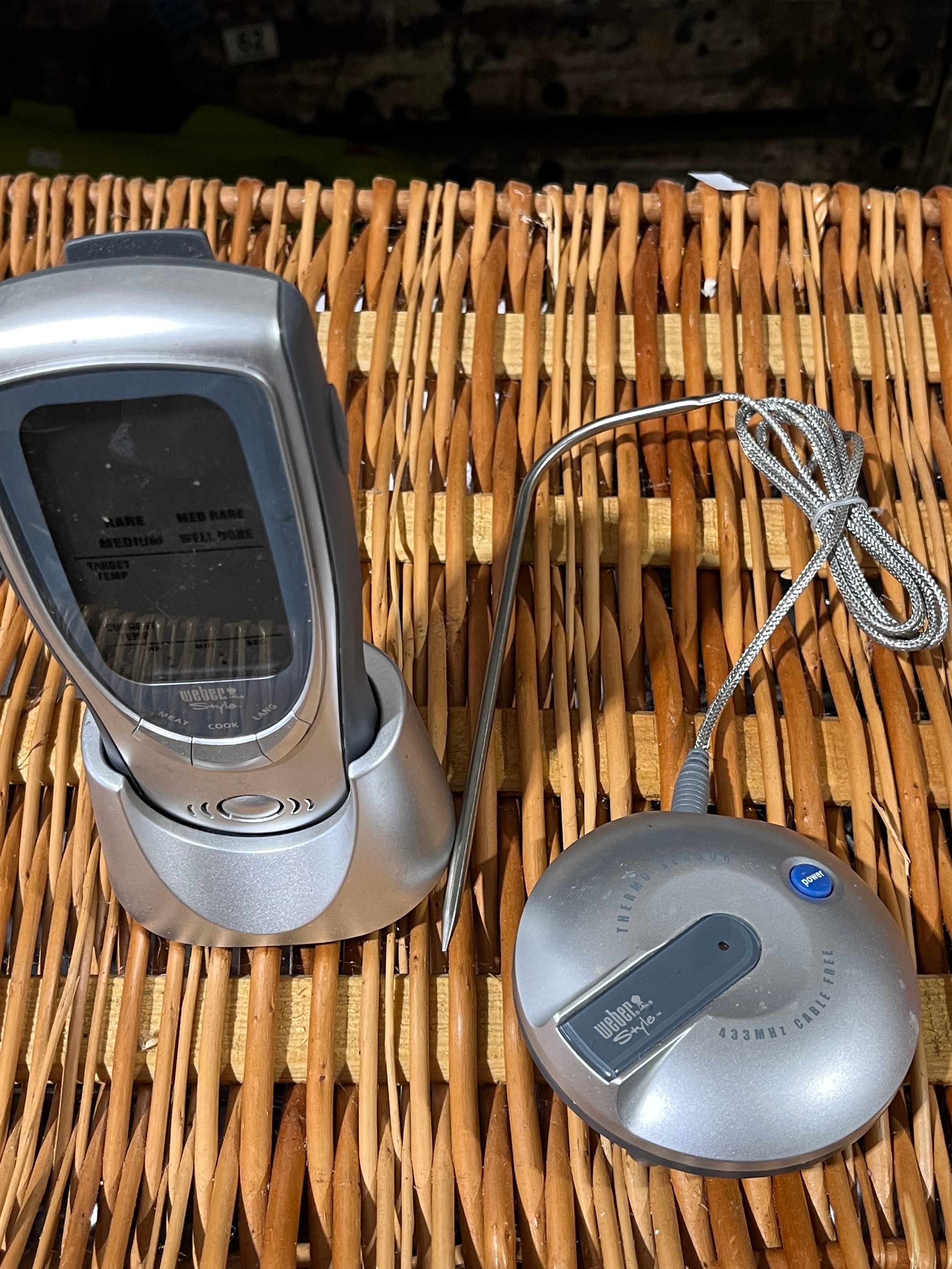 Meat probe by Weber for barbecue use, c/w hand set. Battery operated.