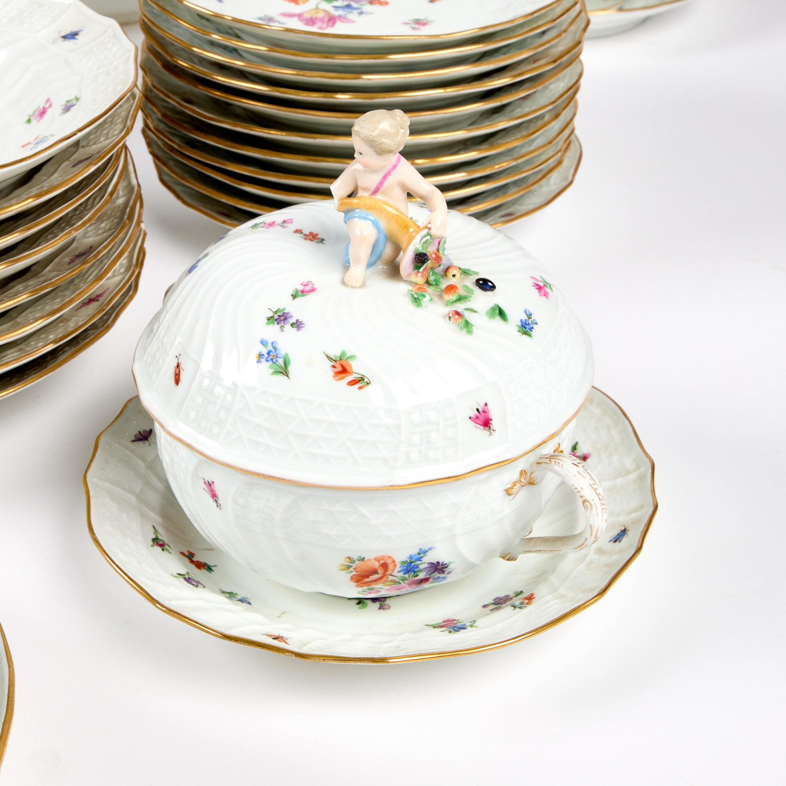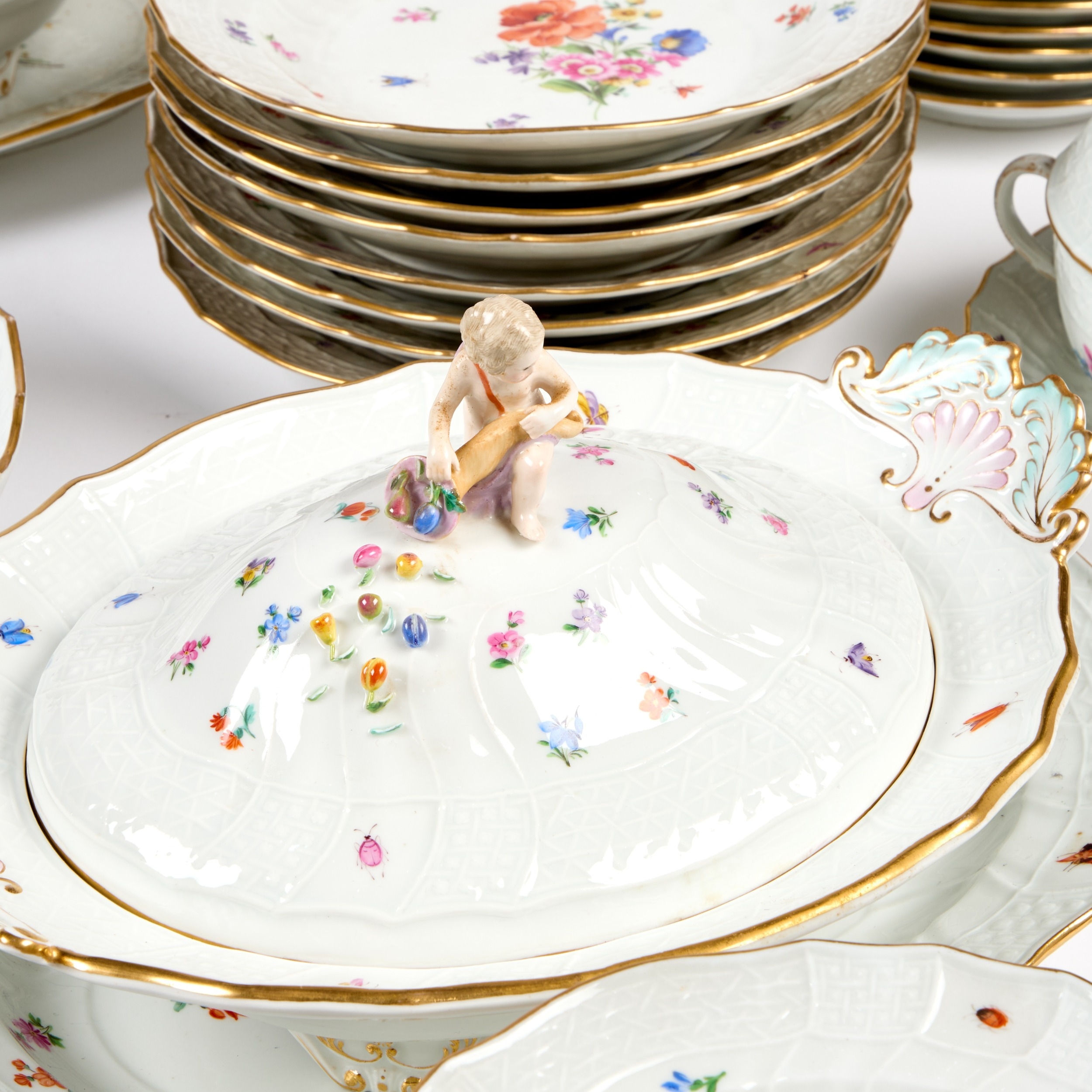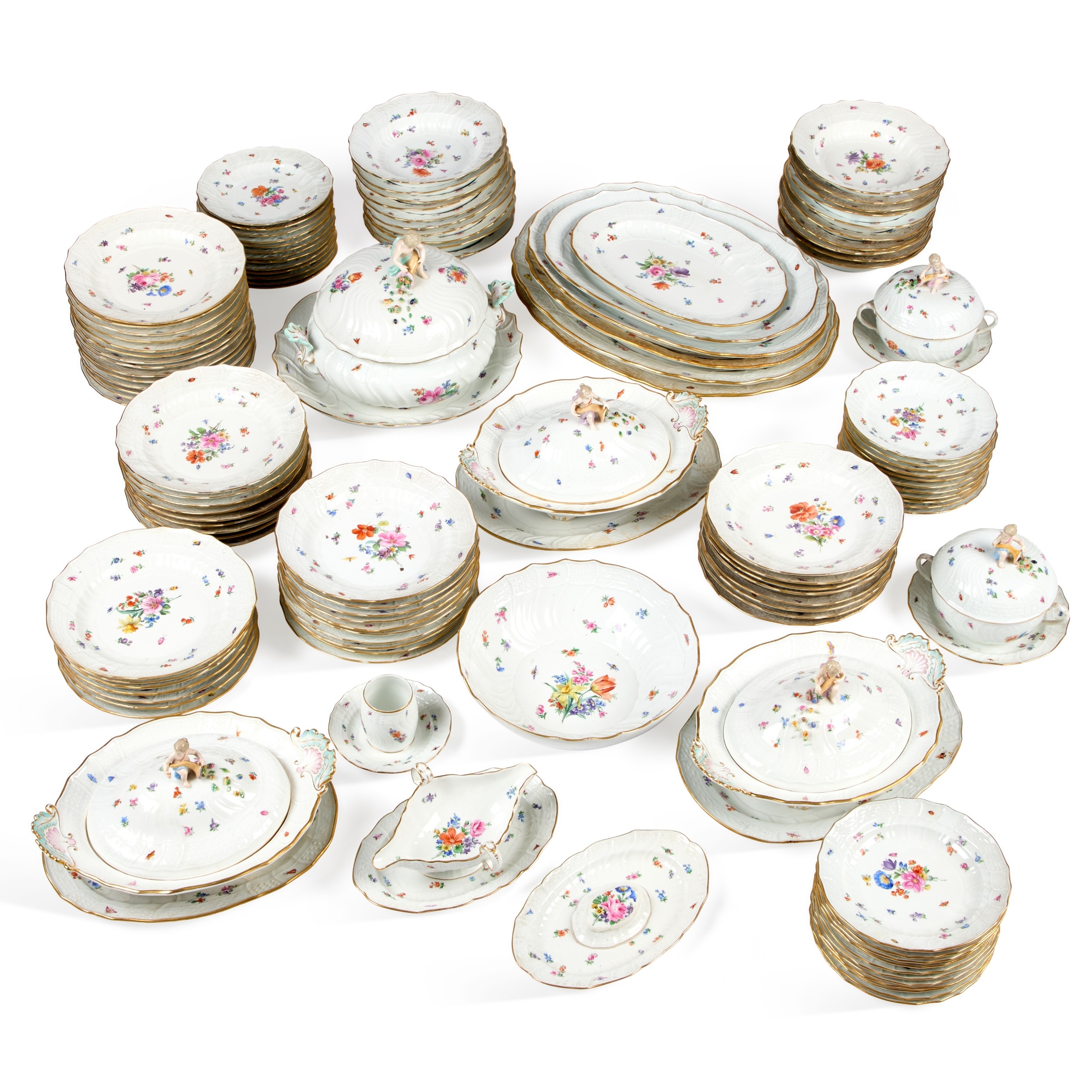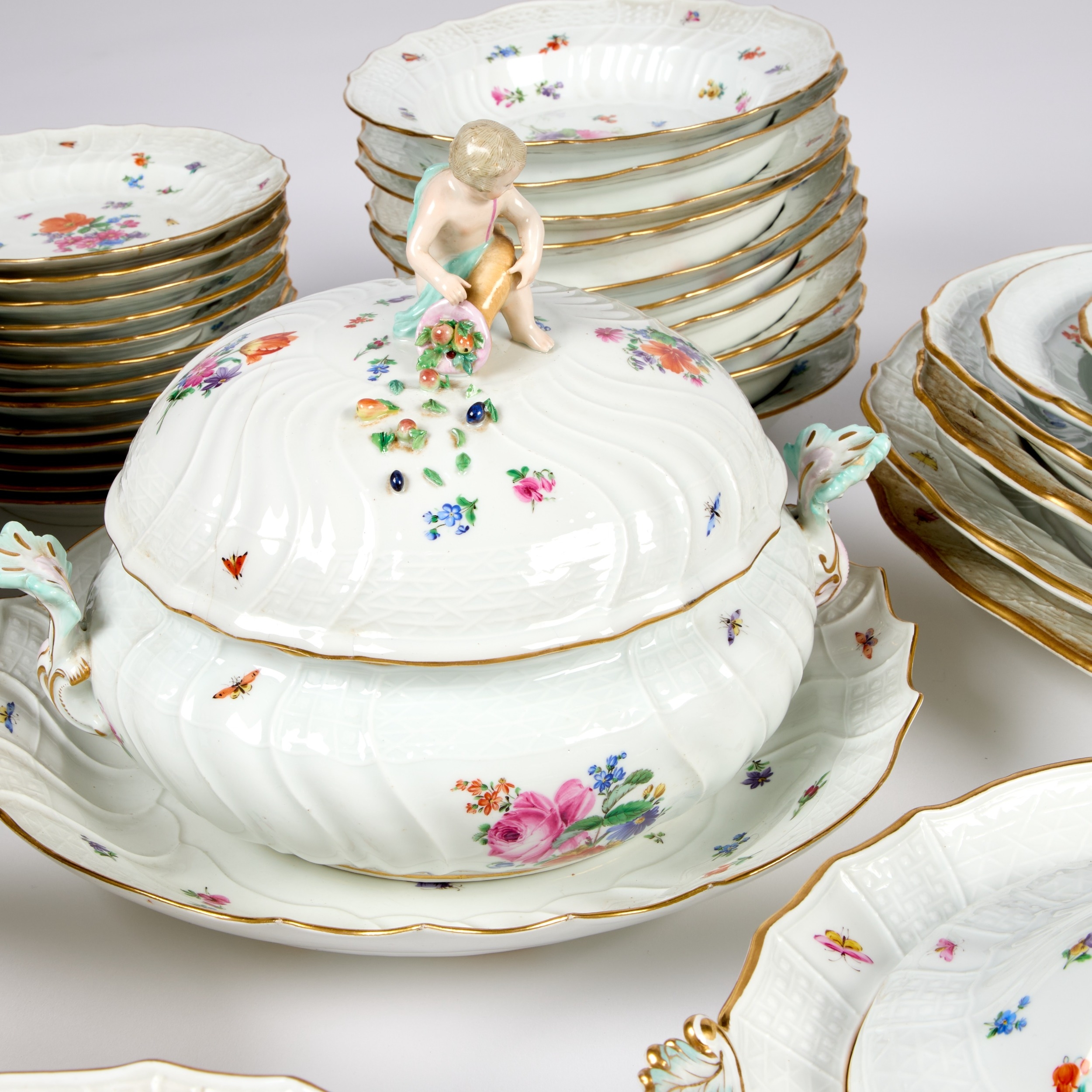 AN EXTENSIVE MEISSEN FLORAL DECORATED DINNER SERVICE LAST THIRD 19TH CENTURY