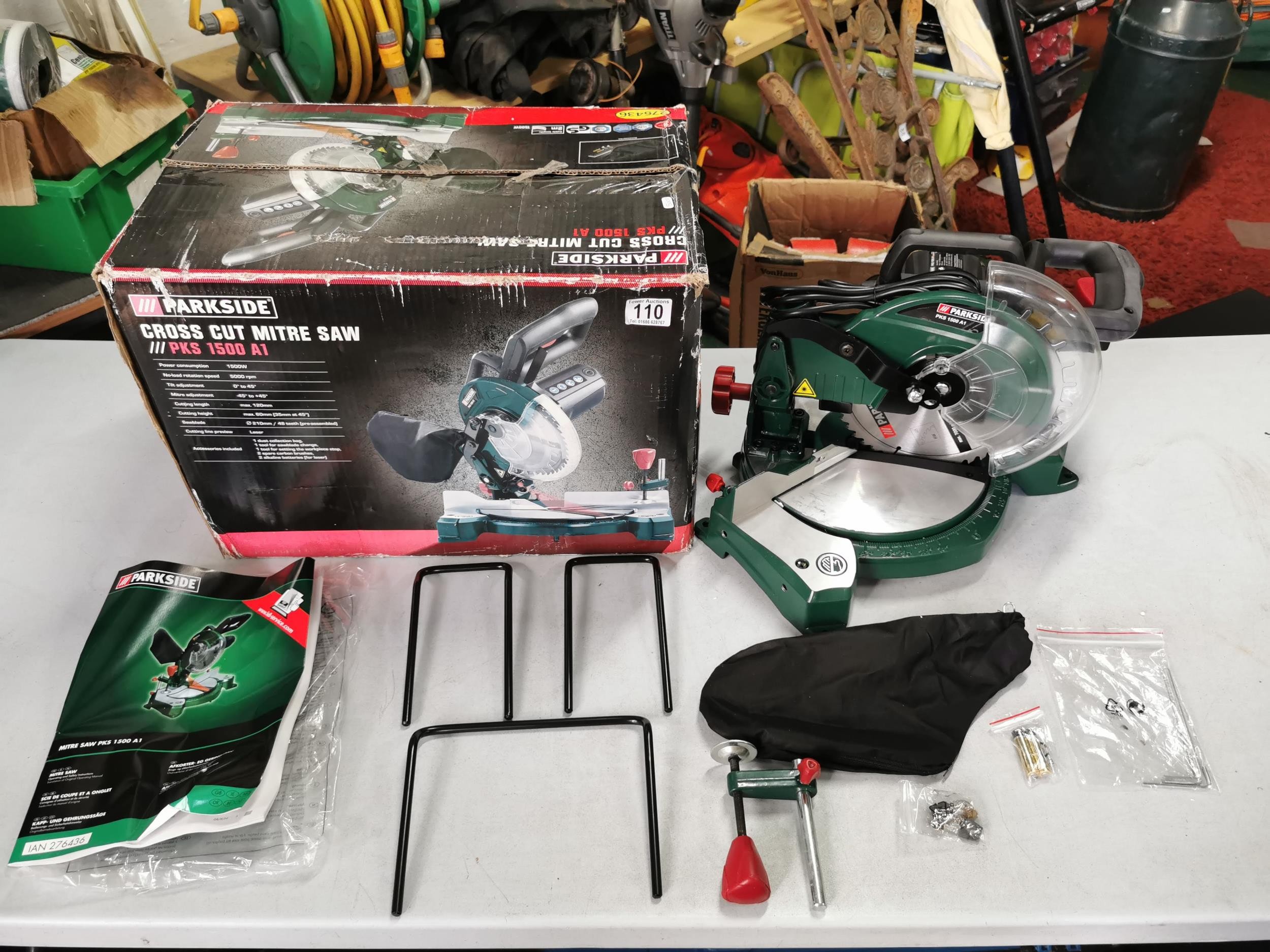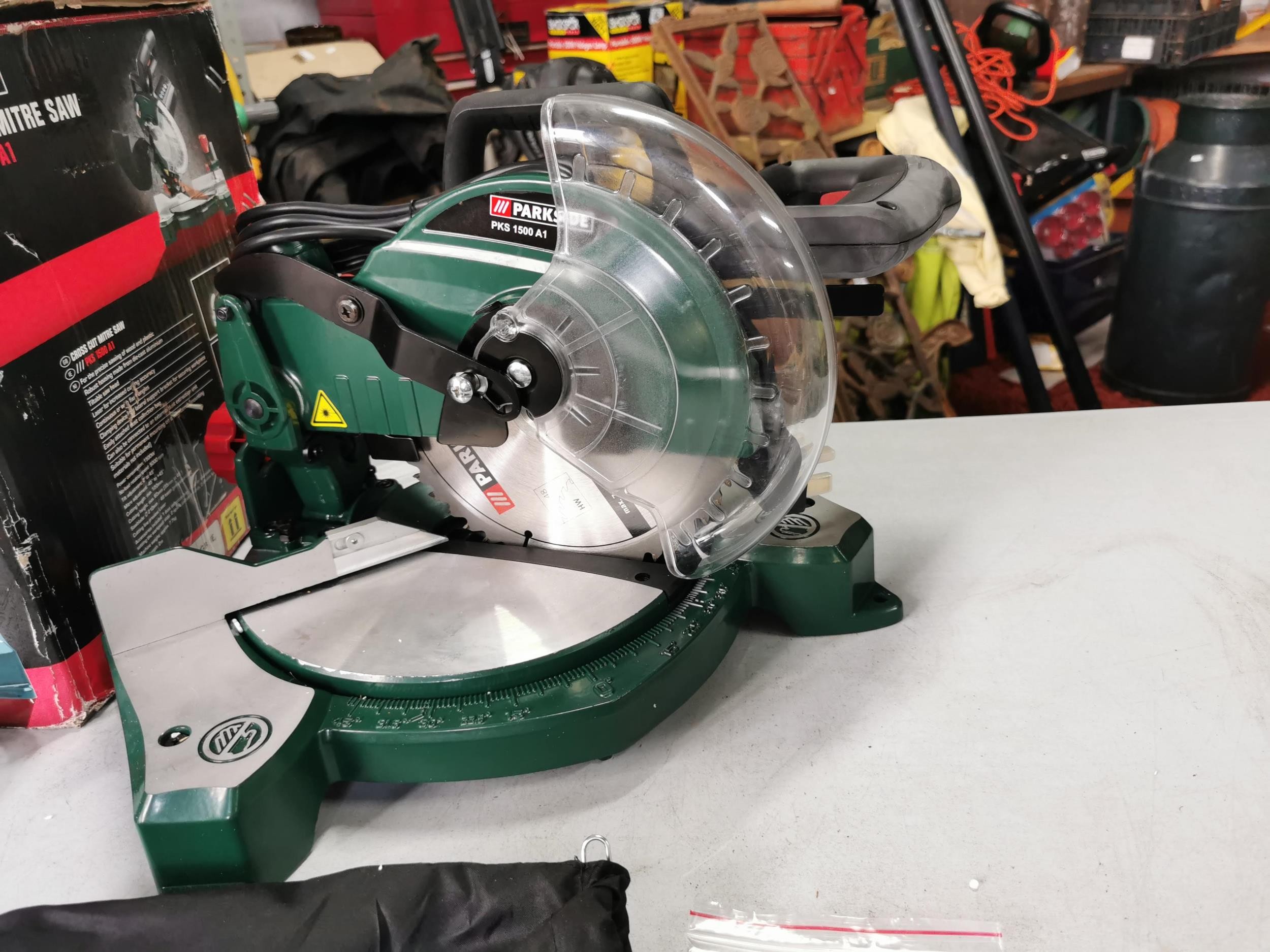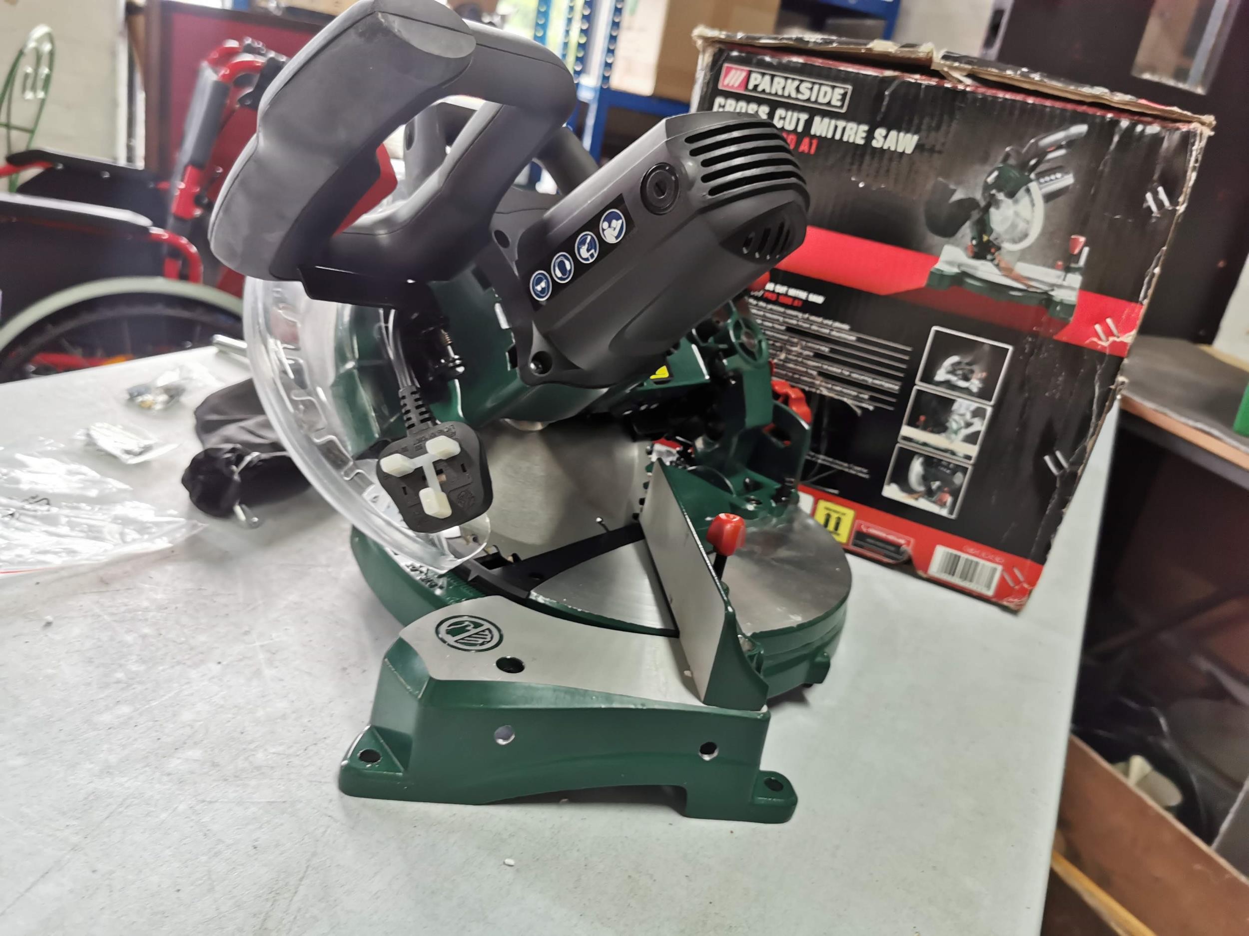 Parkside cross cut mitre saw as new in box complete with accessories