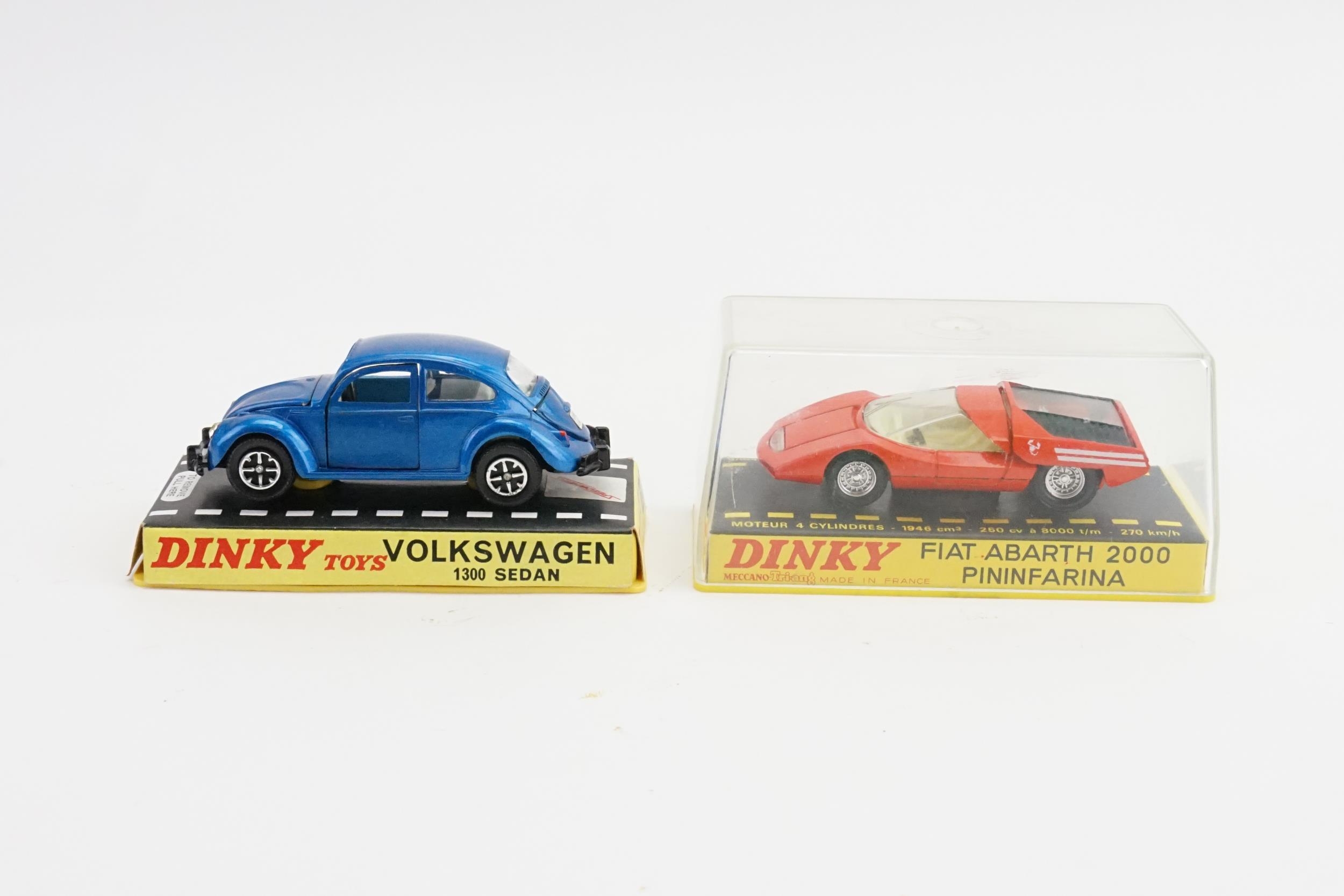 A French Dinky No: 1430 "Fiat Abarth 2000 Pininfarina" in Orange in Original Box along with a Part Boxed Dinky No: 129 "V.W. Beetle" in Blue which is missing the Plastic Top. Both models are in Near Mint/Mint Original Condition.