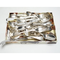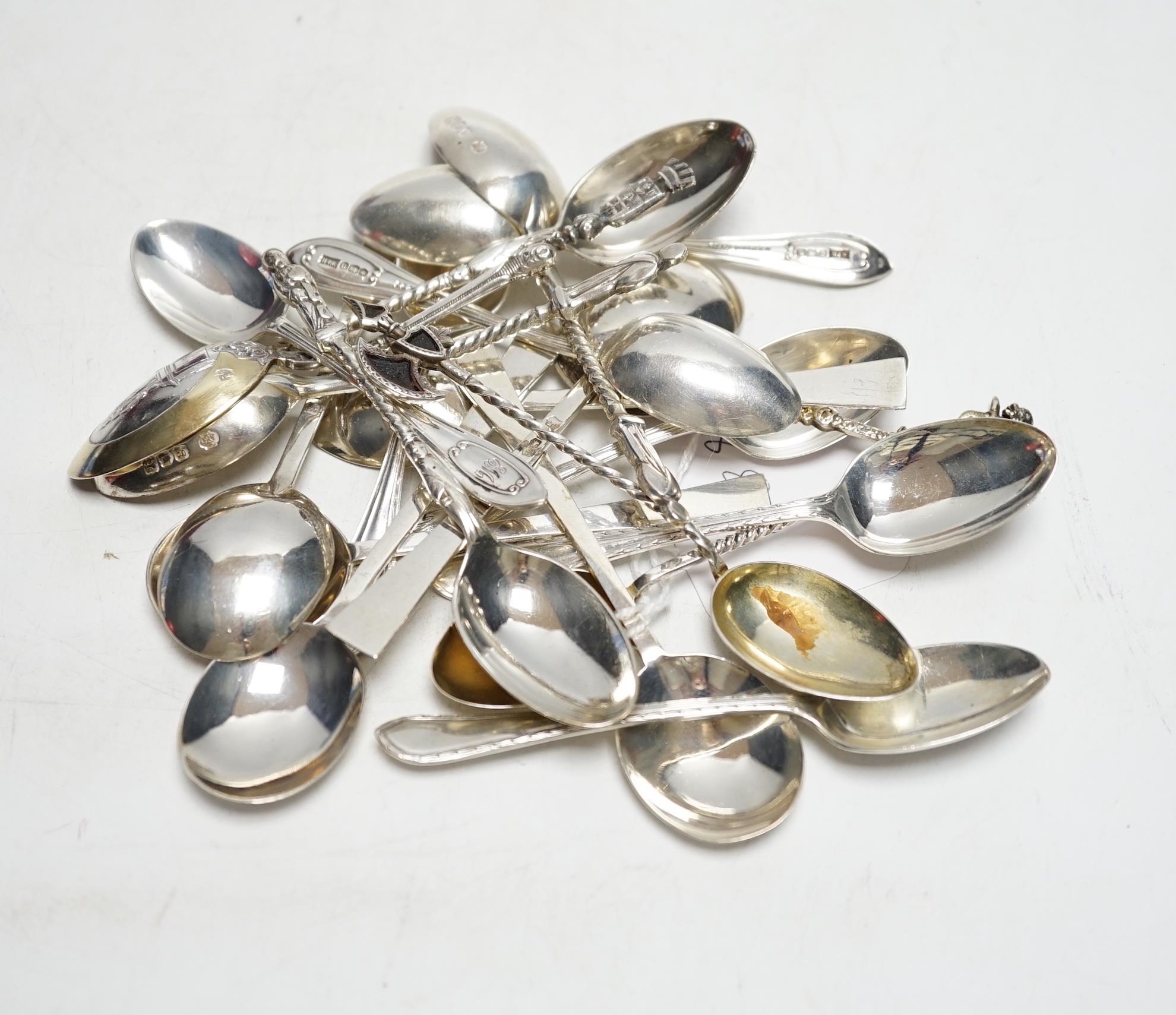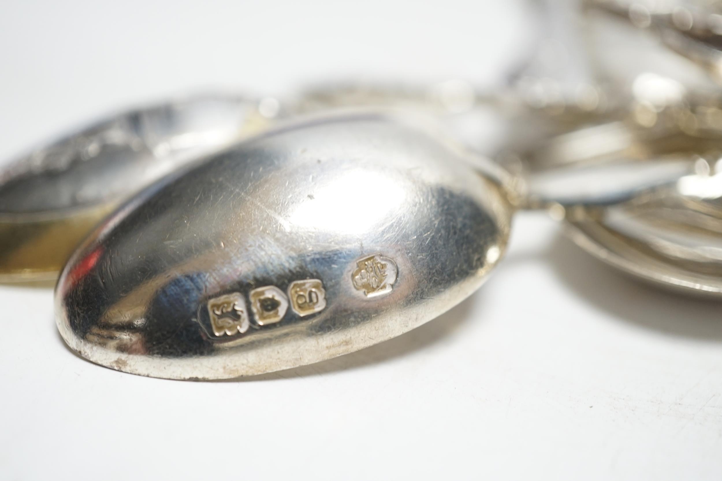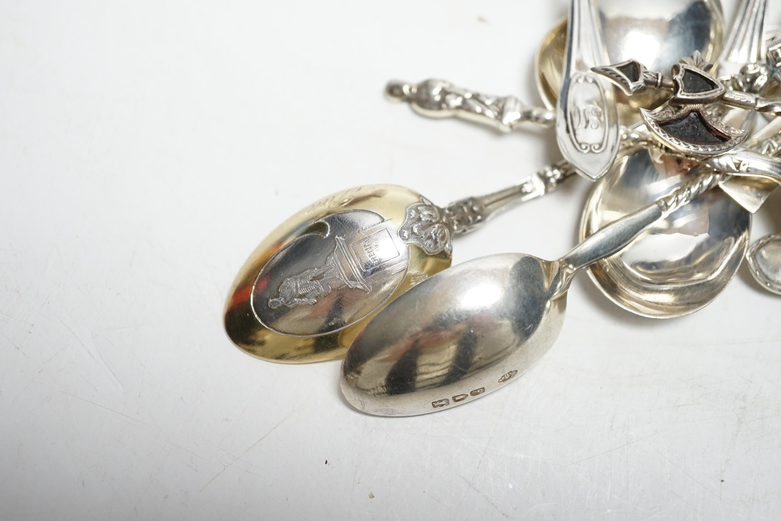 * * Sundry silver cutlery:- Two sets of six coffee spoons, a coronation spoon, three souvenir spoons and a set of four apostle spoons. Please note this lot attracts an additional import tax of 5% on the hammer price