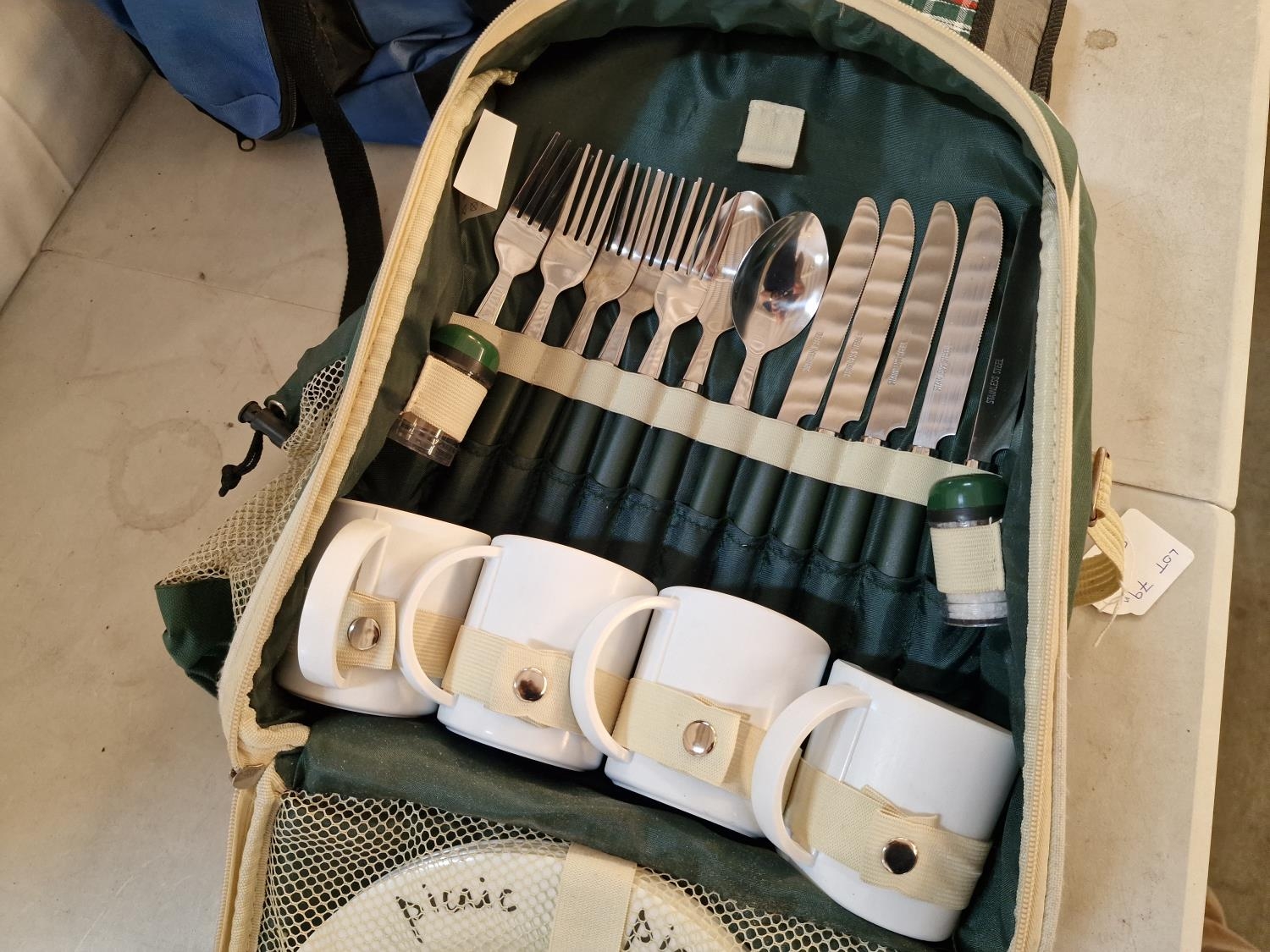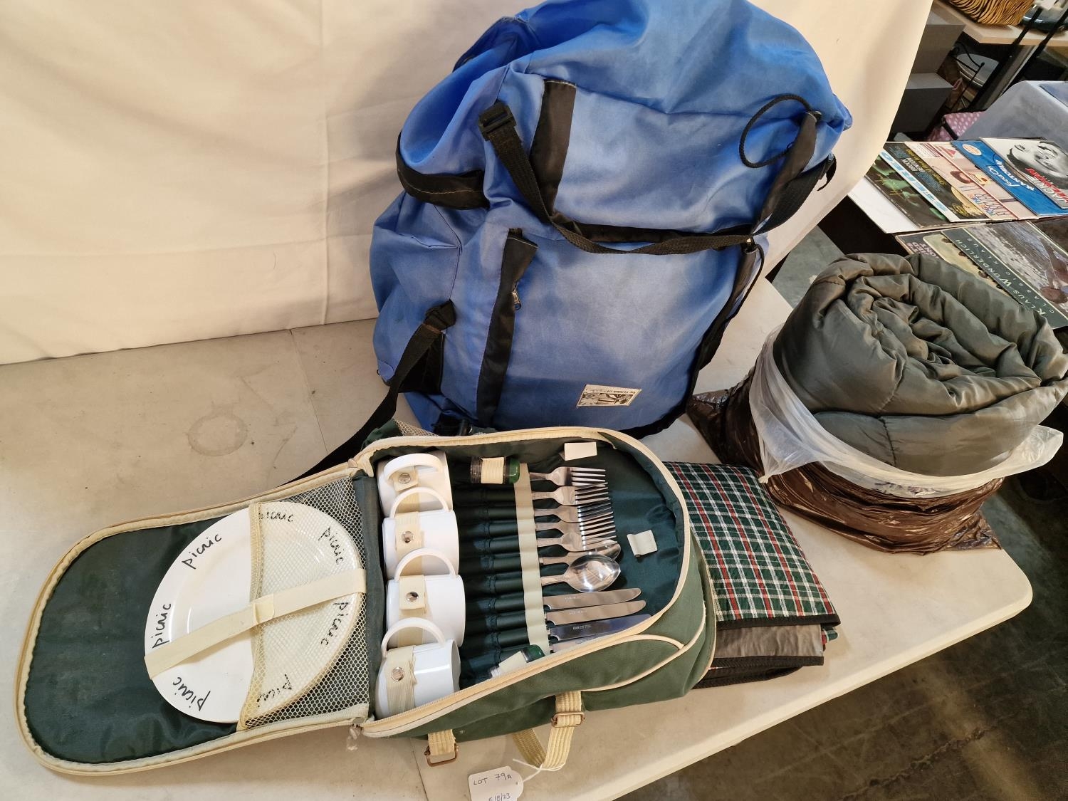Picnic Set Ruck Sack, 4-Place Setting with Blanket (Shoulder Straps a/f), Together with Sleeping Bag and Beach Bag, (3)