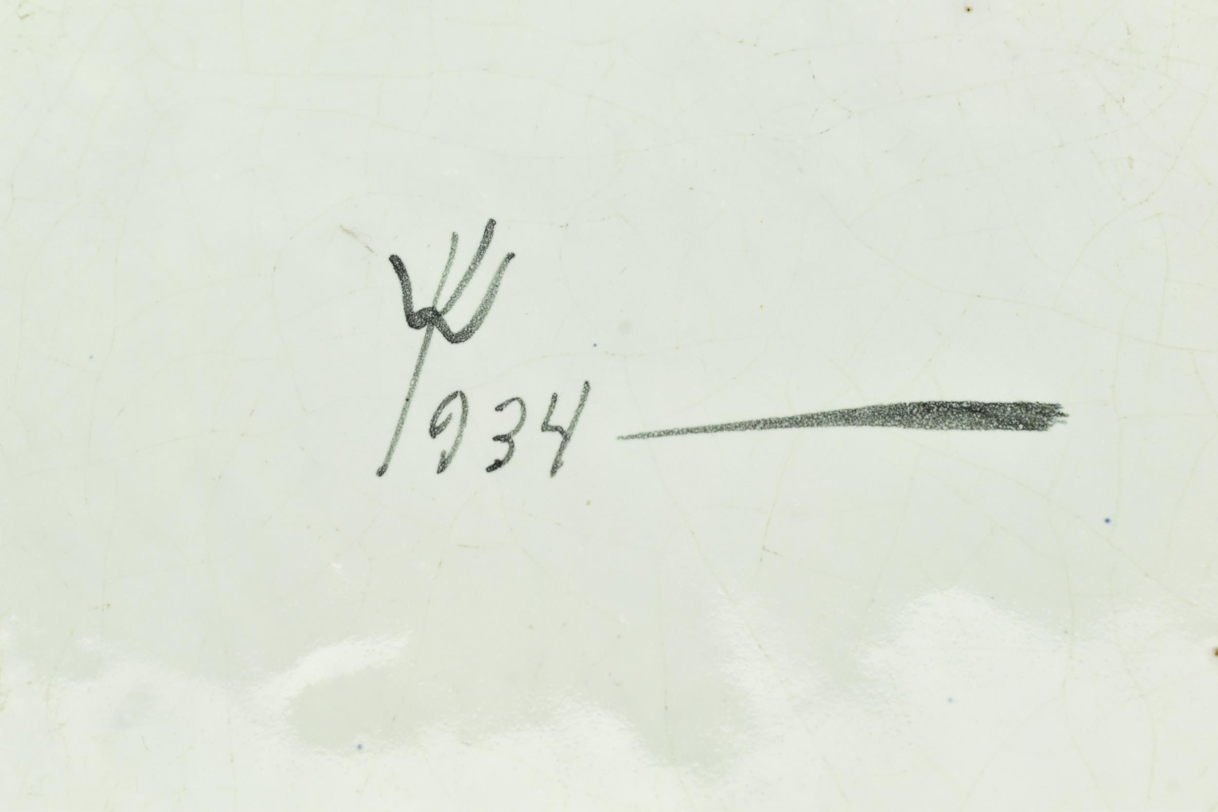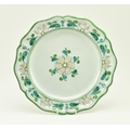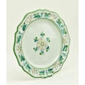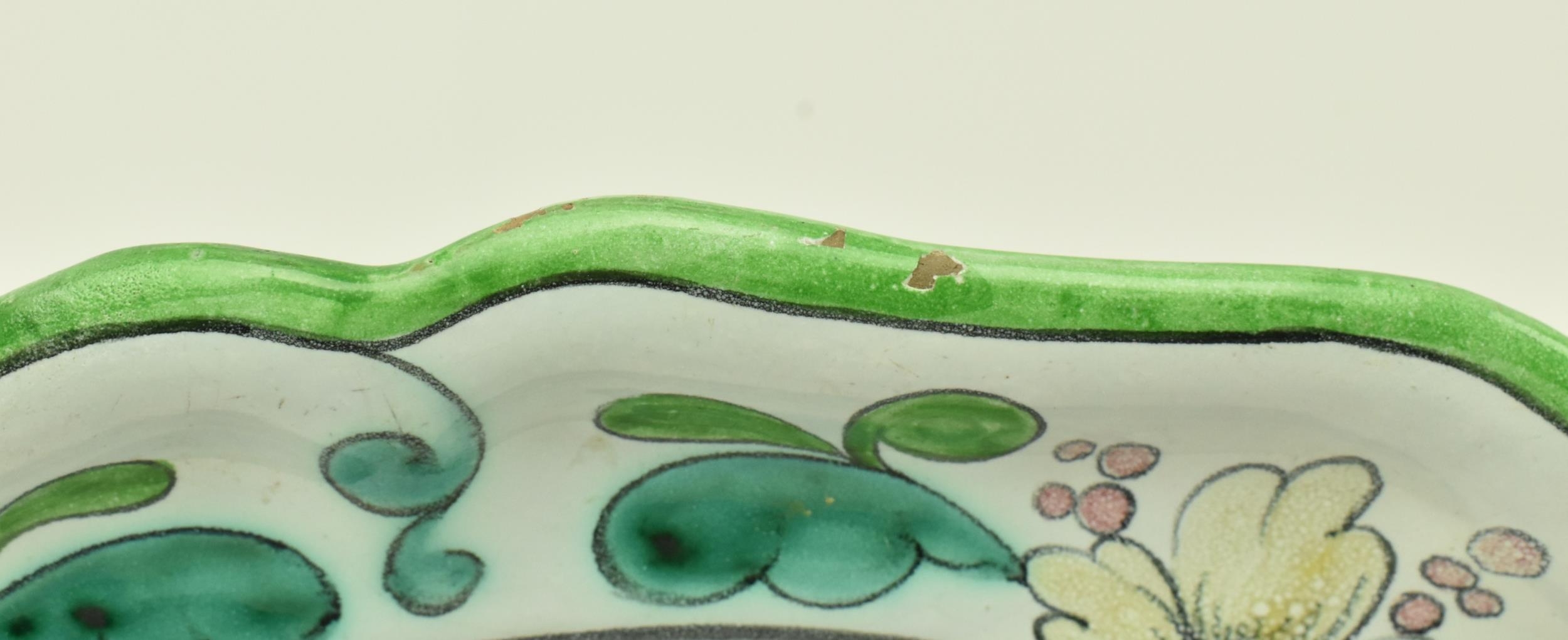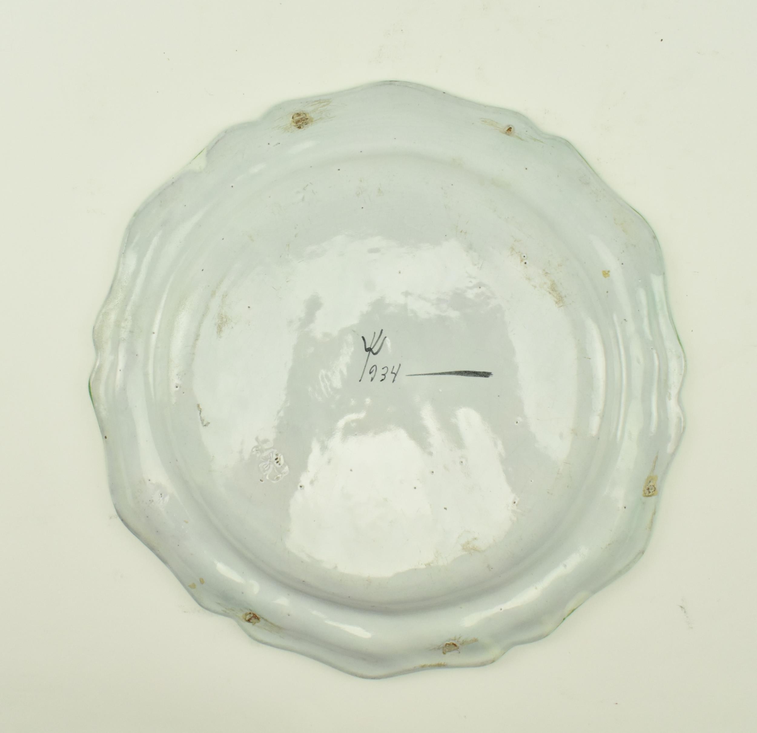 A 18th century Italian continental ceramic charger. The lettuce rim charger decorated with hand painted flowers and foliage scrolling on the rim. Flower and vignette leaves in the centre of the plate. Marked to the base. Measures approx. 34.5cm diameter.