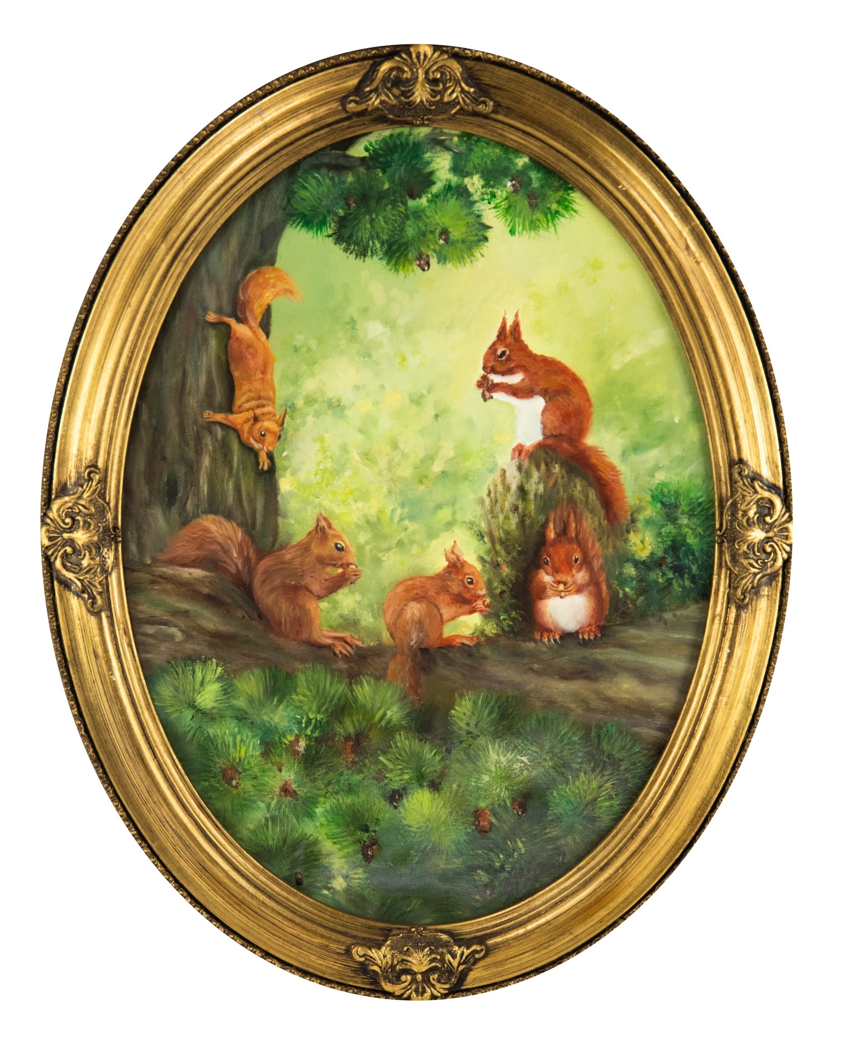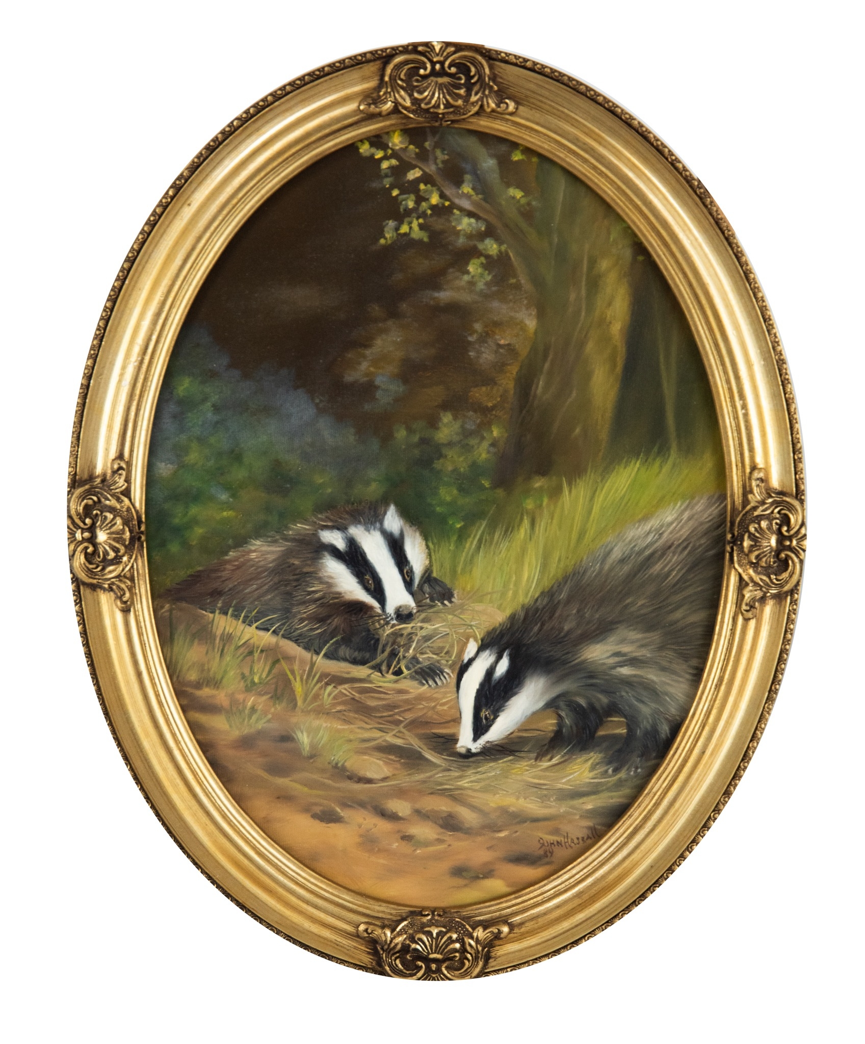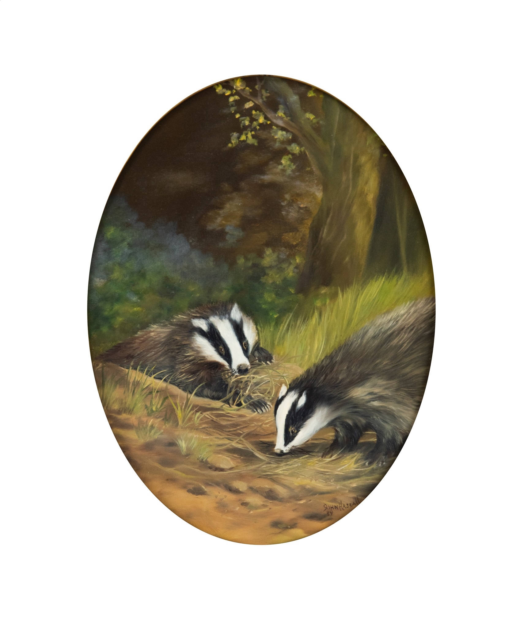 SET OF FIVE OVAL OILS ON CANVAS BRITISH WILDLIFE:
