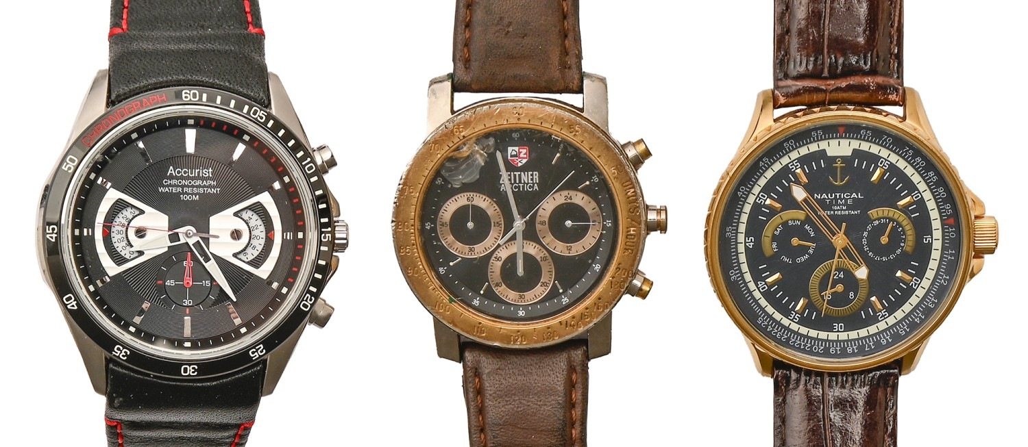 An Accurist stainless steel gentleman's wristwatch and two others, quartz movement, various sizes, boxed