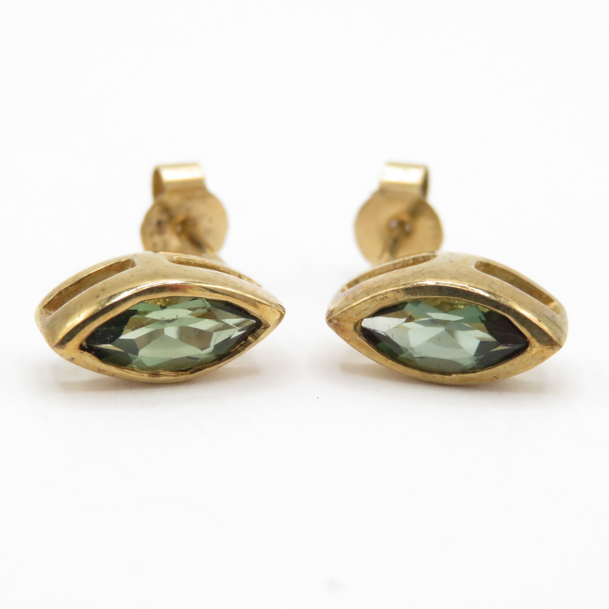 9ct gold green tourmaline marquise cut stud earrings (1.5g)