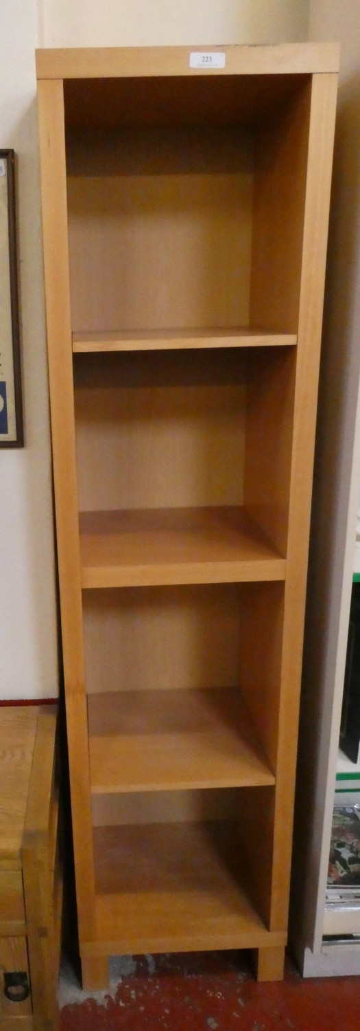 A four tier narrow bookcase