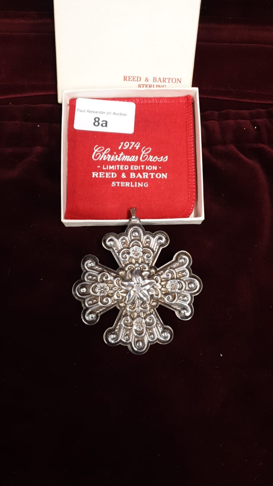 Sterling silver Reed and Barton large silver Christmas tree decoration with original box.