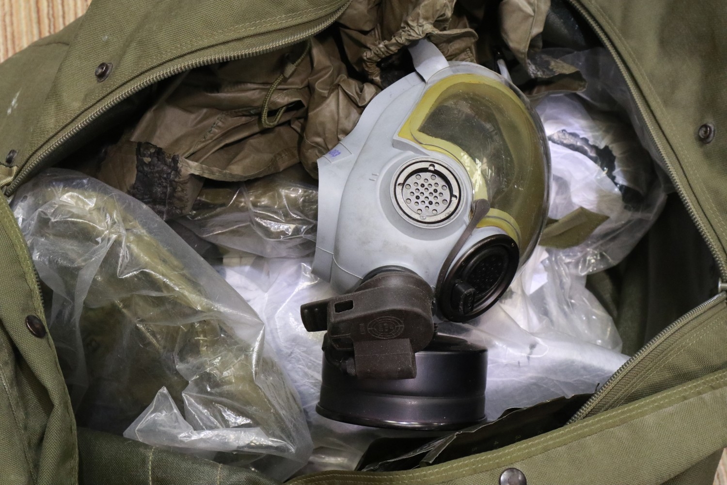 Military chemical safety equipment to include gloves, masks ...