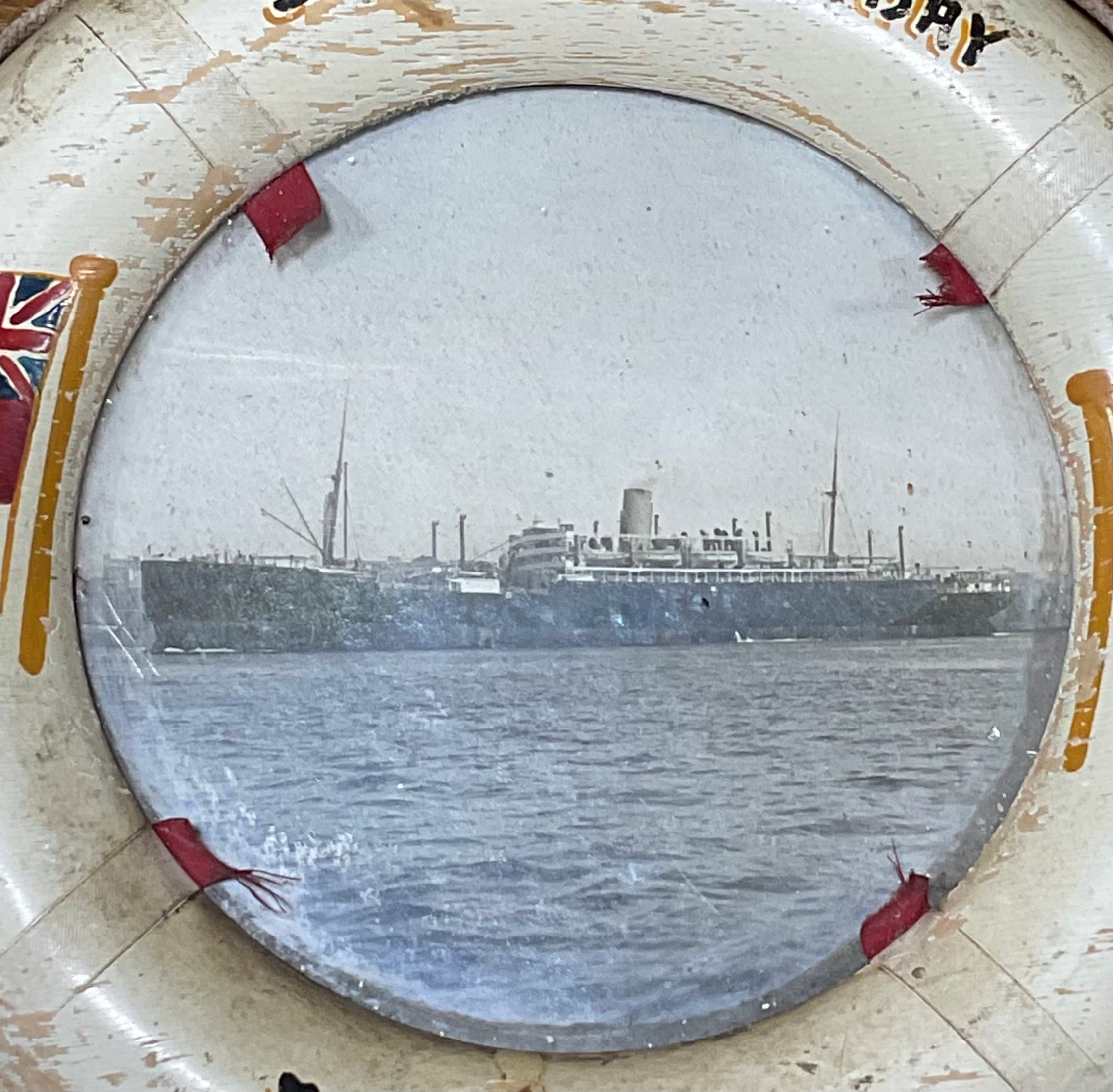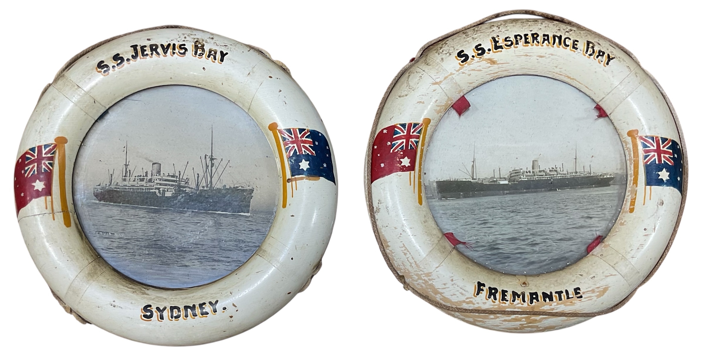 White Star Line Interest - Framed Pair of Ship Photographs Incl. S.S. Esperance Bay Fremantle and S.S. Jervis Bay Sydney - Both Ships Were Originally Owned by The Commonwealth Line but due to Problems with High operating Costs and Frequent Industrial Action, their Ships were Sold to the White Star Line in 1928 - Diameter - 22cm