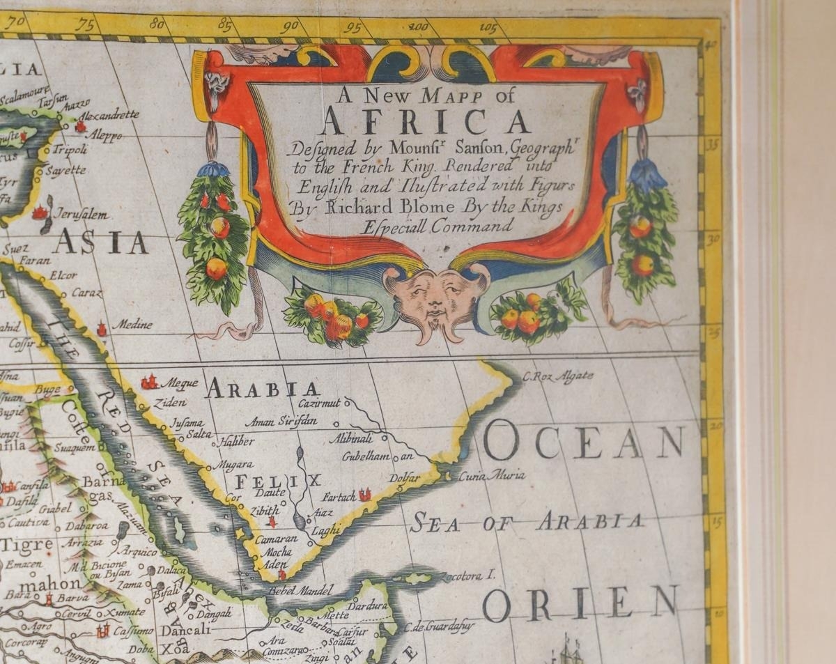 Africa. Blome (Richard), A New Mapp of Africa Designed by Mounsir. Sanson Geographr. to the French King..., with Arms of The Earles Carlyle to lower left, approx 38.5 x 54cm, framed and mounted [1]