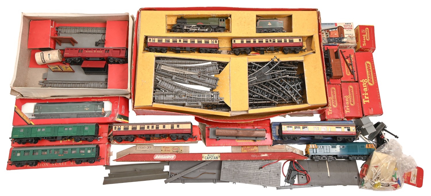 Tri-ang and other OO gauge model railways, including electric scale model train set, R.23 operating Royal Mail coach set, Hornby R.072 B.R. Class 25 diesel locomotive, miscellaneous other coaches, rolling stock, track and accessories, mostly boxed