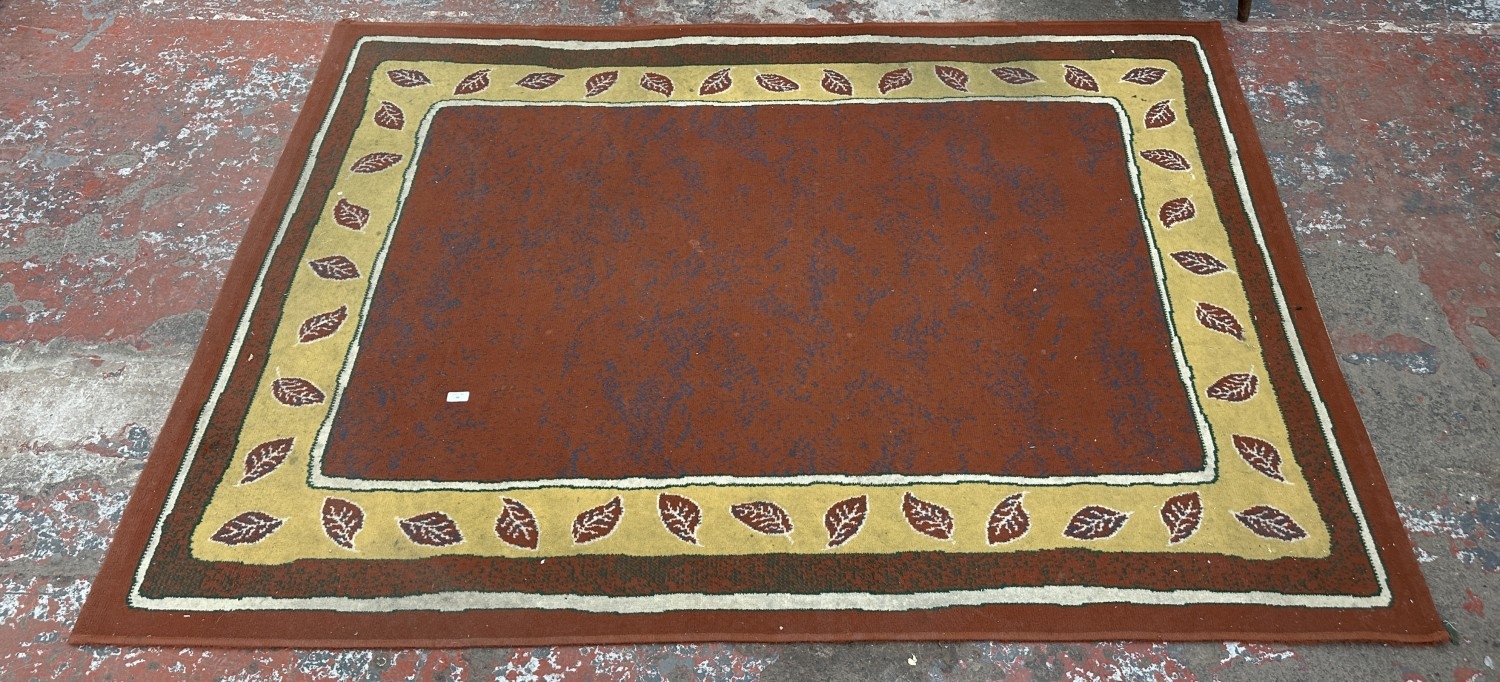 A modern machine woven rug with leaf design - approx. 219cm x 161cm
