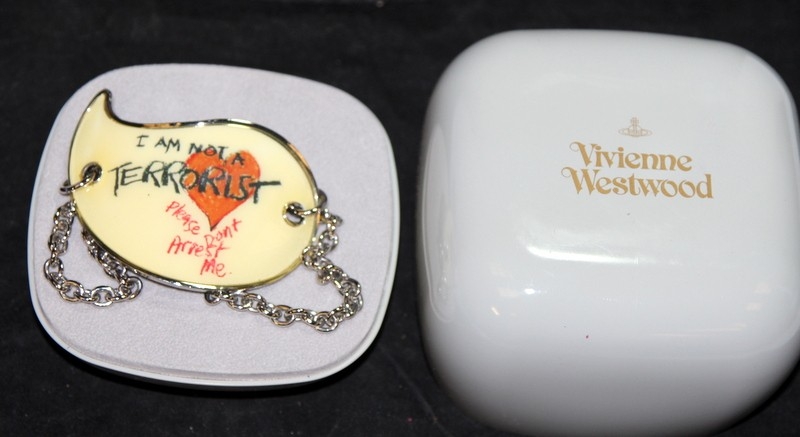 Genuine Vivienne Westwood Jewellery: 42cms choker necklace 'I'm Not A Terrorist - Please don't Arrest Me'. In excellent boxed condition. From a single owner collection.