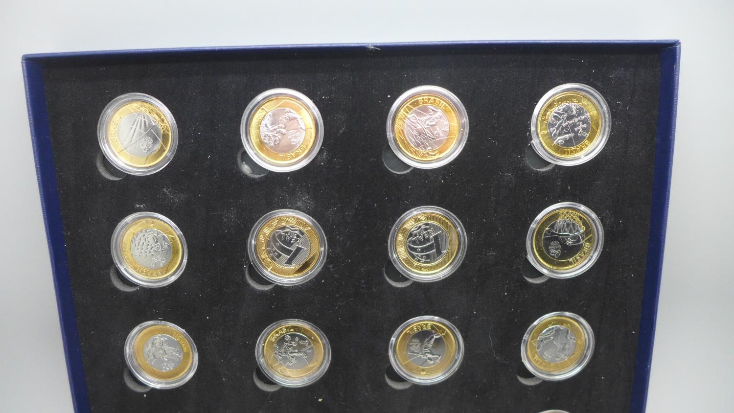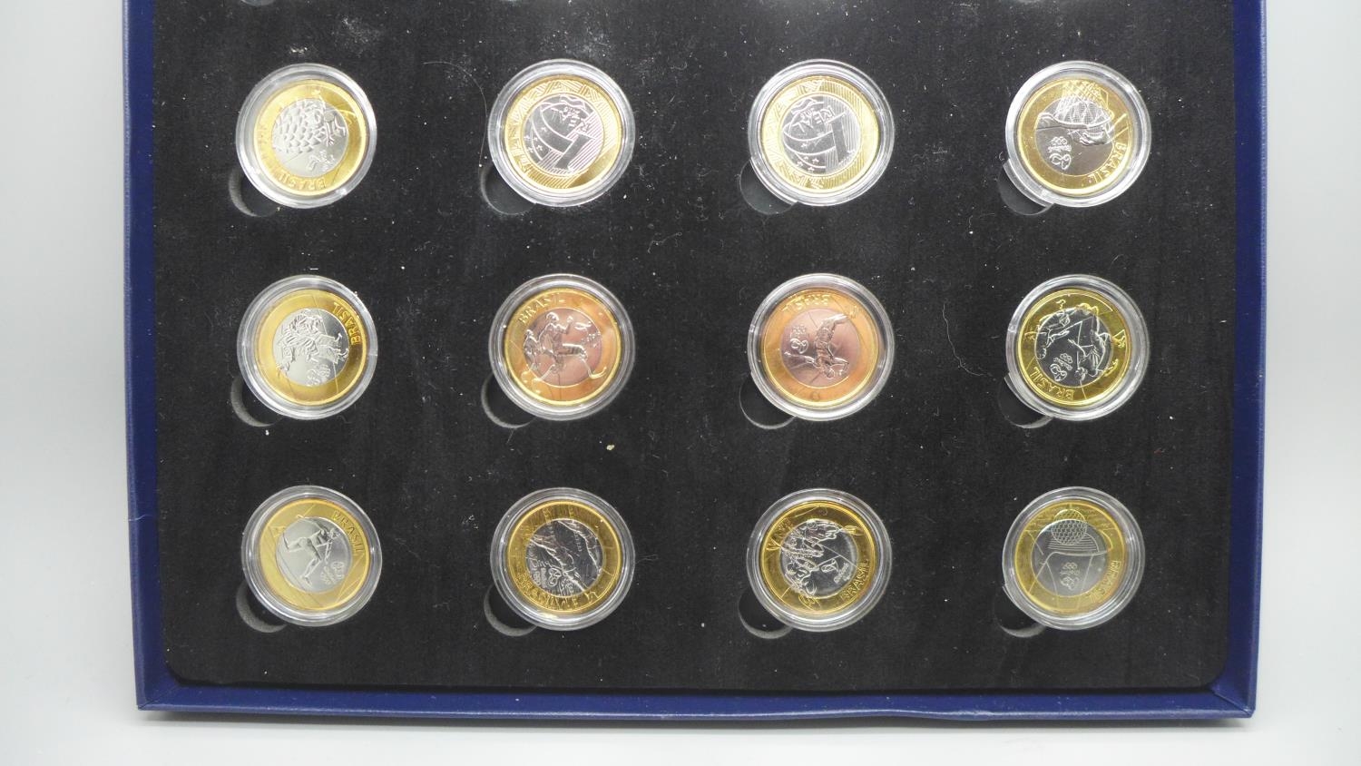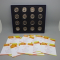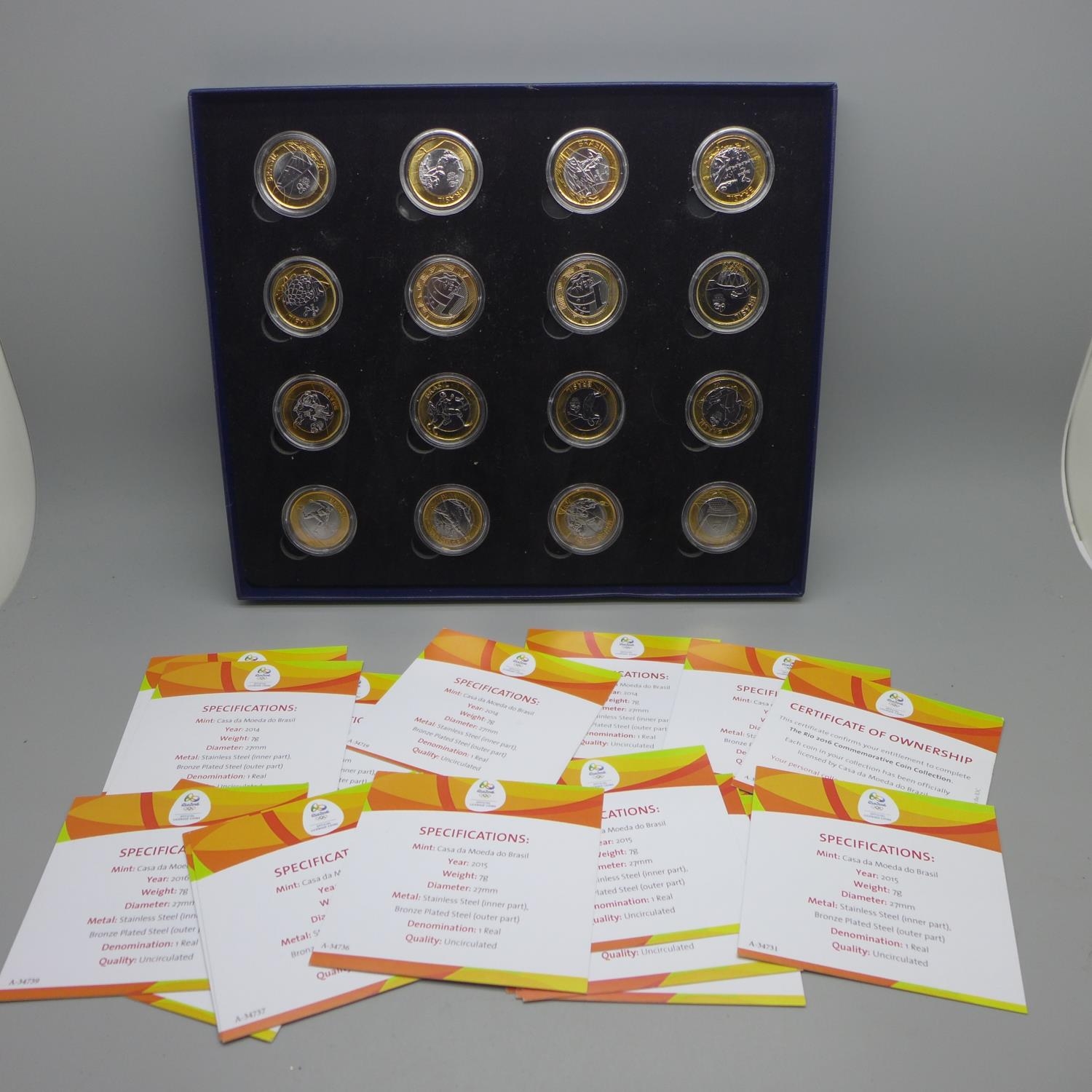 A collection of sixteen Rio 2016 Olympic 1 Real coins, boxed and cased