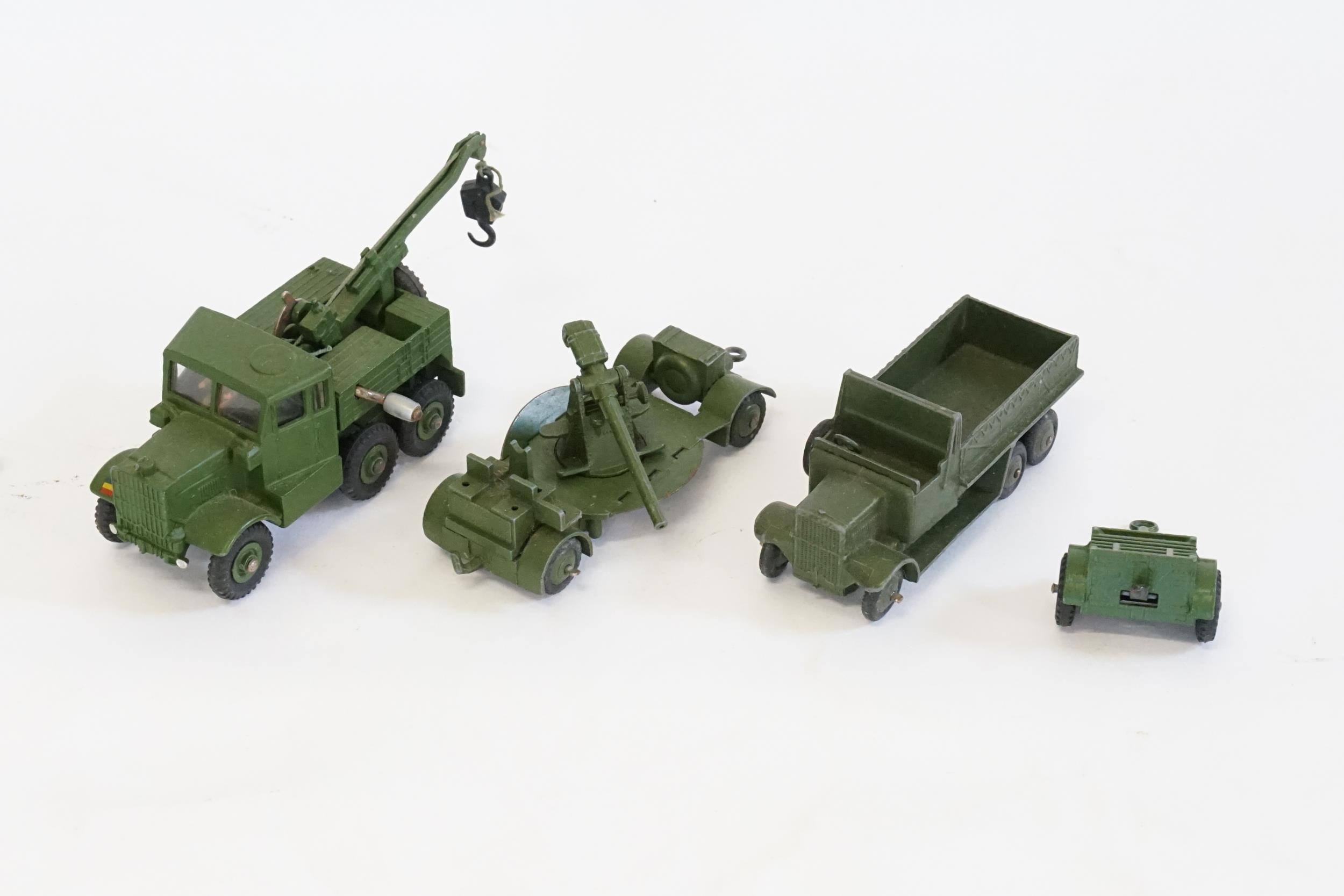 A Tray of 1950s Dinky Military models to include No: 661 "Scammell Military Breakdown Truck, No: 151b "6 Wheel Army Wagon", No: 161 "Anti-Aircraft Gun on Trailer" & a No: 687 "Ammunition Trailer". The models are in Excellent Original Condition.