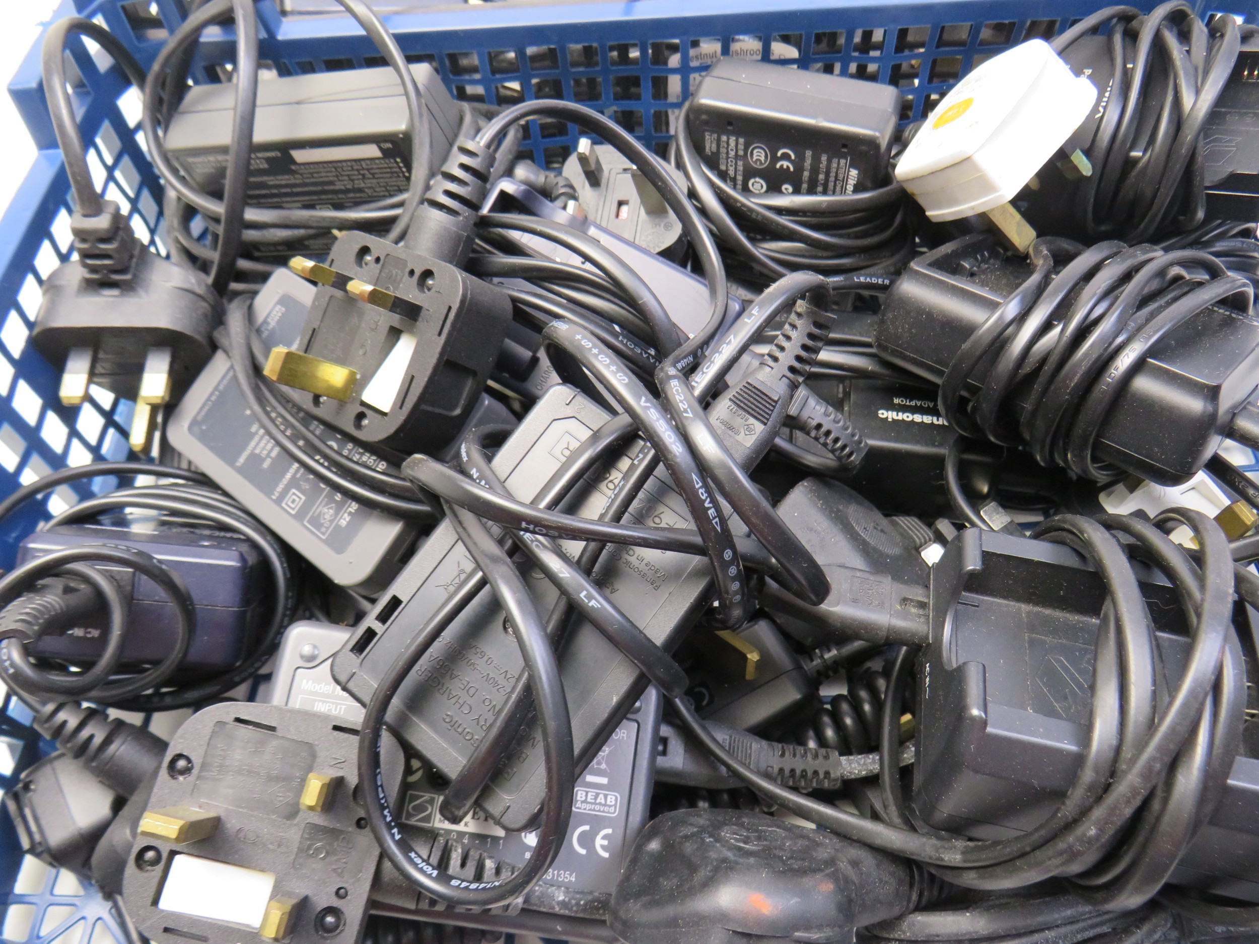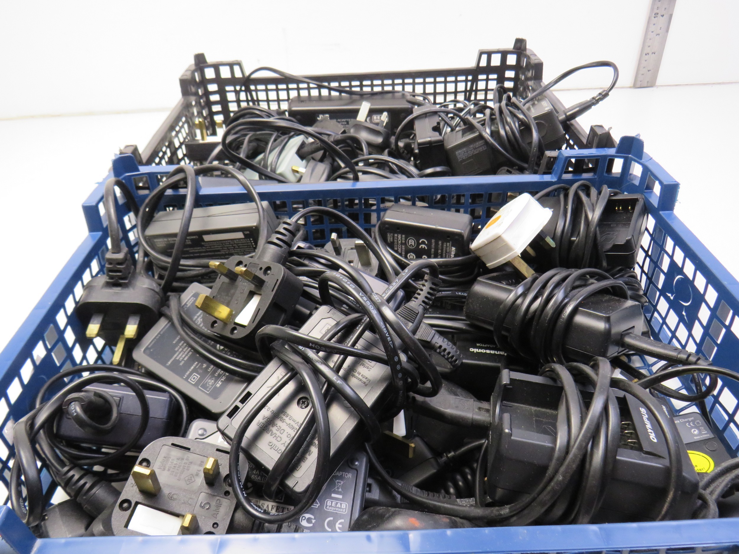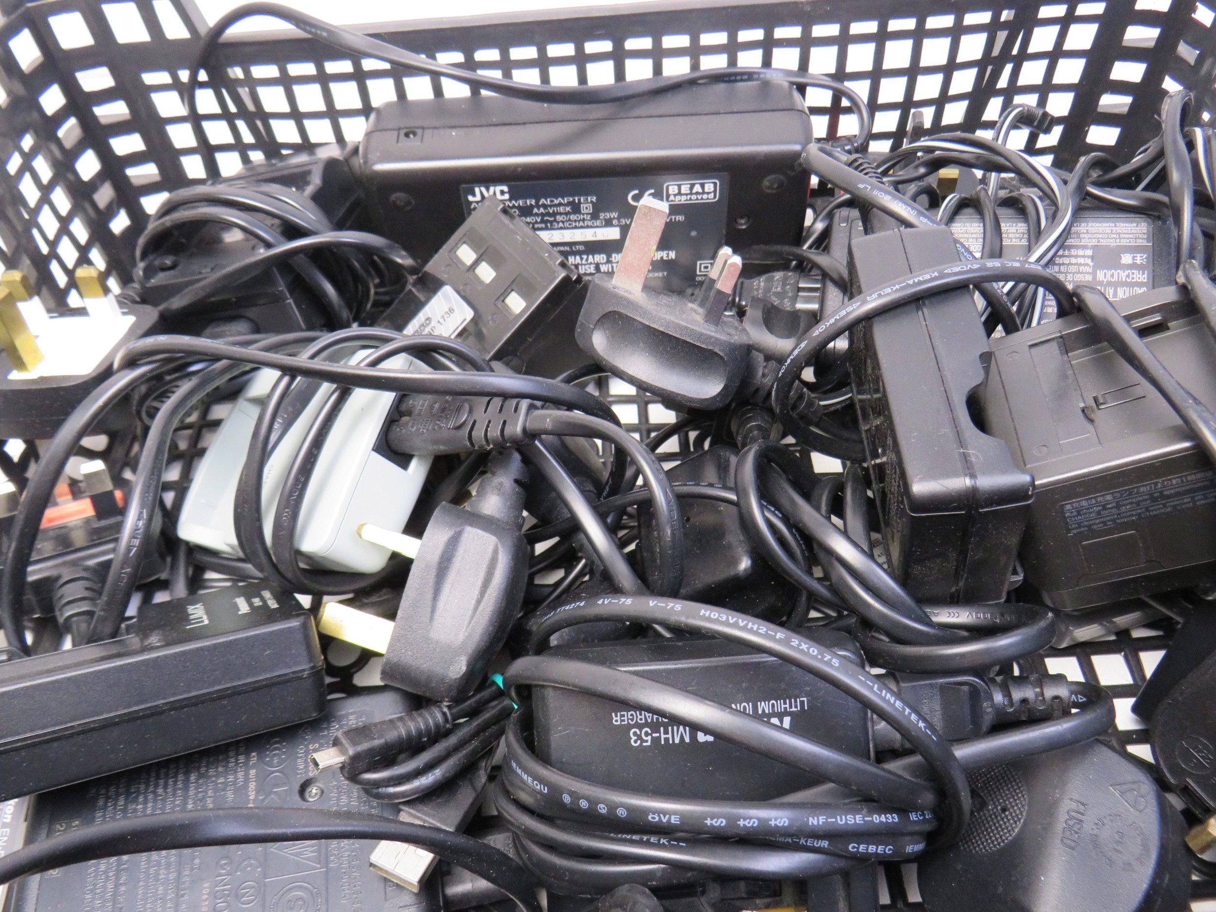 Job lot of assorted camera chargers.