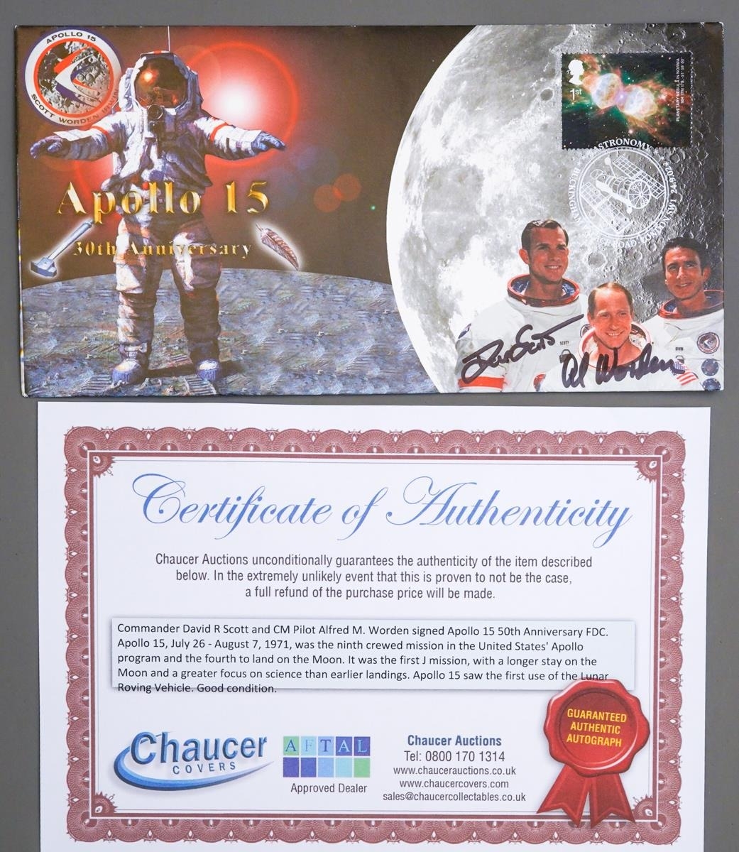 Commander David R Scott and CM Pilot Alfred M. Worden signed Apollo 15 50th Anniversary signed 1st Day Cover, LE 71/250 [1]