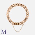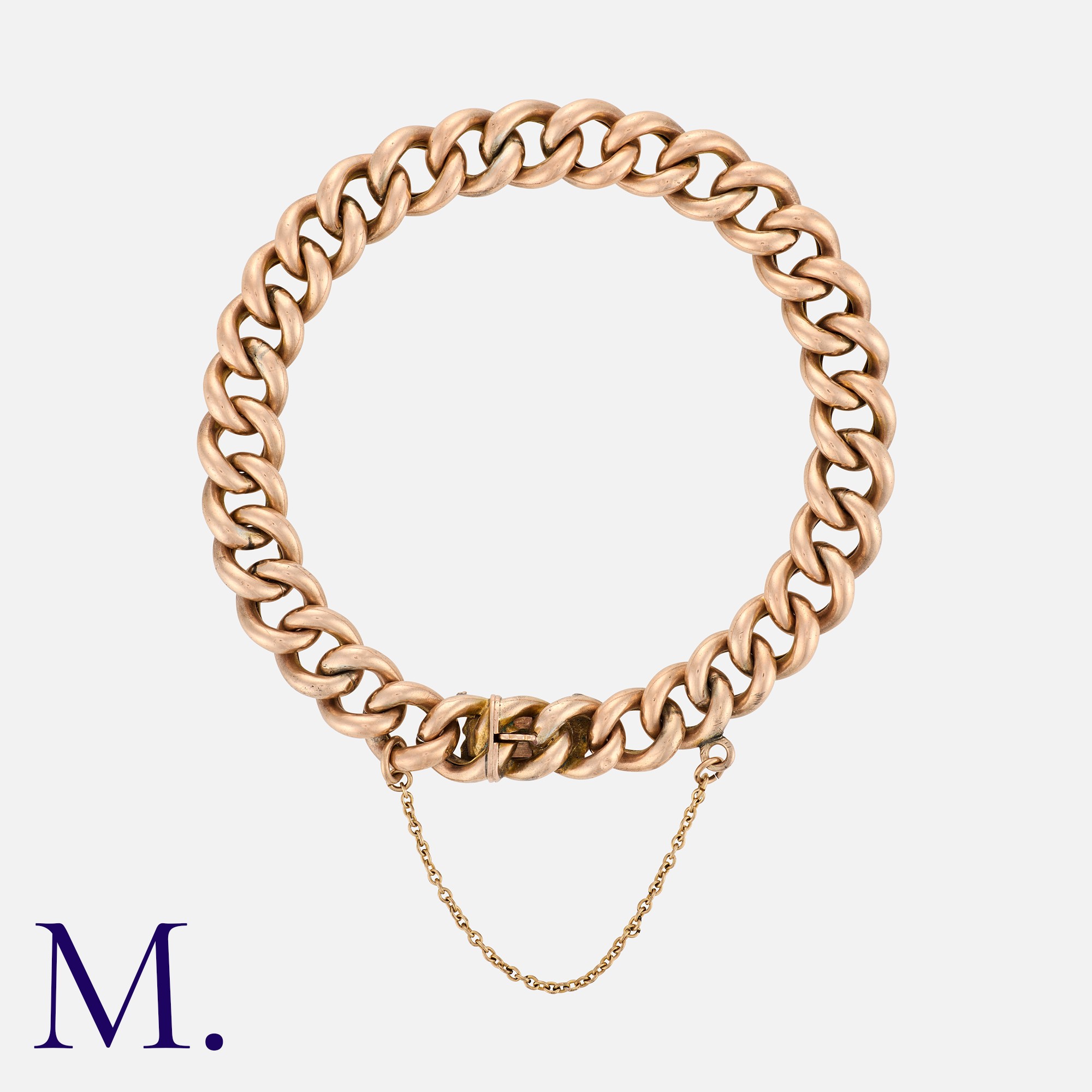 A Gold Curb Bracelet in 9K rose gold, with integrated fastening and safety chain.