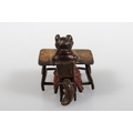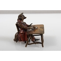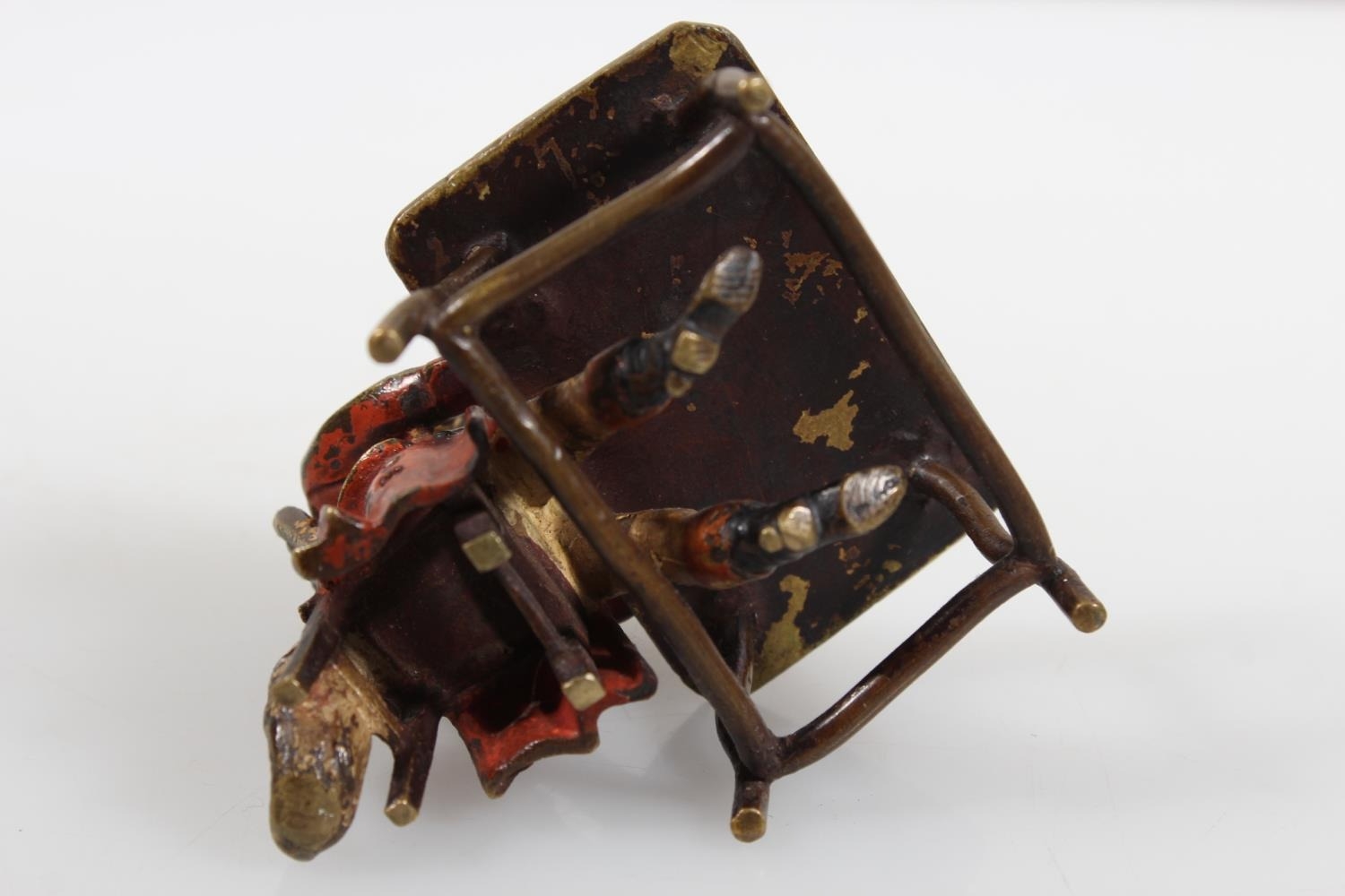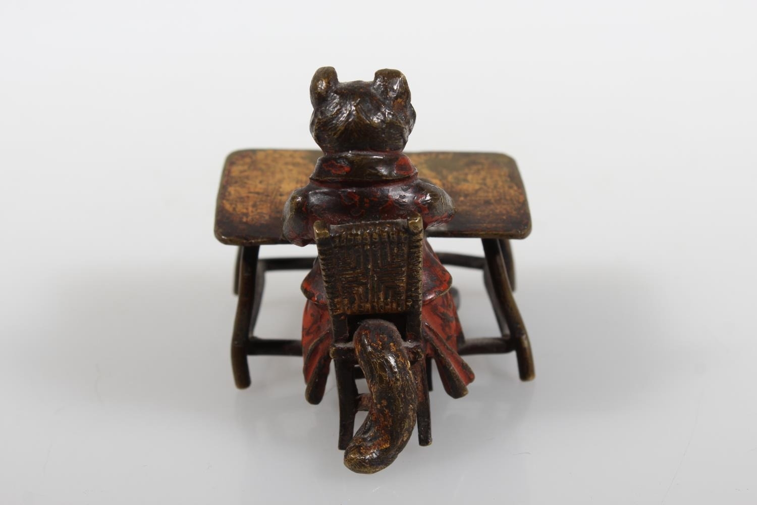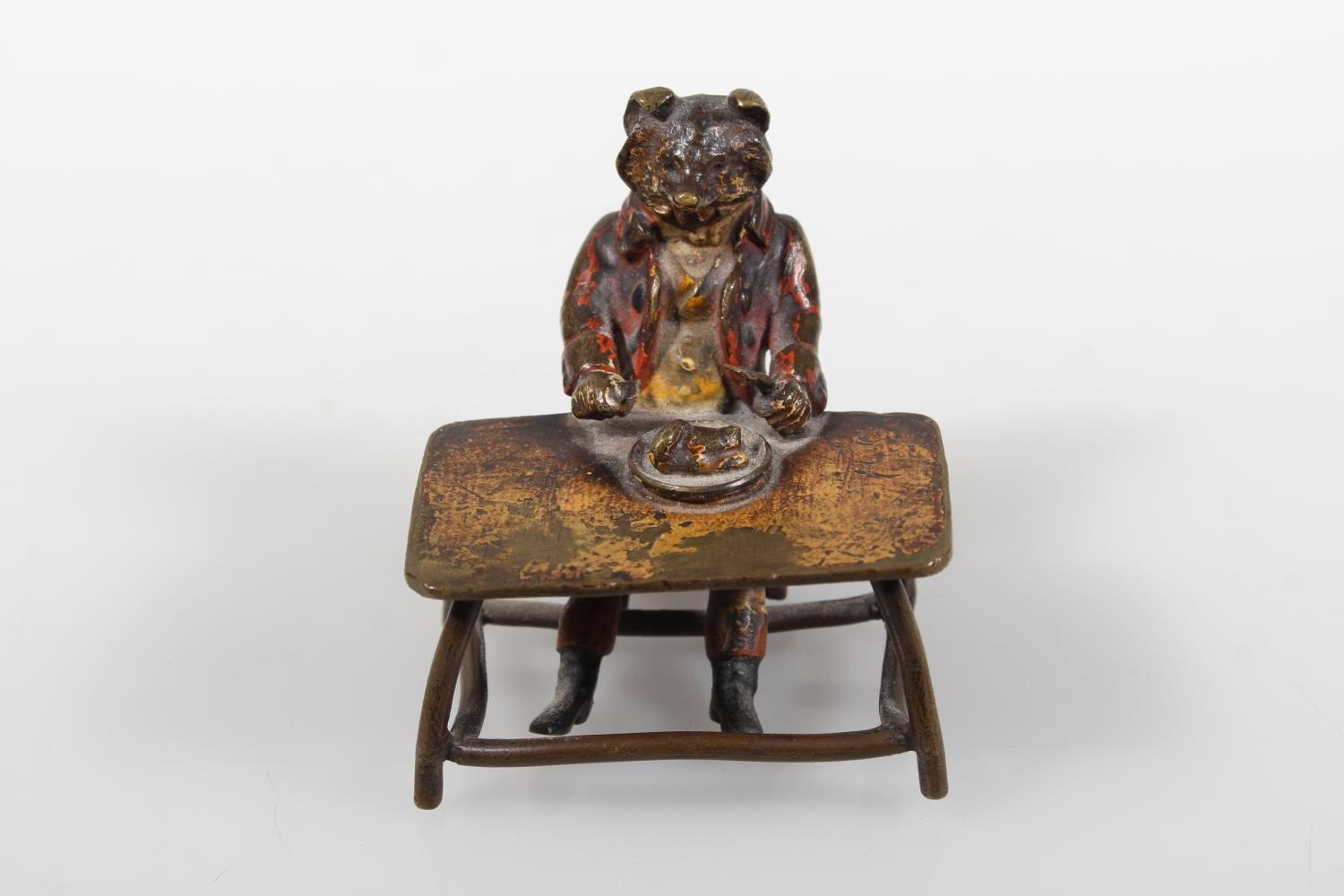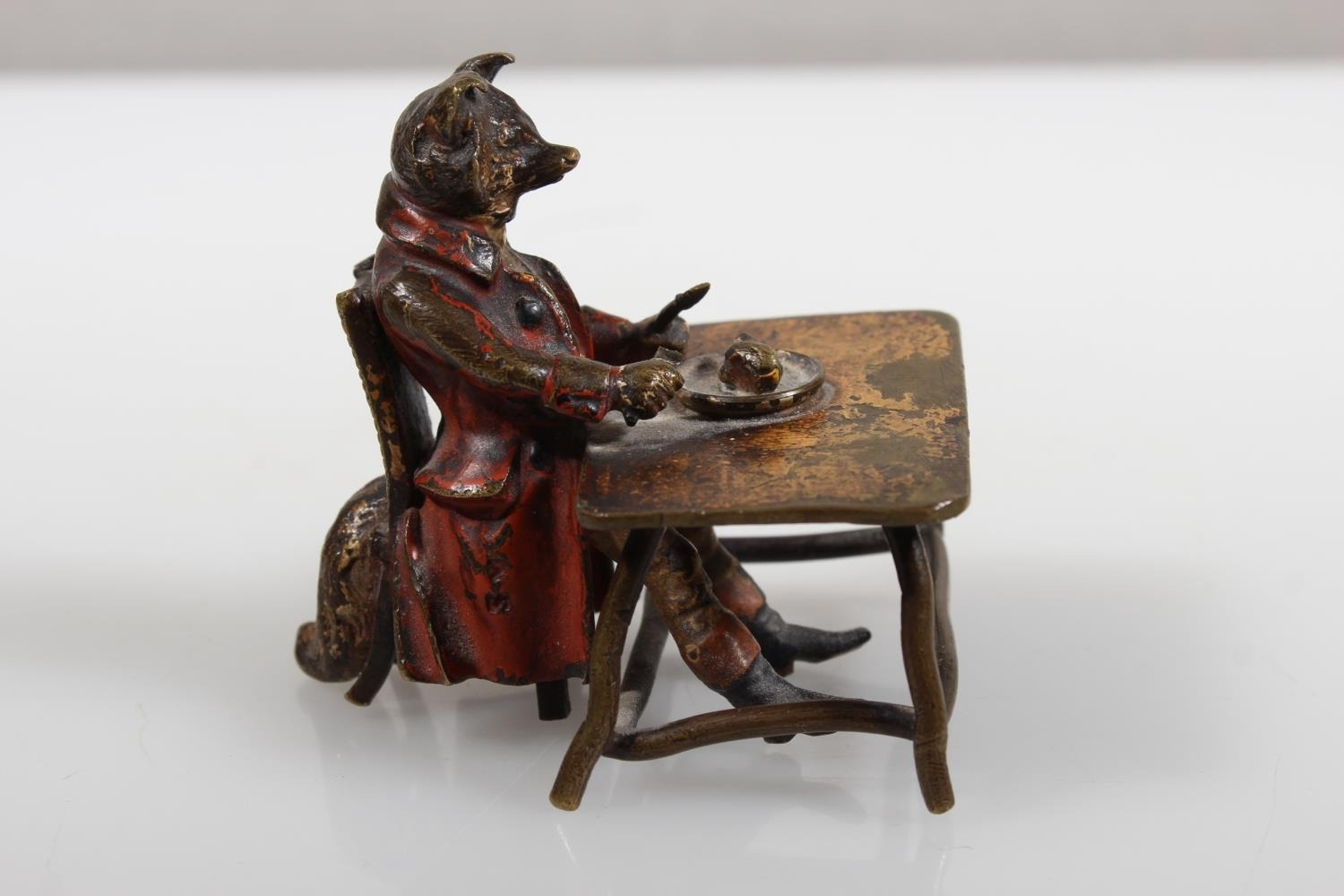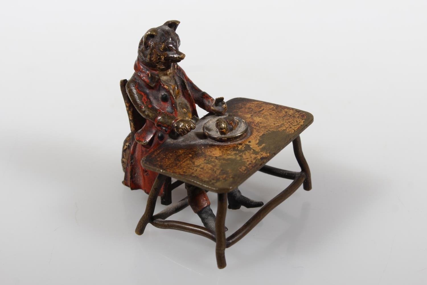 Early 20th Century miniature cold painted bronze decorative sculpture of a wolf eating at a dining table (possibly Austrian)