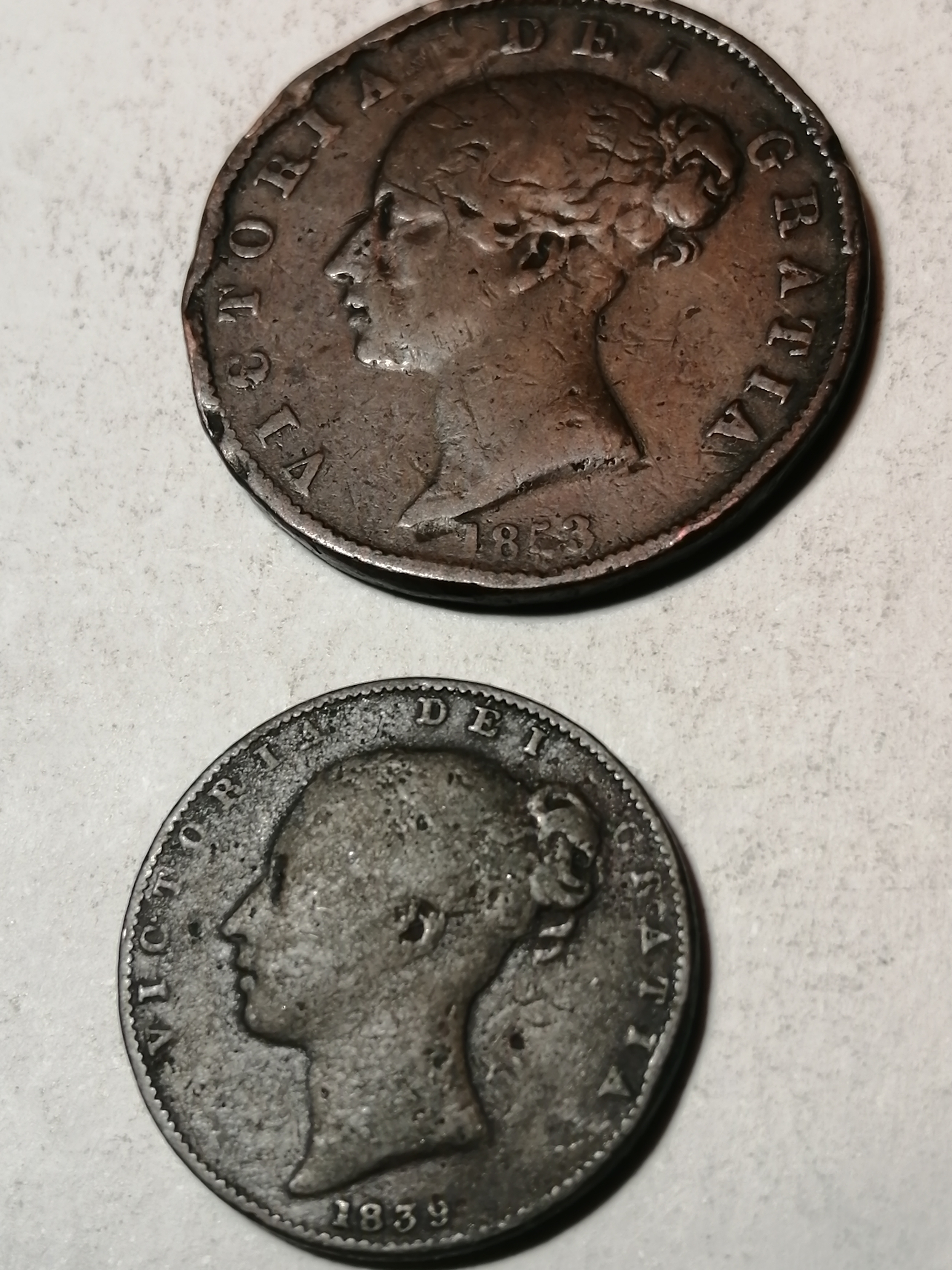 COINS : 1839 farthing and 1853 halfpenny