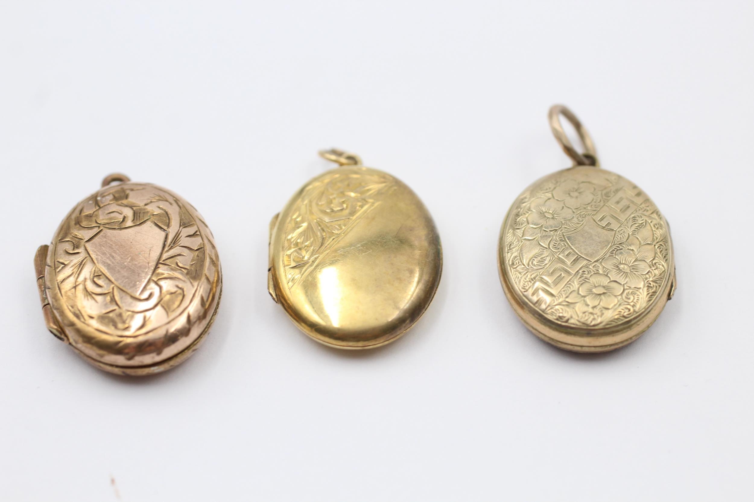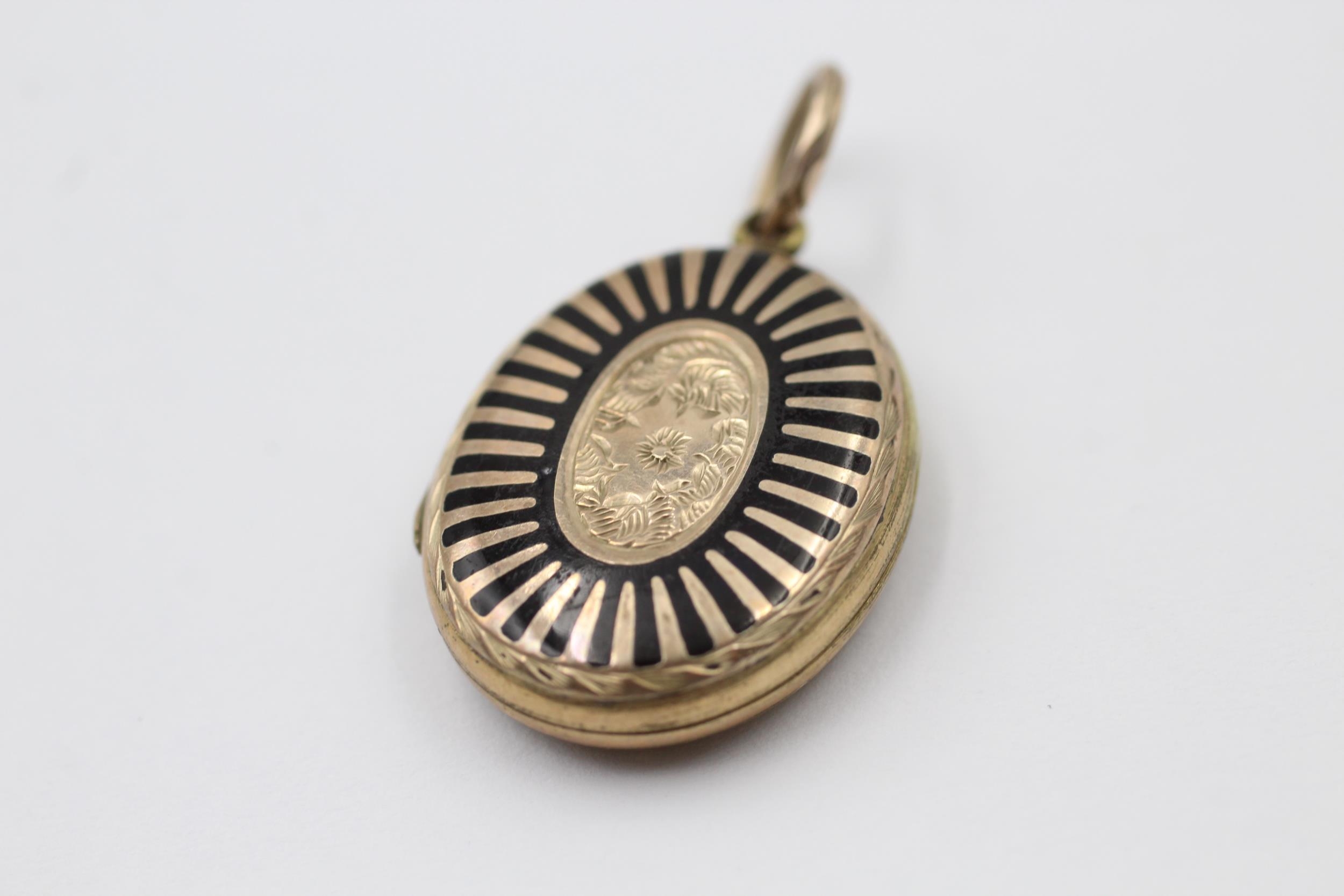 3 X 9ct Back & Front Gold Vintage Oval Lockets Inc. Black Enamel (10.8g)