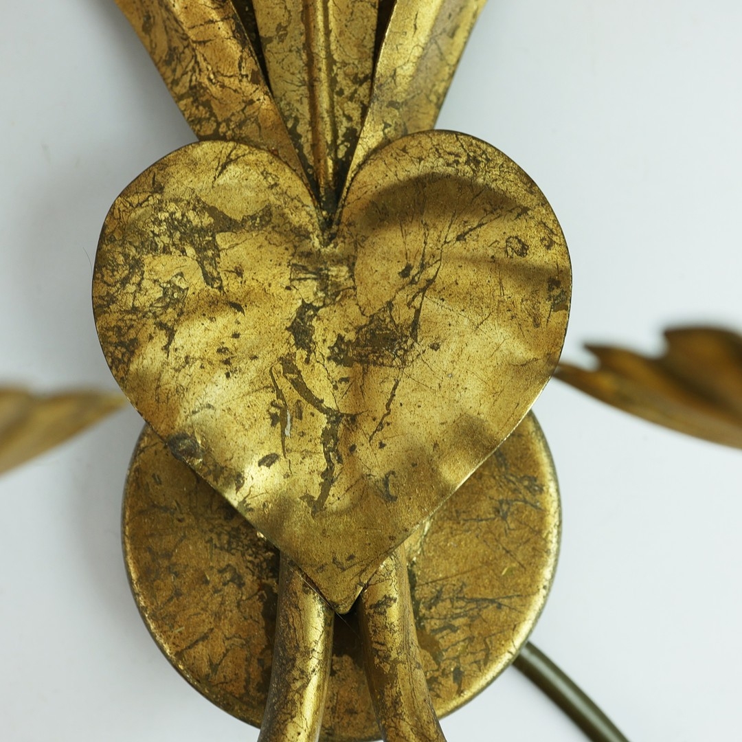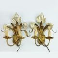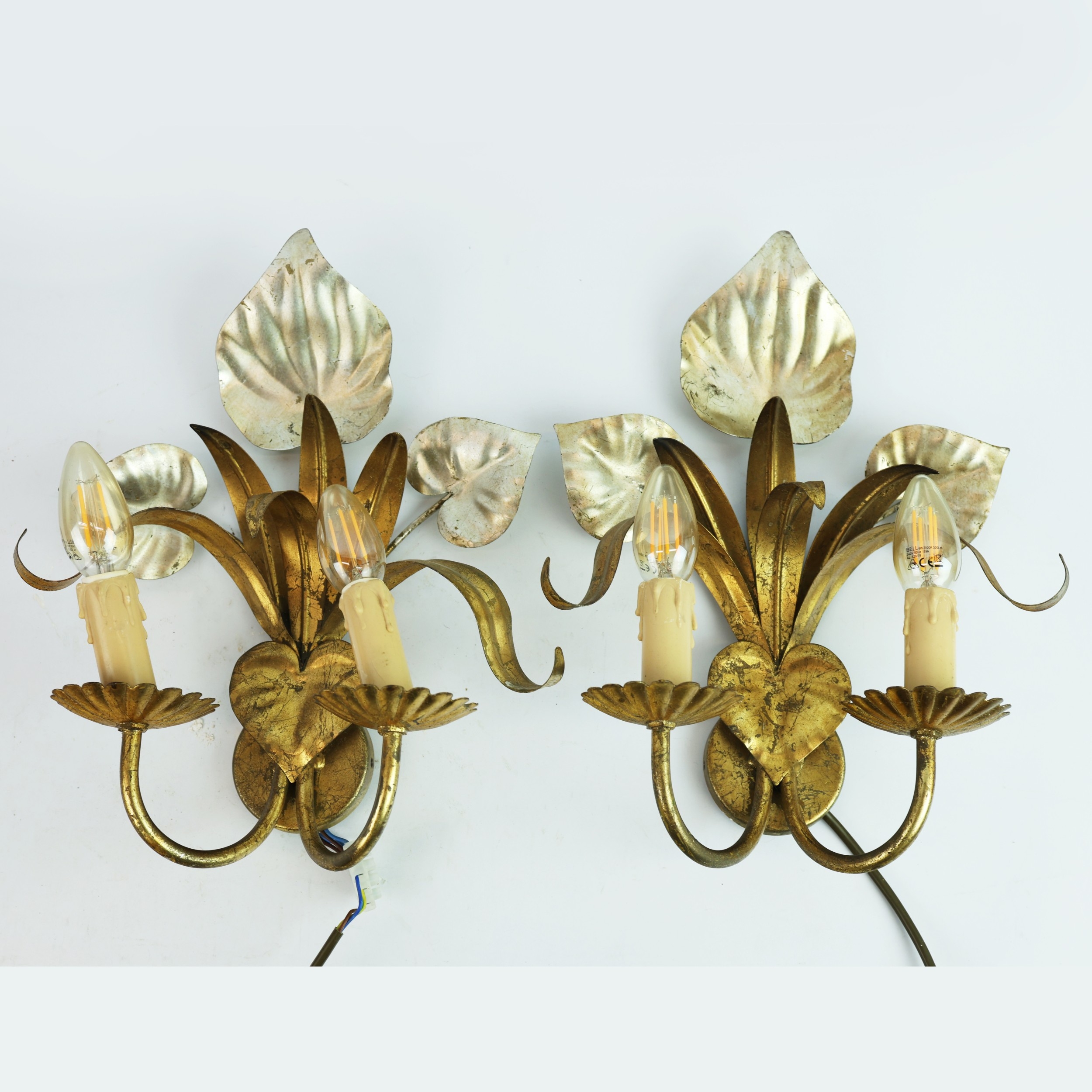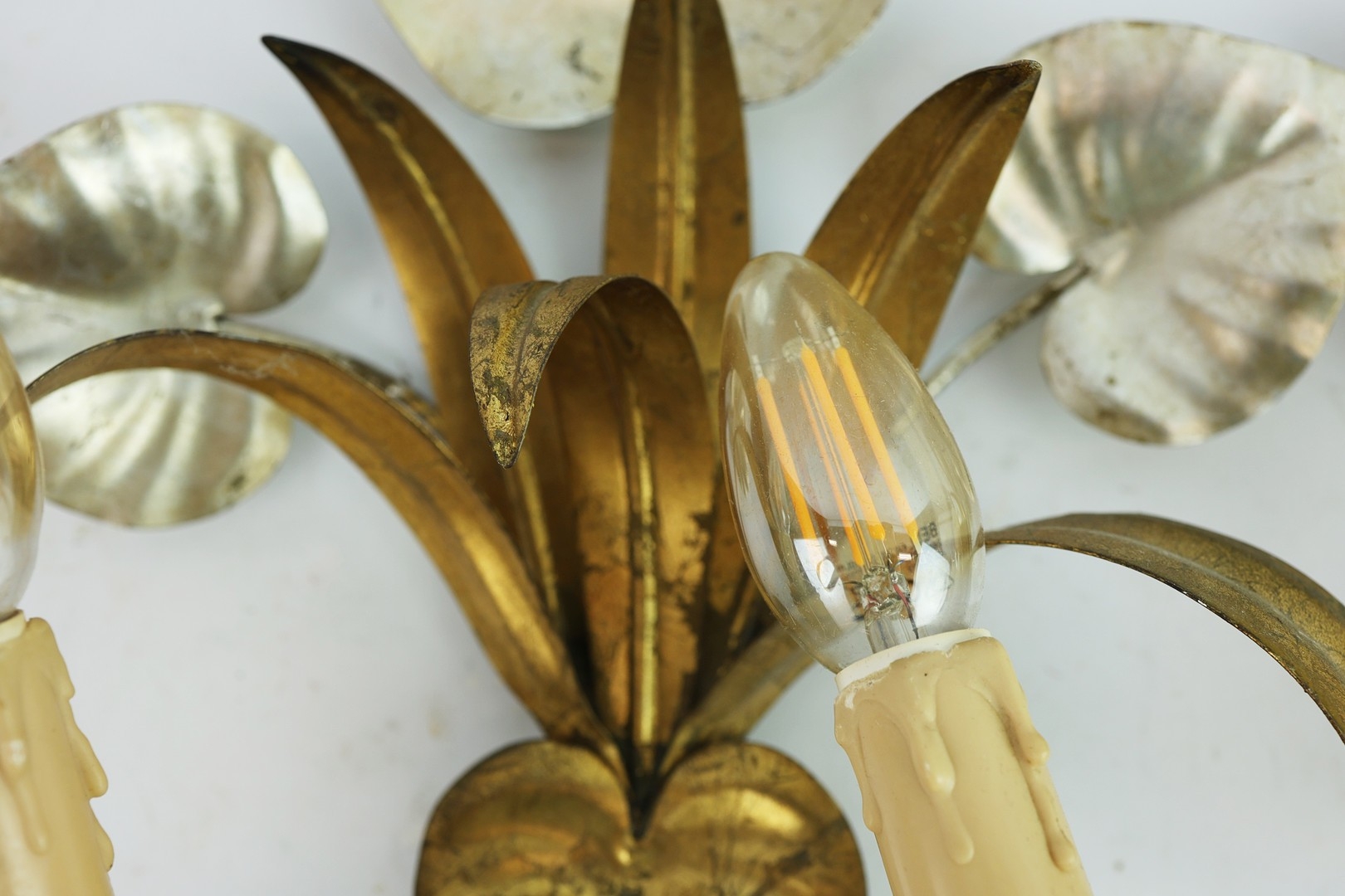 A PAIR OF ITALIAN HOLLYWOOD REGENCY TOLEWARE WALL LIGHTS (2). 37cm H x 29cm.