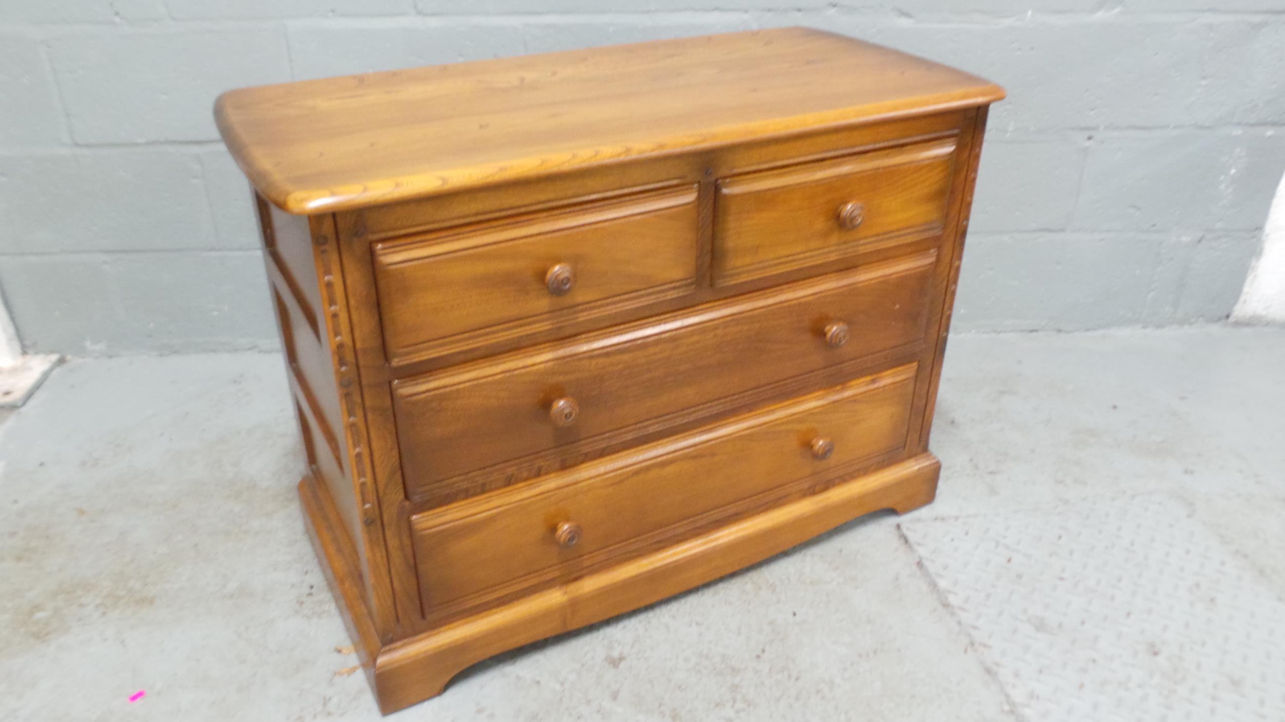 An Ercol Golden Dawn two over two chest of drawers measuring approx' 102W x 49D x 73cmH