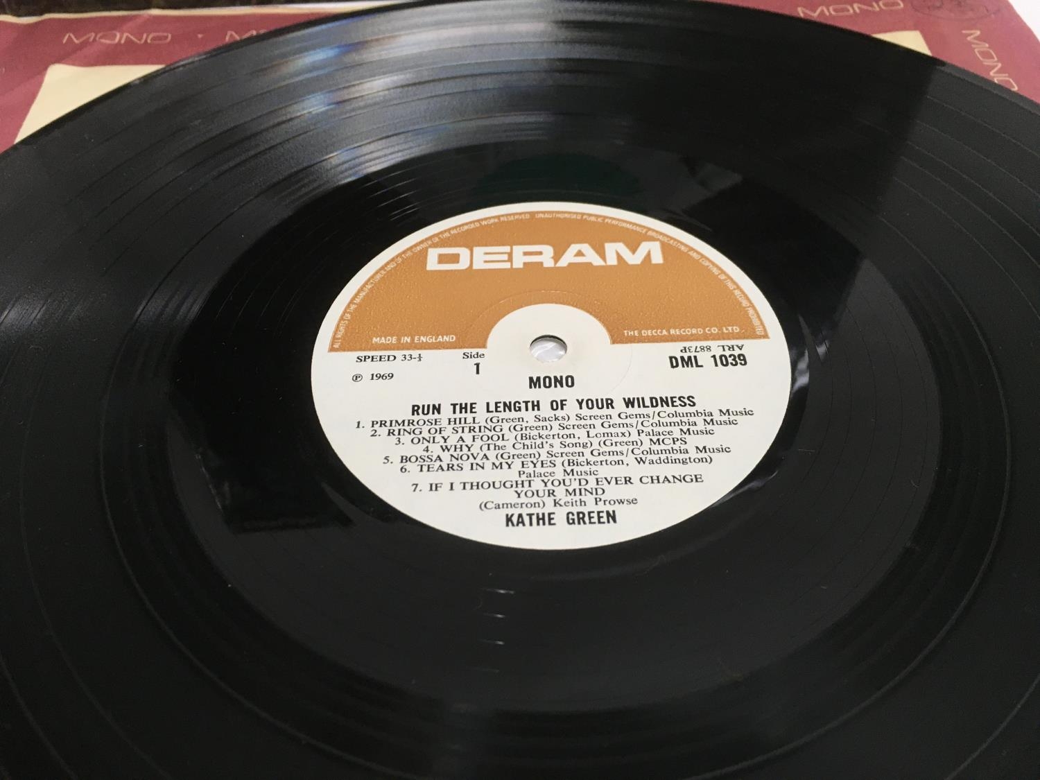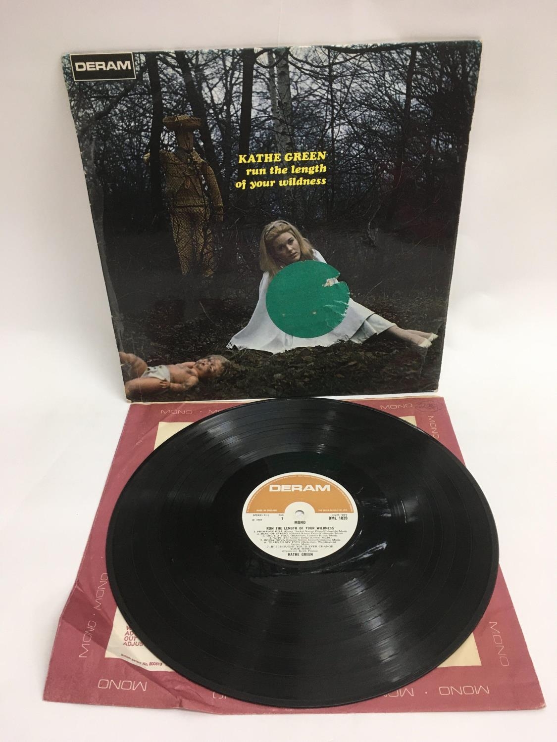 A first UK pressing of 'Run The Length Of Your Wilderness' by Kathe Green, mono DML 1039. Vinyl is NM. Sleeve has a sticker on the front.