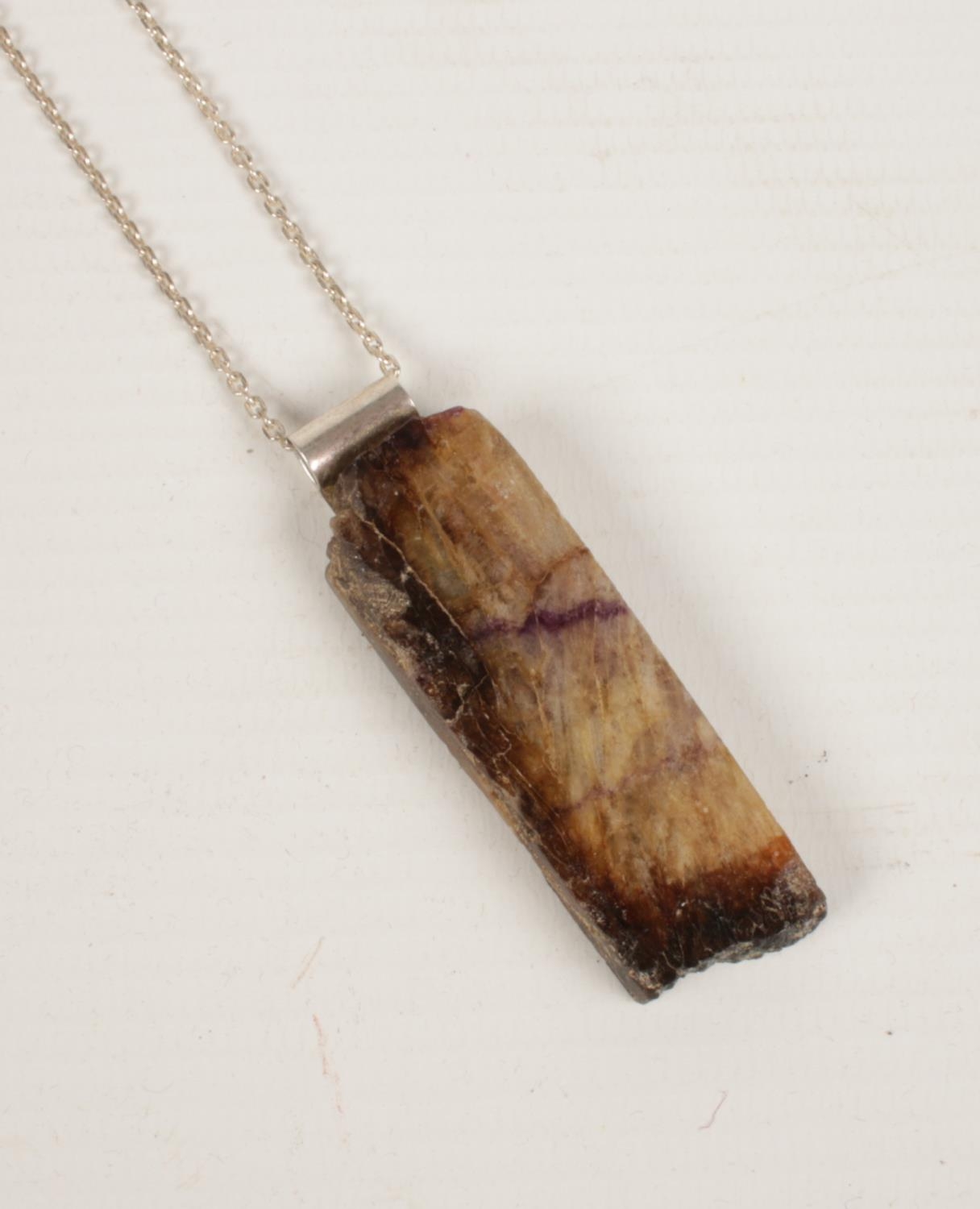 A large modernist blue john silver pendant and chain.