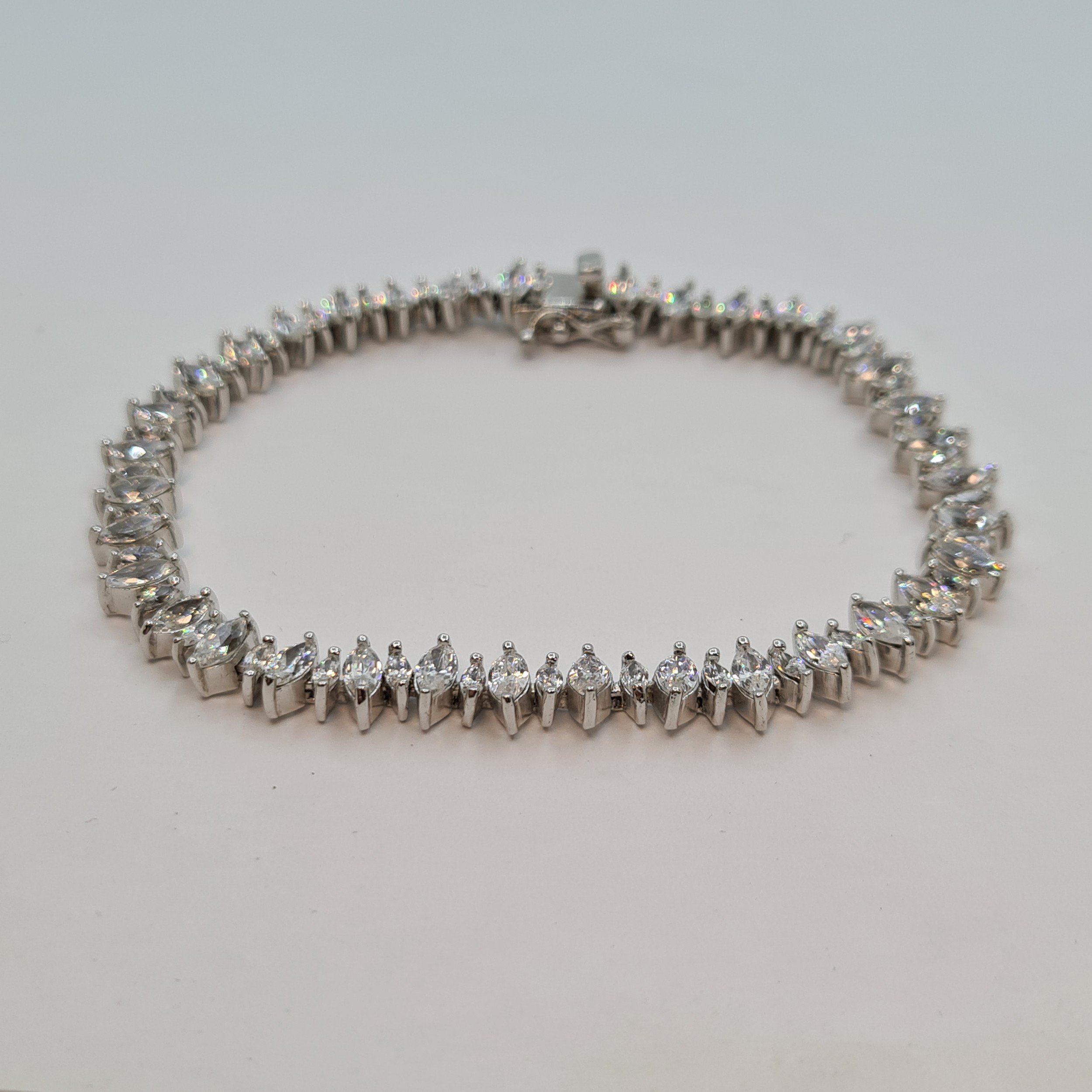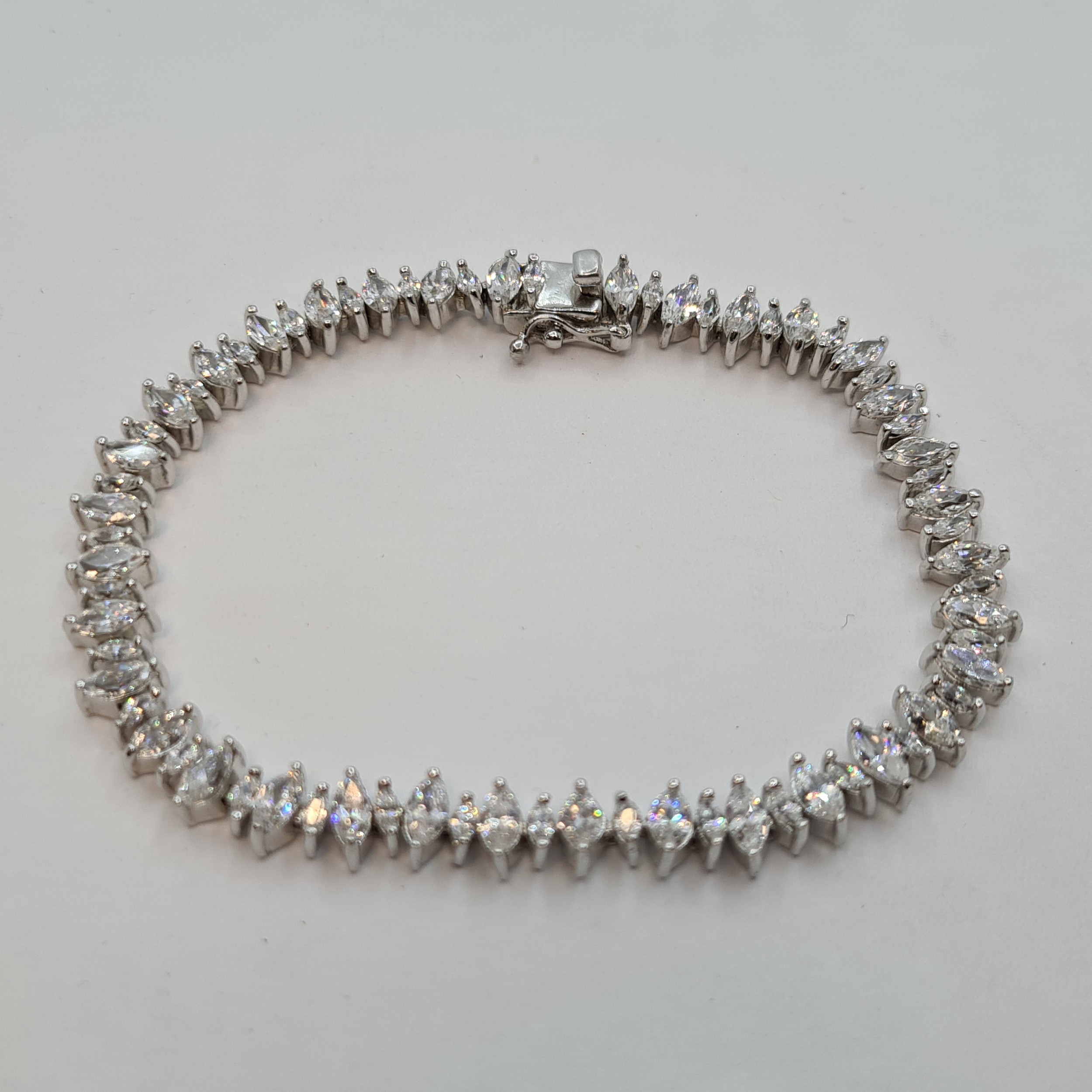 A sterling silver (stamped 925) and cubic zirconia bracelet. Length 20cm. Weight 19.5g. Comes in presentation case.