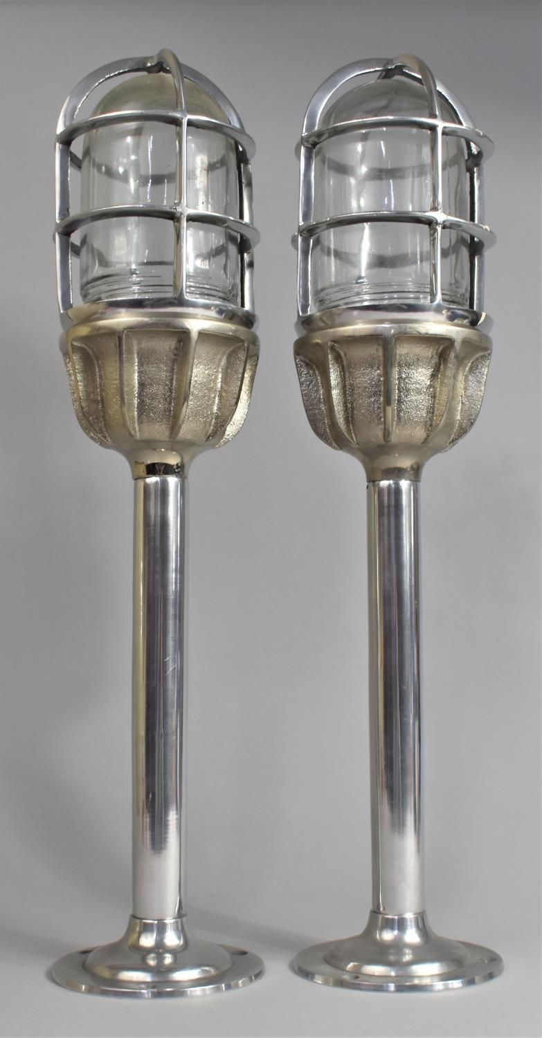 A Pair of Polished Metal Bulkhead Ships/industrial Light Fittings, 50cm high