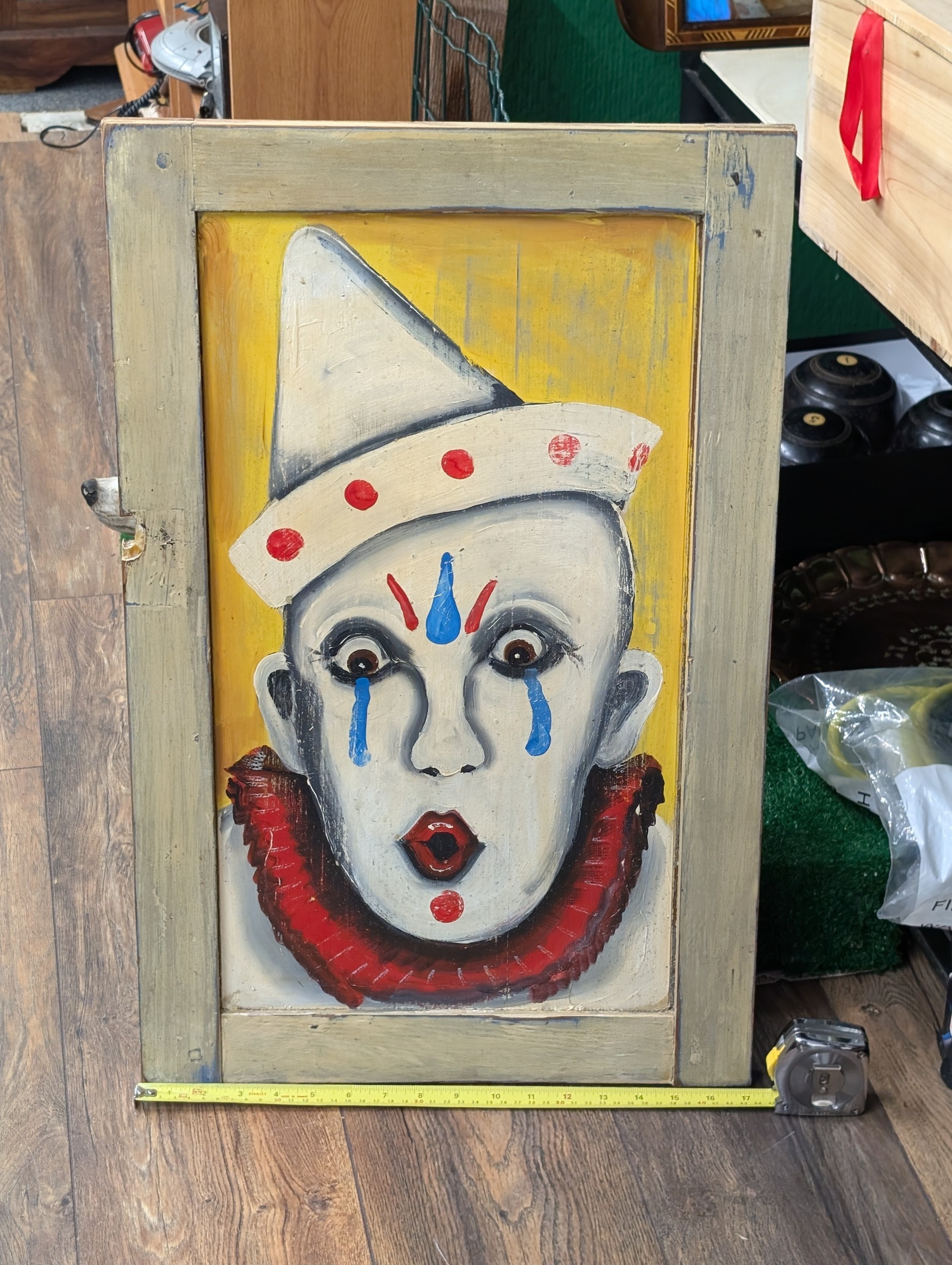 17.25 x 26.75" James Bingham Folk Art Style Rustic Framed Painting of a Clown's Head