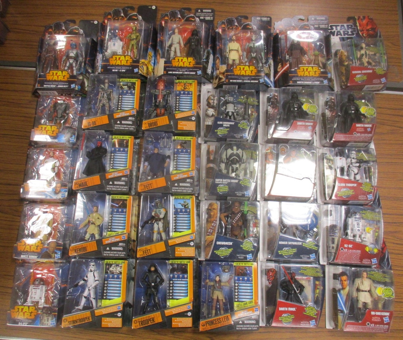 Star Wars. Hasbro. Collection of modern release figures, generally near mint to mint in excellent plus to near mint bubble packs, includes ranges of Mission Series, Movie Heroes, Saga Legends, etc. Qty 30 (B)