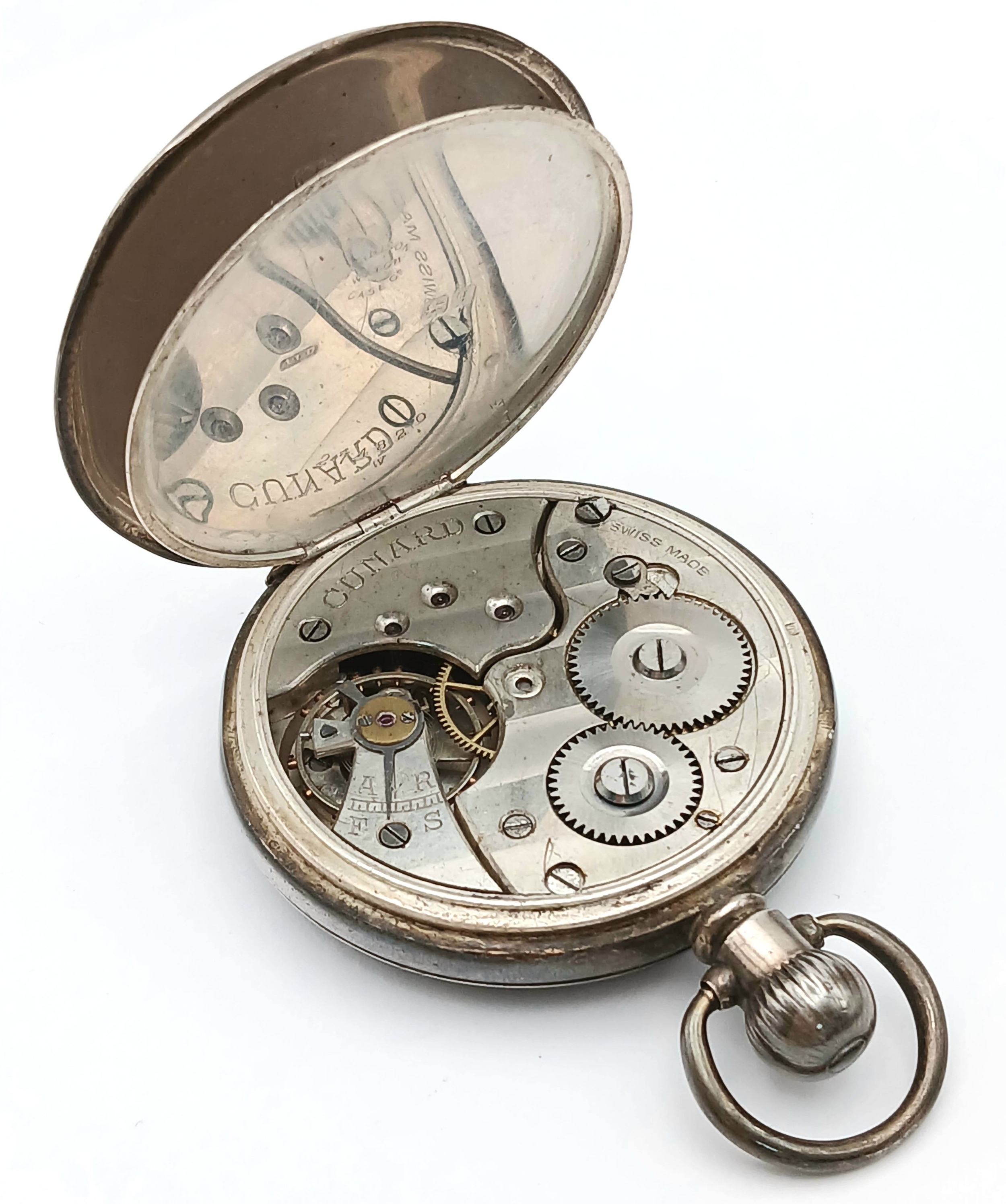 Antique SILVER POCKET WATCH. Clear hallmarks for Aaron Dennison, Birmingham 1915. Mechanism marked for CUNARD. Full working order. Incredible condition, please see pictures.