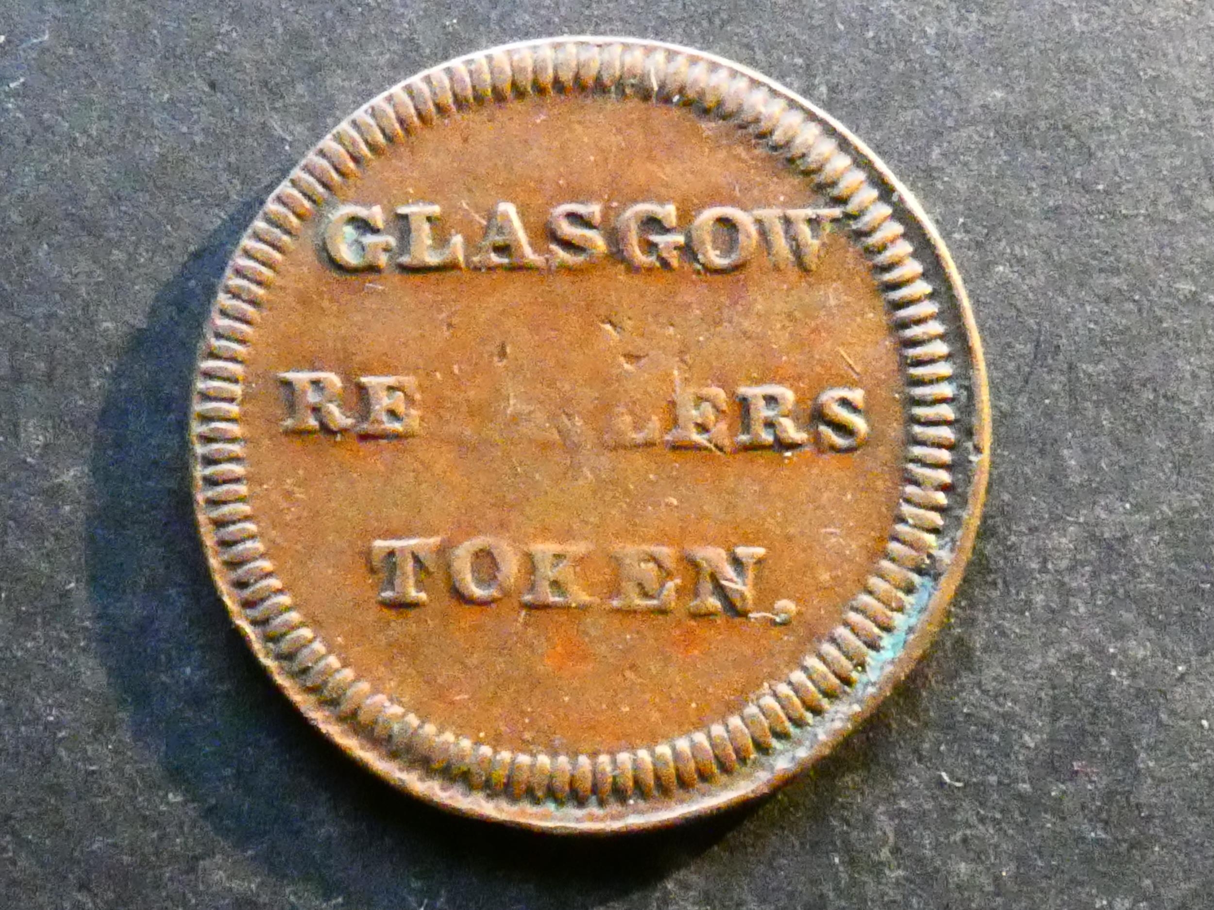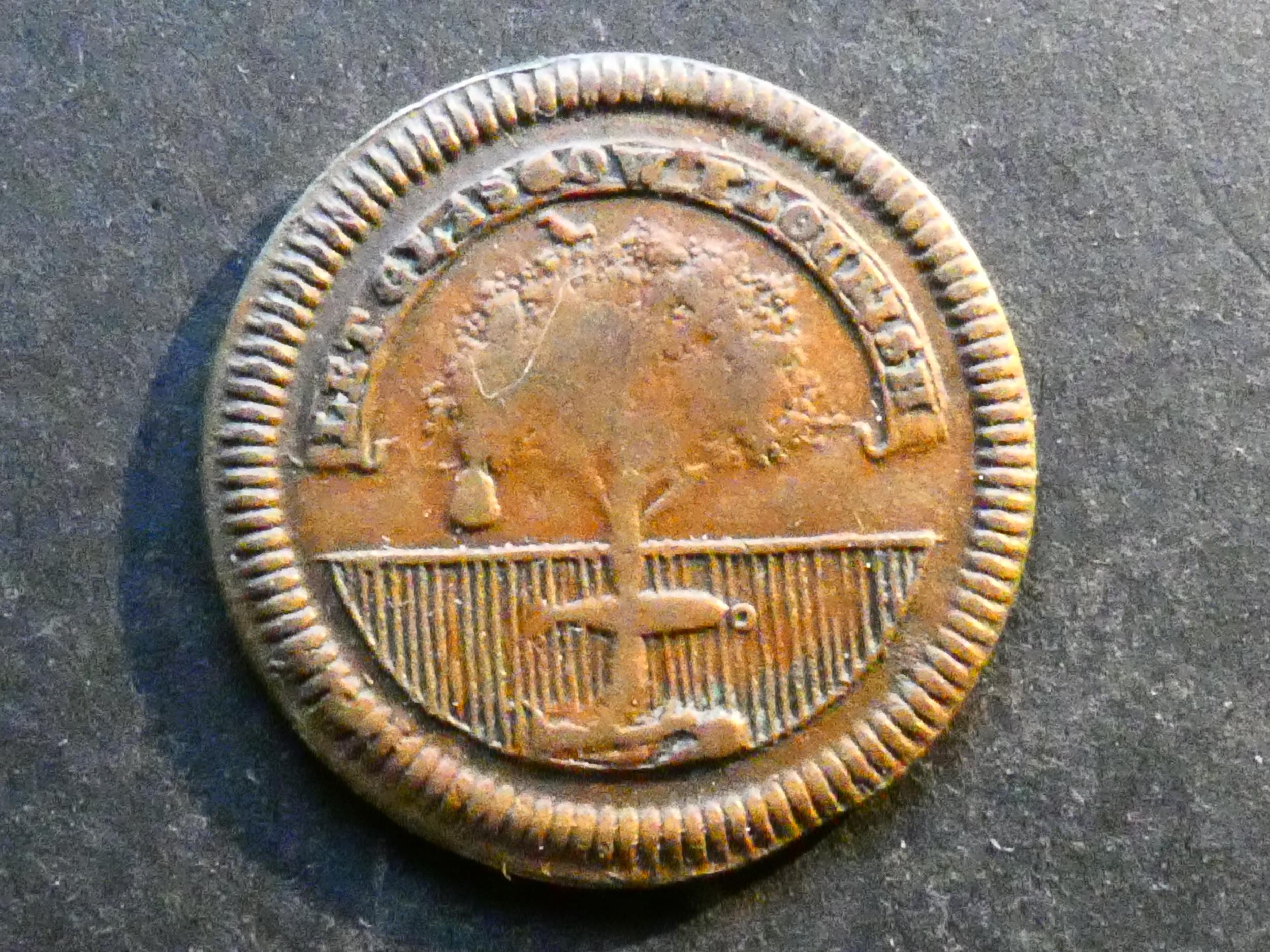 TOKENS - 18th CENTURY. Scotland, Fife, (Farthing), obverse; GLASGOW RETAILER'S TOKEN, reverse; ribbon inscribed LET GLASGOW FLOURISH above a tree, a bird in the tree is below the 2nd G in GLASGOW, D&H-45, F+