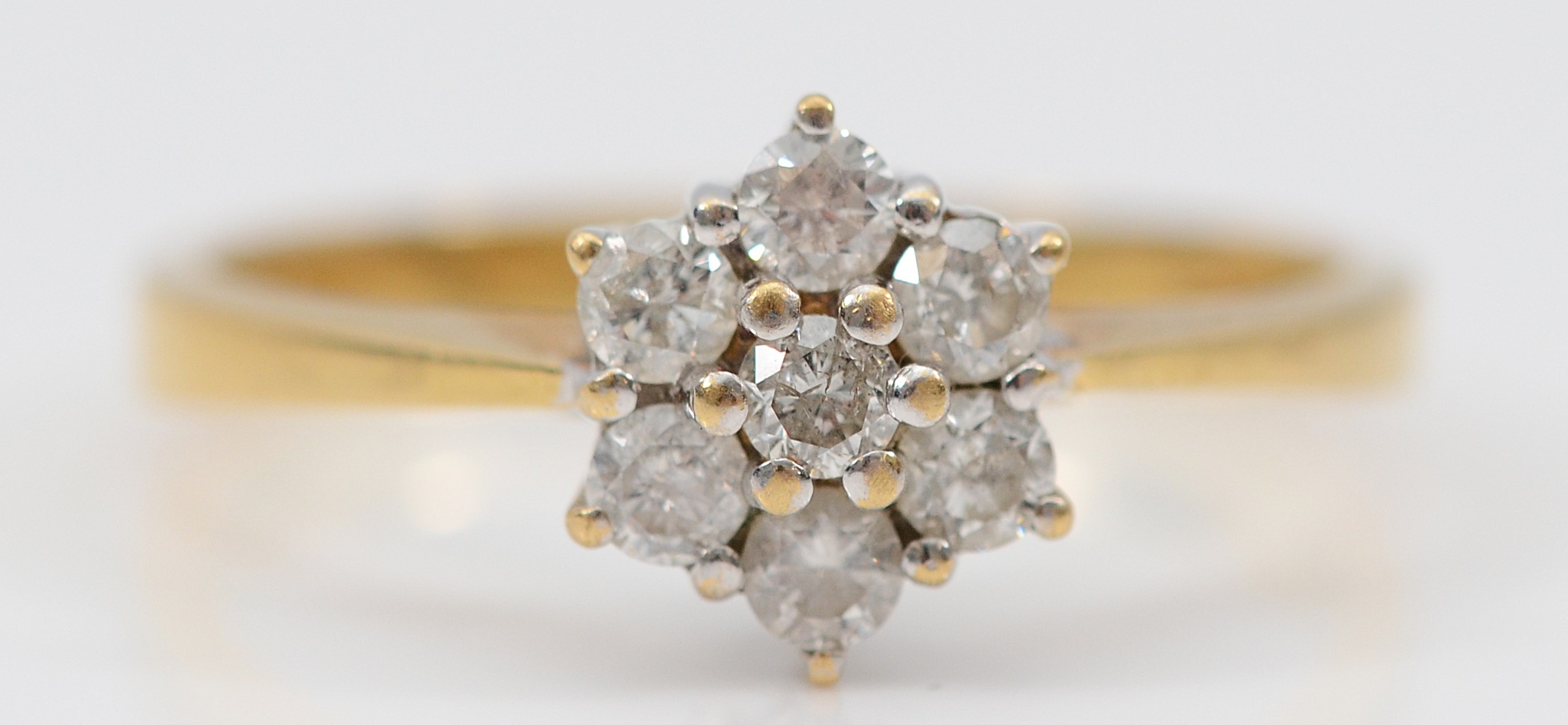 An 18ct gold brilliant cut diamond floral cluster ring, stated 0.50ct, S, 3.8g